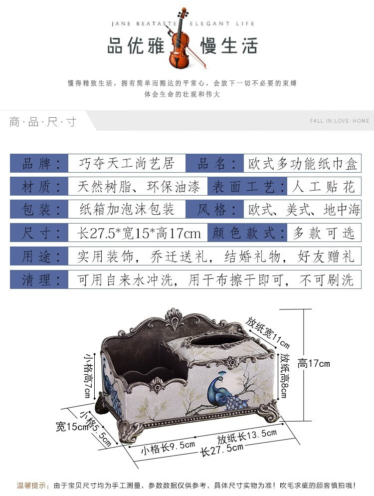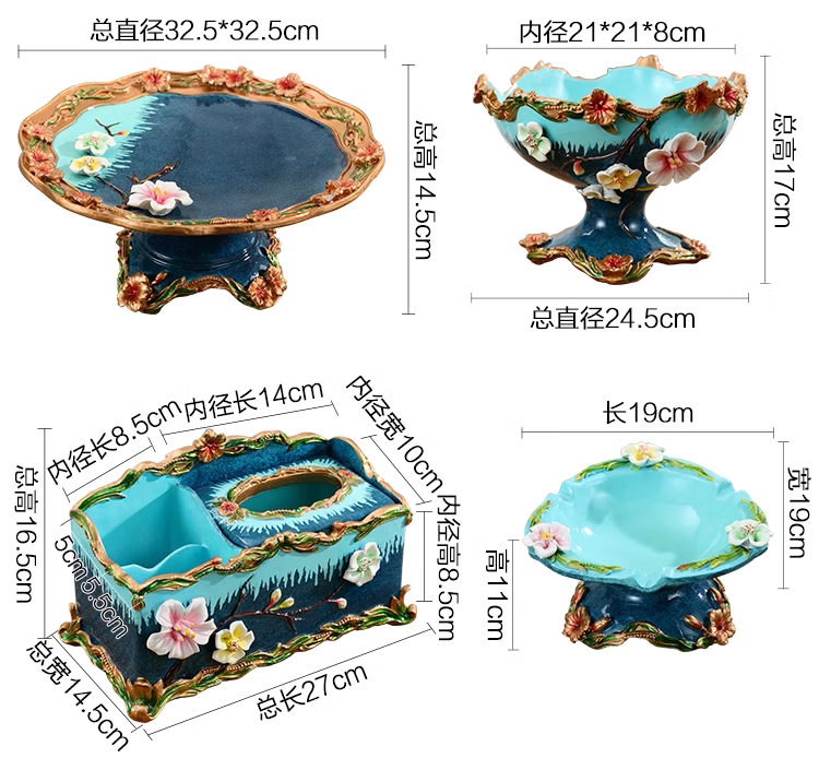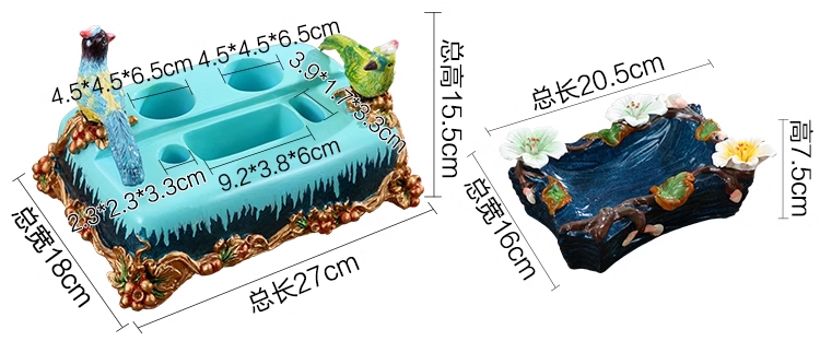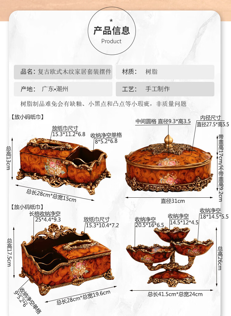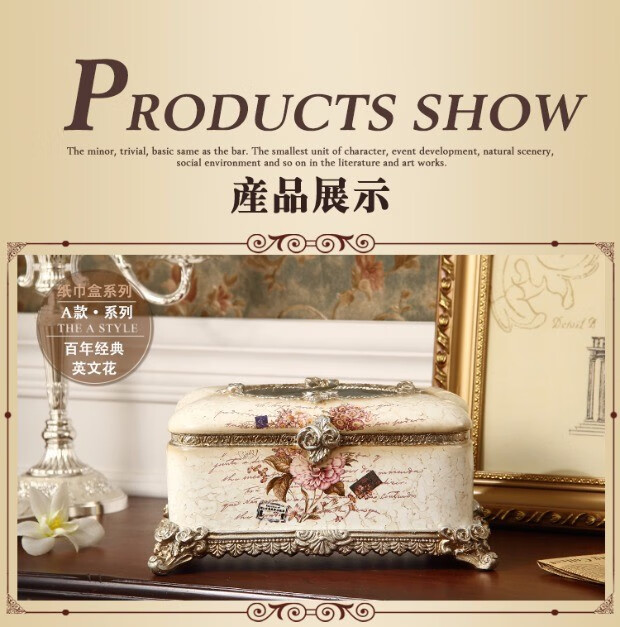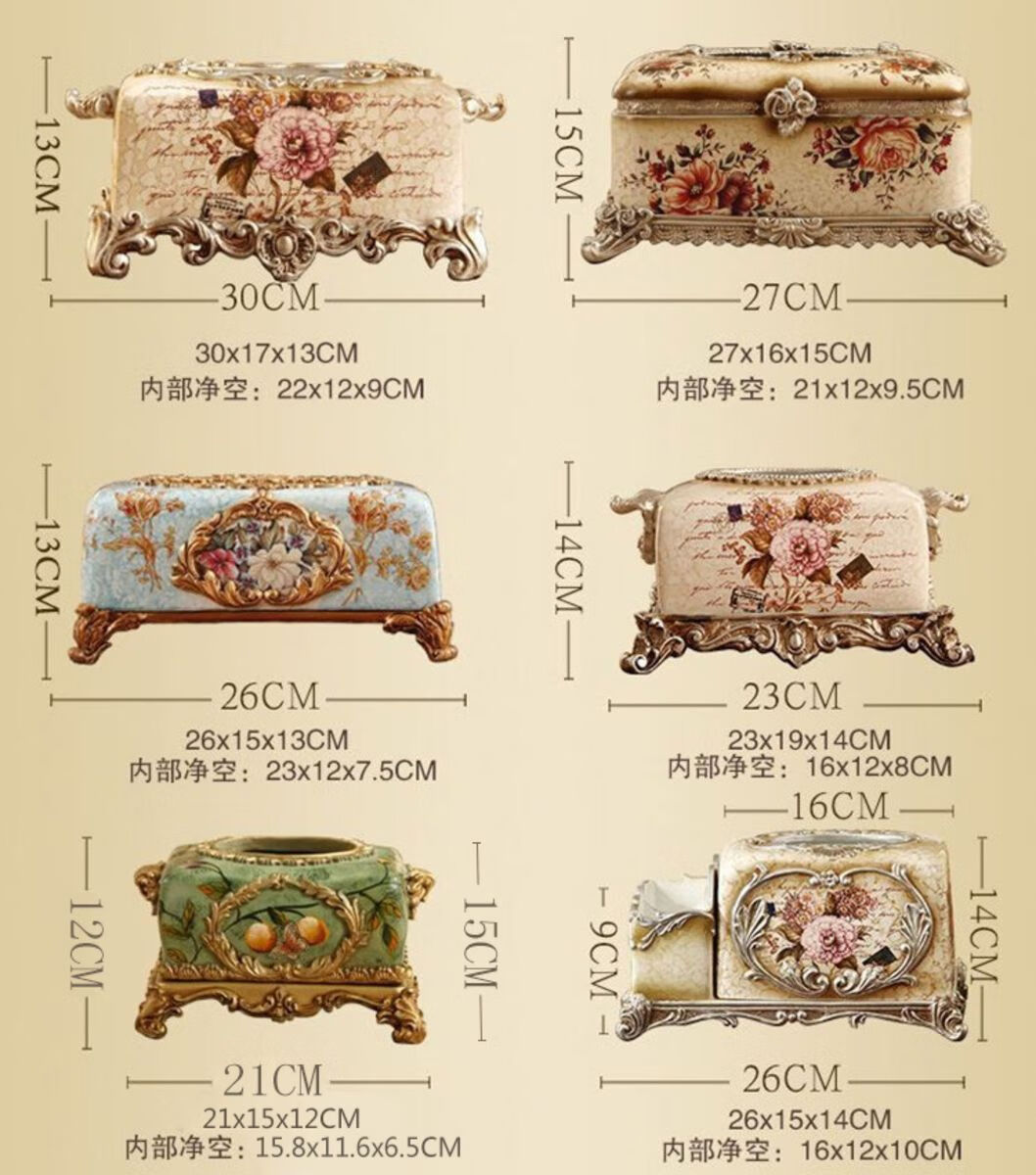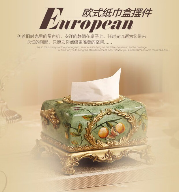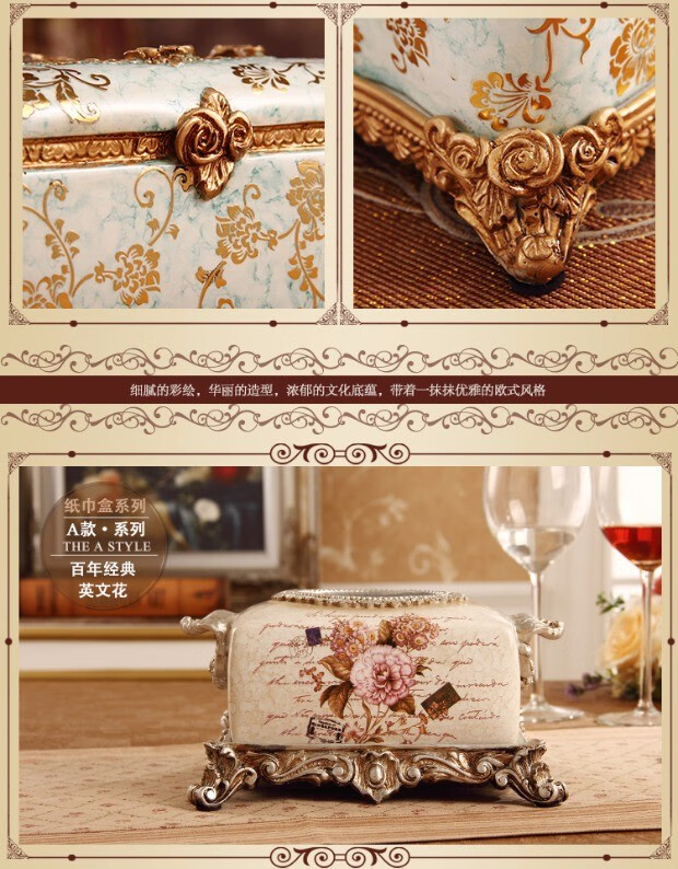 RSRDDY Zhanhong Craft European Retro Resin Tissue Box American Home Desktop Napkin Box Storage Ornament Decoration Blue Wood Grain Tissue Box
