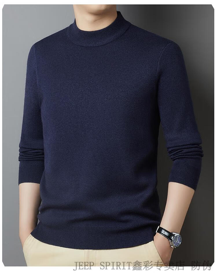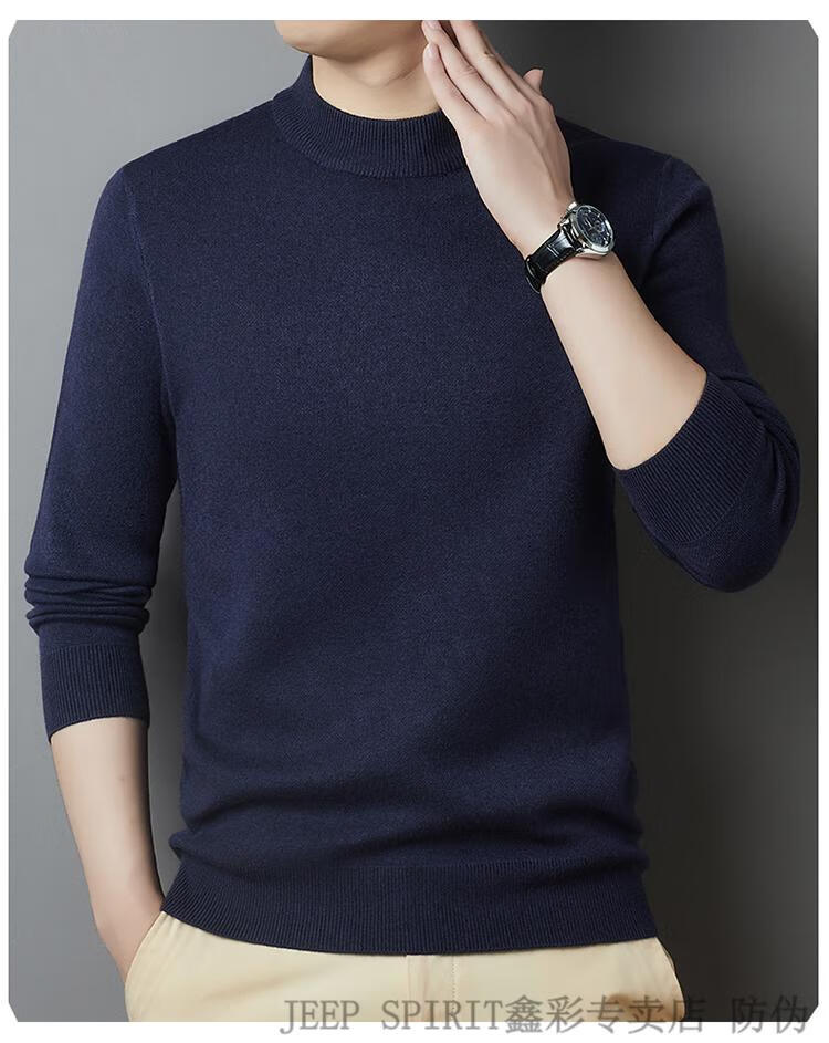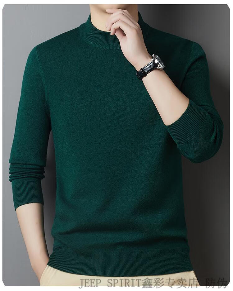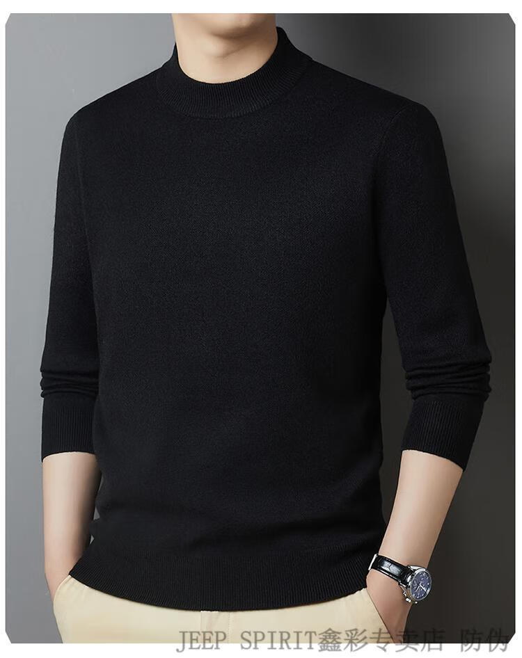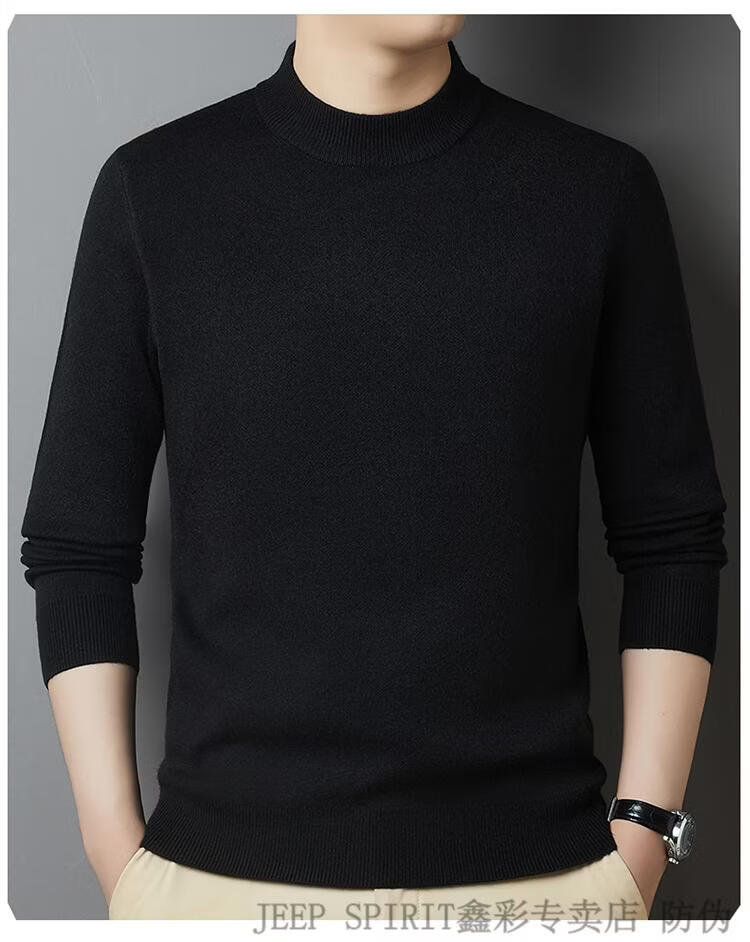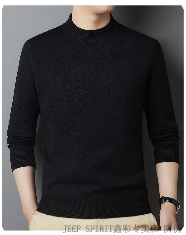 JEEP SPIRIT2025 Новый шерстяной свитер на осень и зиму, мужской получерепаховый воротник, утепленный теплый свитер среднего возраста, шерстяной нижний свитер для мужчин, черный получерепаховый воротник, 2XL 180 Подходит для роста 160-180 Джин Джин равен 0,5 кг