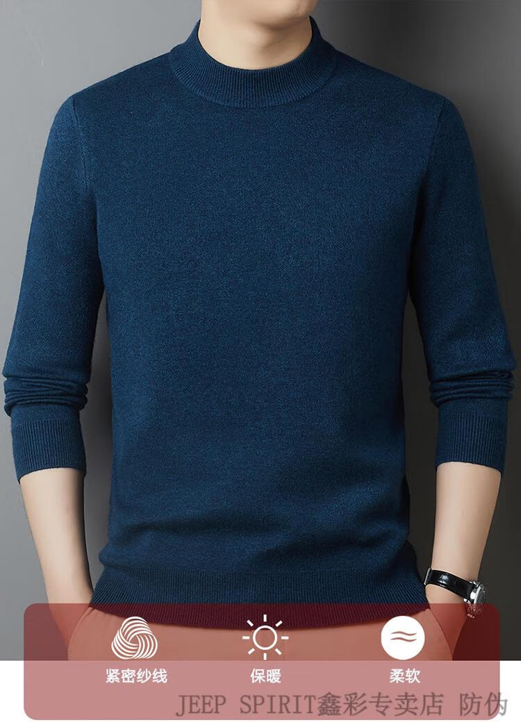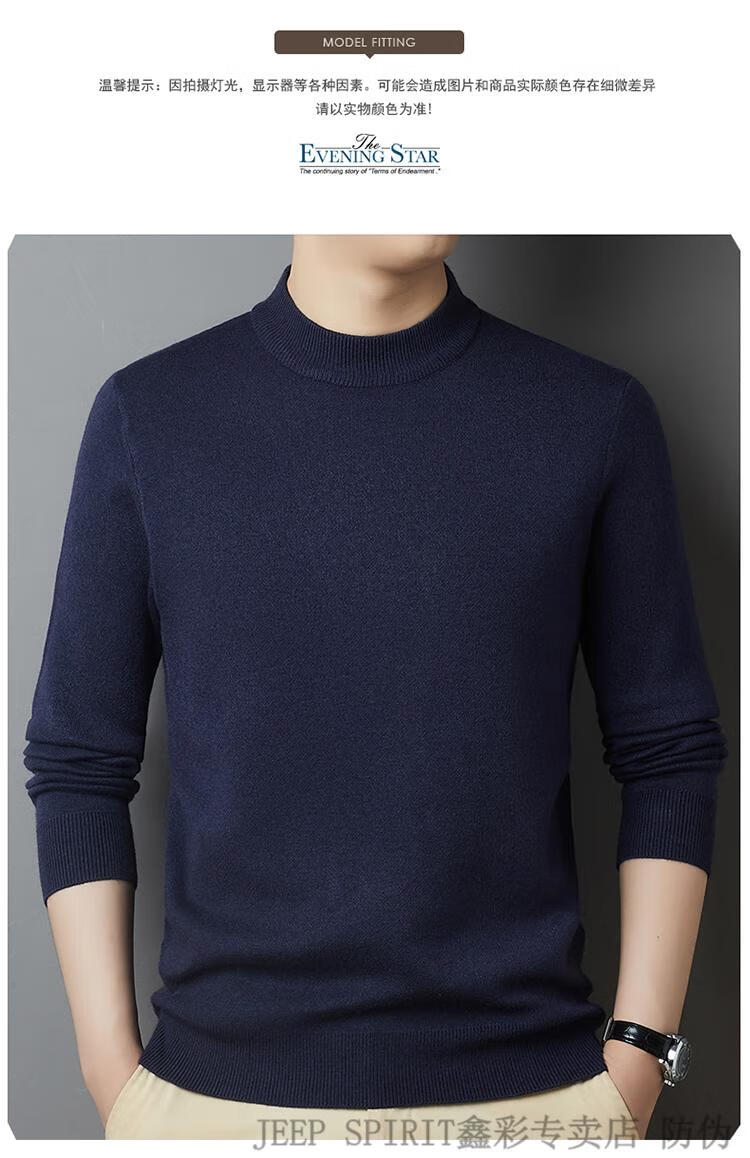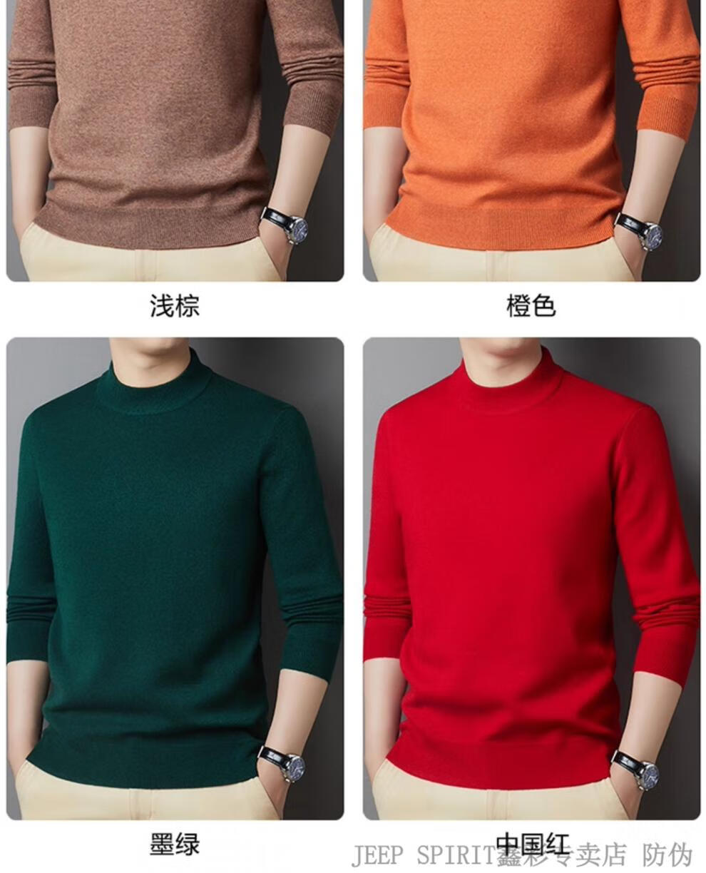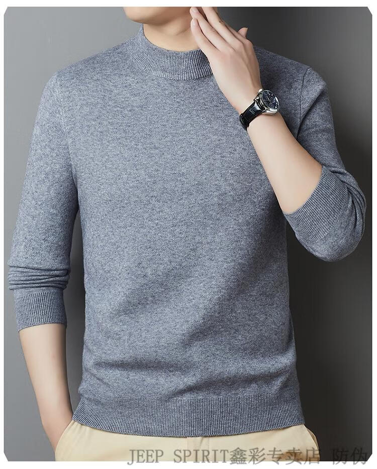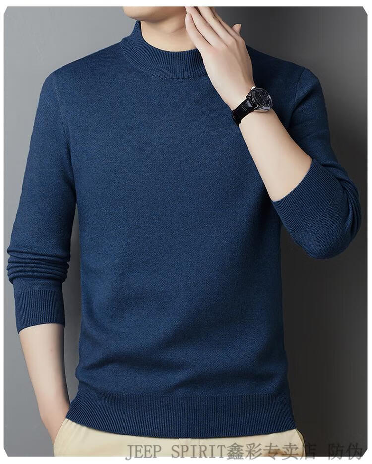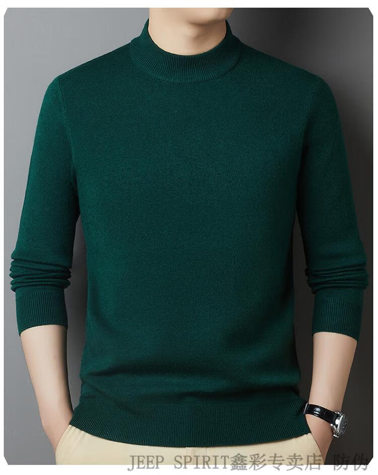 JEEP SPIRIT2025 Новый шерстяной свитер на осень и зиму, мужской получерепаховый воротник, утепленный теплый свитер среднего возраста, шерстяной нижний свитер для мужчин, черный получерепаховый воротник, 2XL 180 Подходит для роста 160-180 Джин Джин равен 0,5 кг