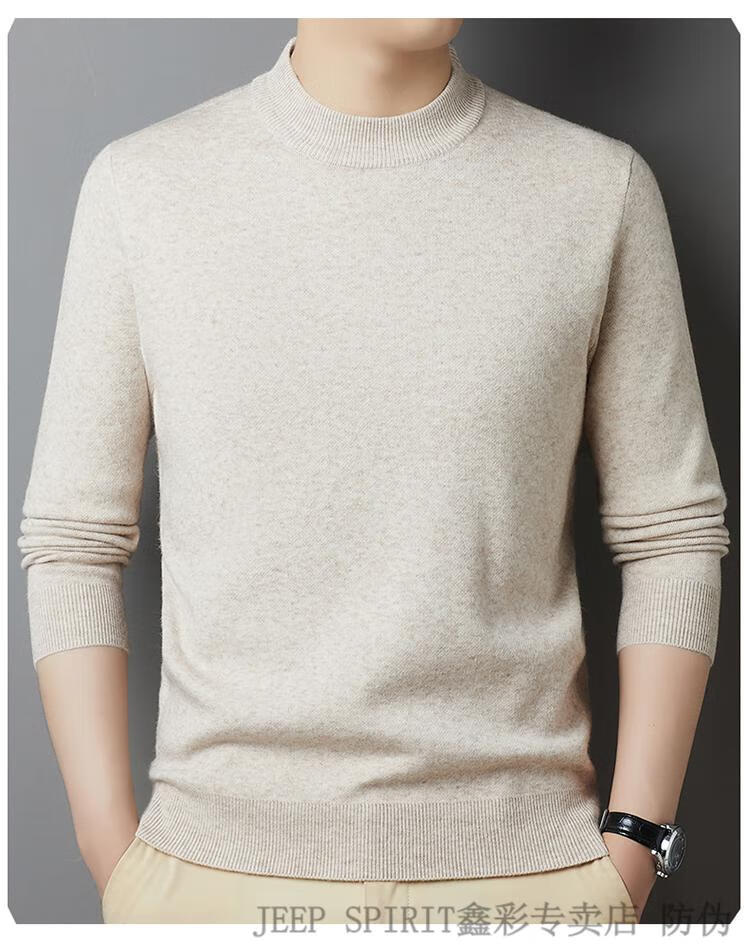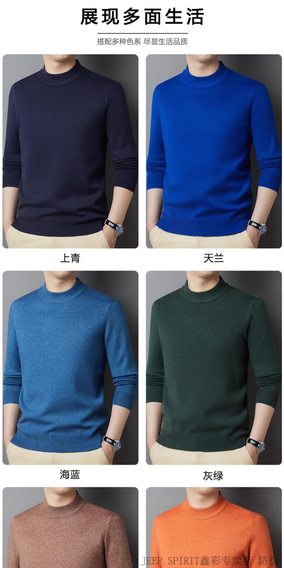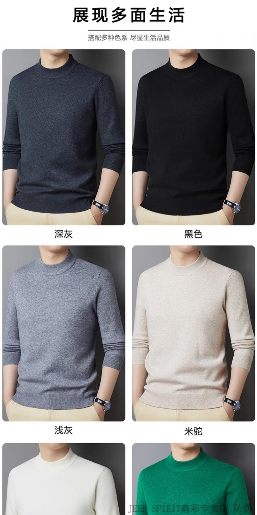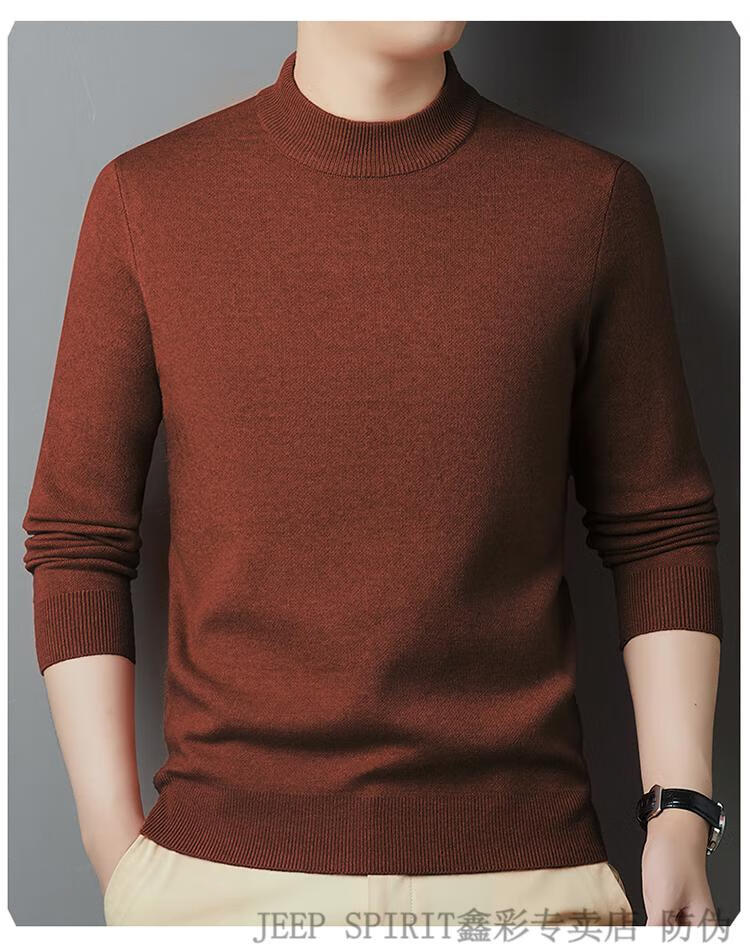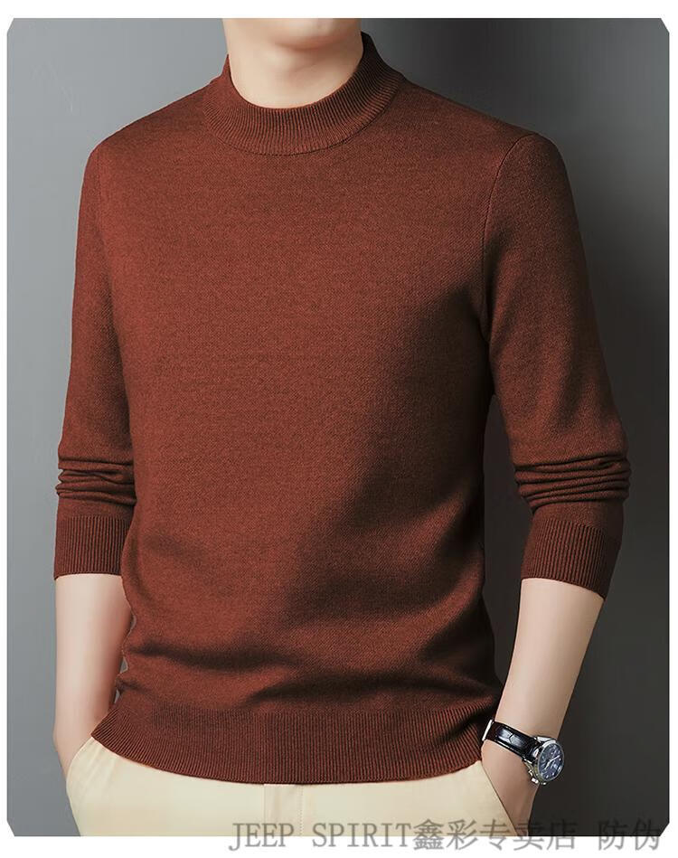 JEEP SPIRIT2025 Новый шерстяной свитер на осень и зиму, мужской получерепаховый воротник, утепленный теплый свитер среднего возраста, шерстяной нижний свитер для мужчин, черный получерепаховый воротник, 2XL 180 Подходит для роста 160-180 Джин Джин равен 0,5 кг