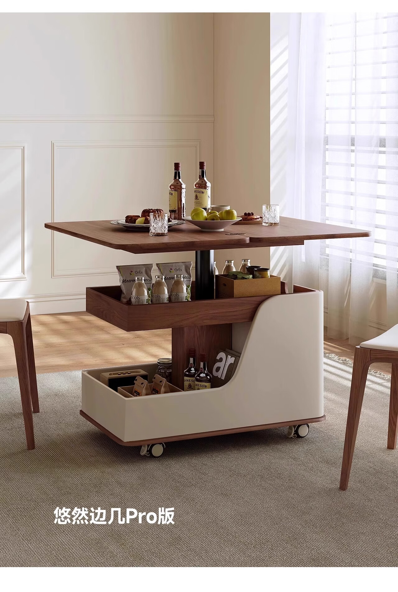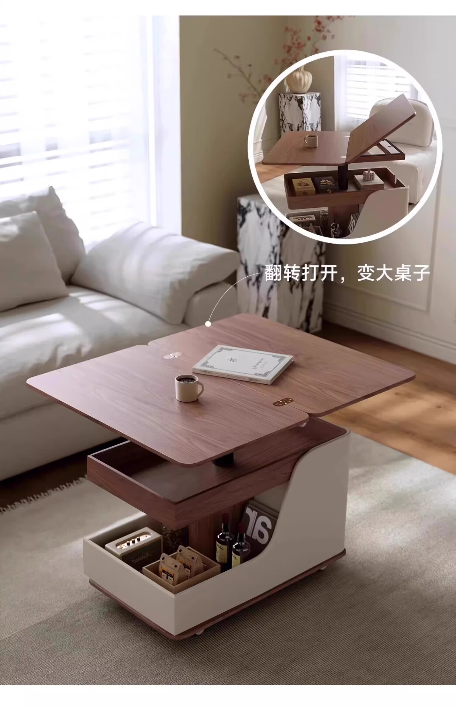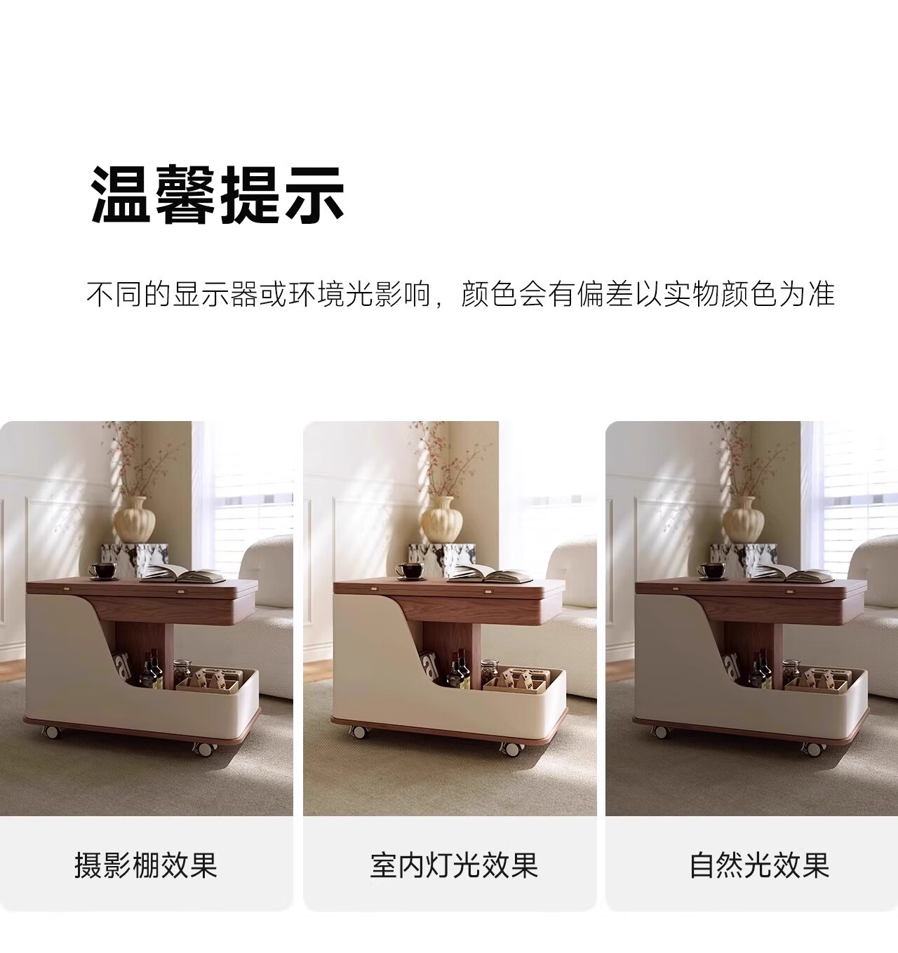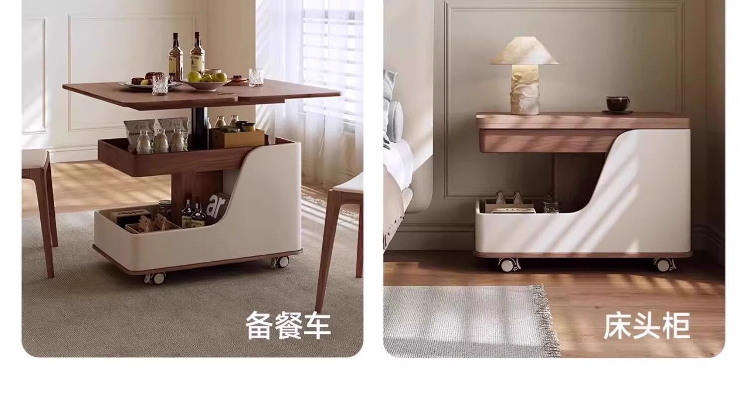 Movable side table, removable folding coffee table, small apartment, small trolley, solid wood, multifunctional, Jingdong express is fast and good, walnut color + white, can be raised and lowered at two heights