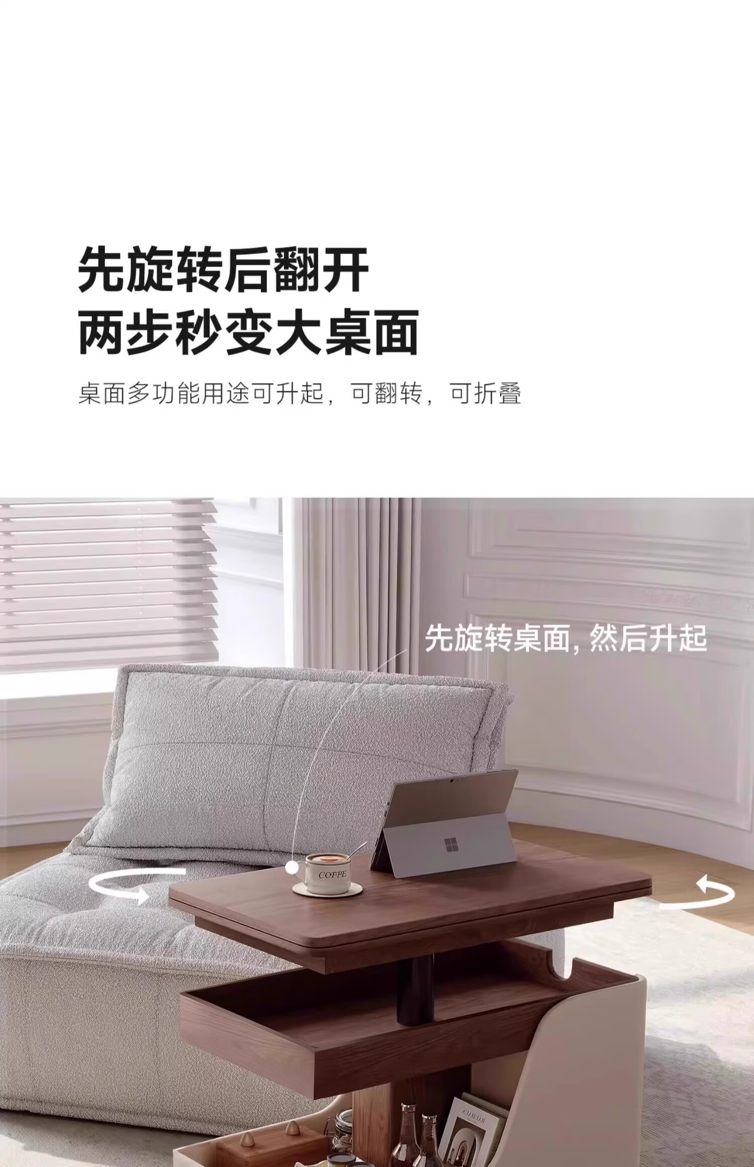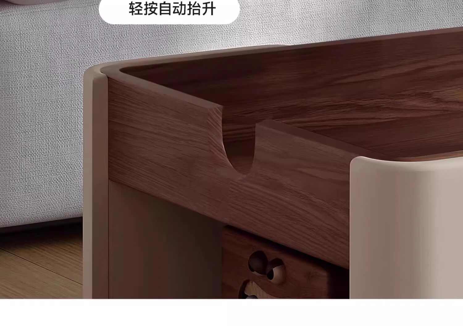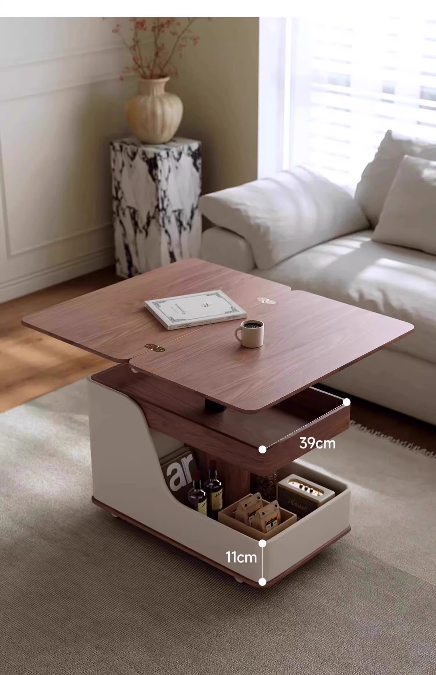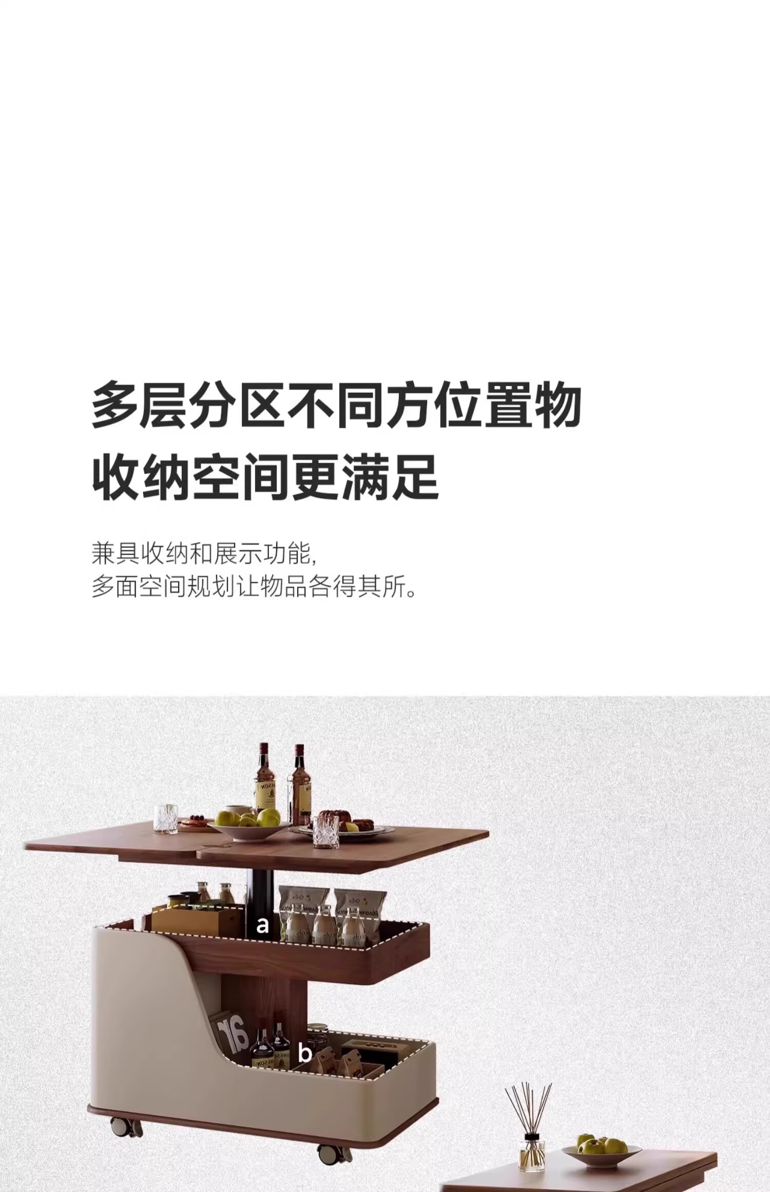 Movable side table, removable folding coffee table, small apartment, small trolley, solid wood, multifunctional, Jingdong express is fast and good, walnut color + white, can be raised and lowered at two heights
