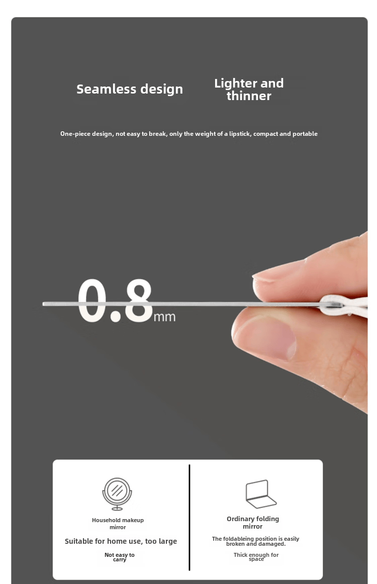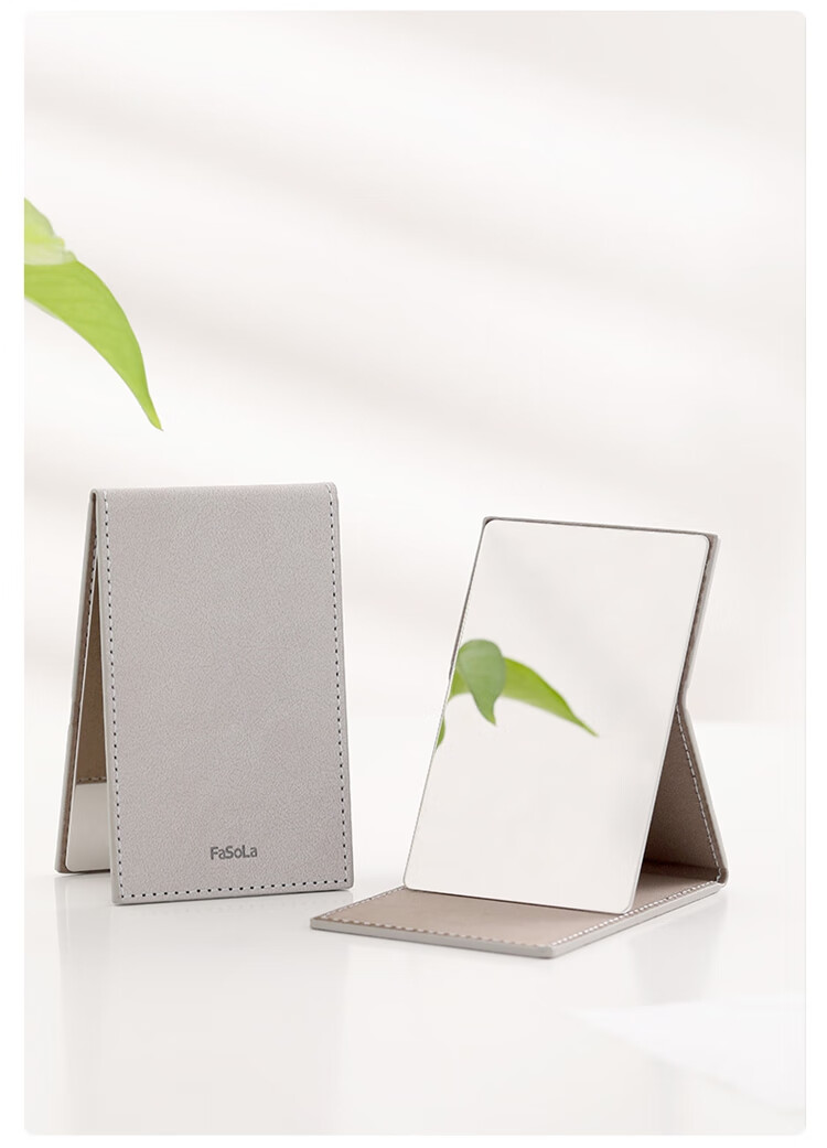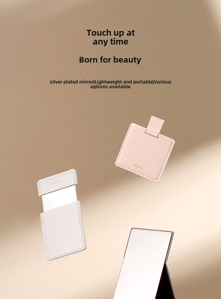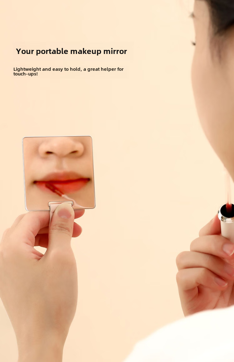 Fat Donglai's same style portable makeup mirror, mini portable stainless steel makeup mirror, women's simple carry-on bag, mini small mirror, handheld makeup mirror, card mirror, rectangular model, pink + square model, pink, 1 each
