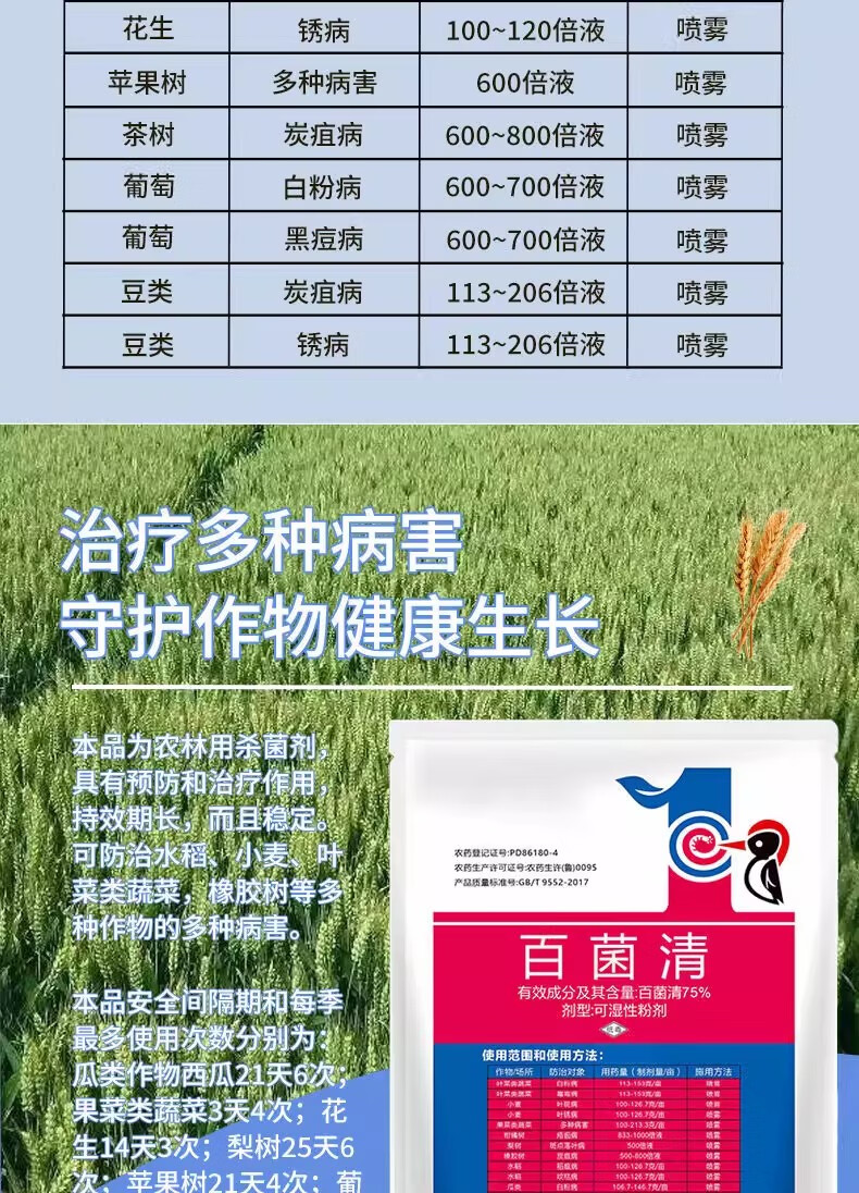 75% chlorothalonil general fungicide pesticide genuine fruit tree vegetable rice blast rust powdery mildew special pesticide 1000g/1 pack