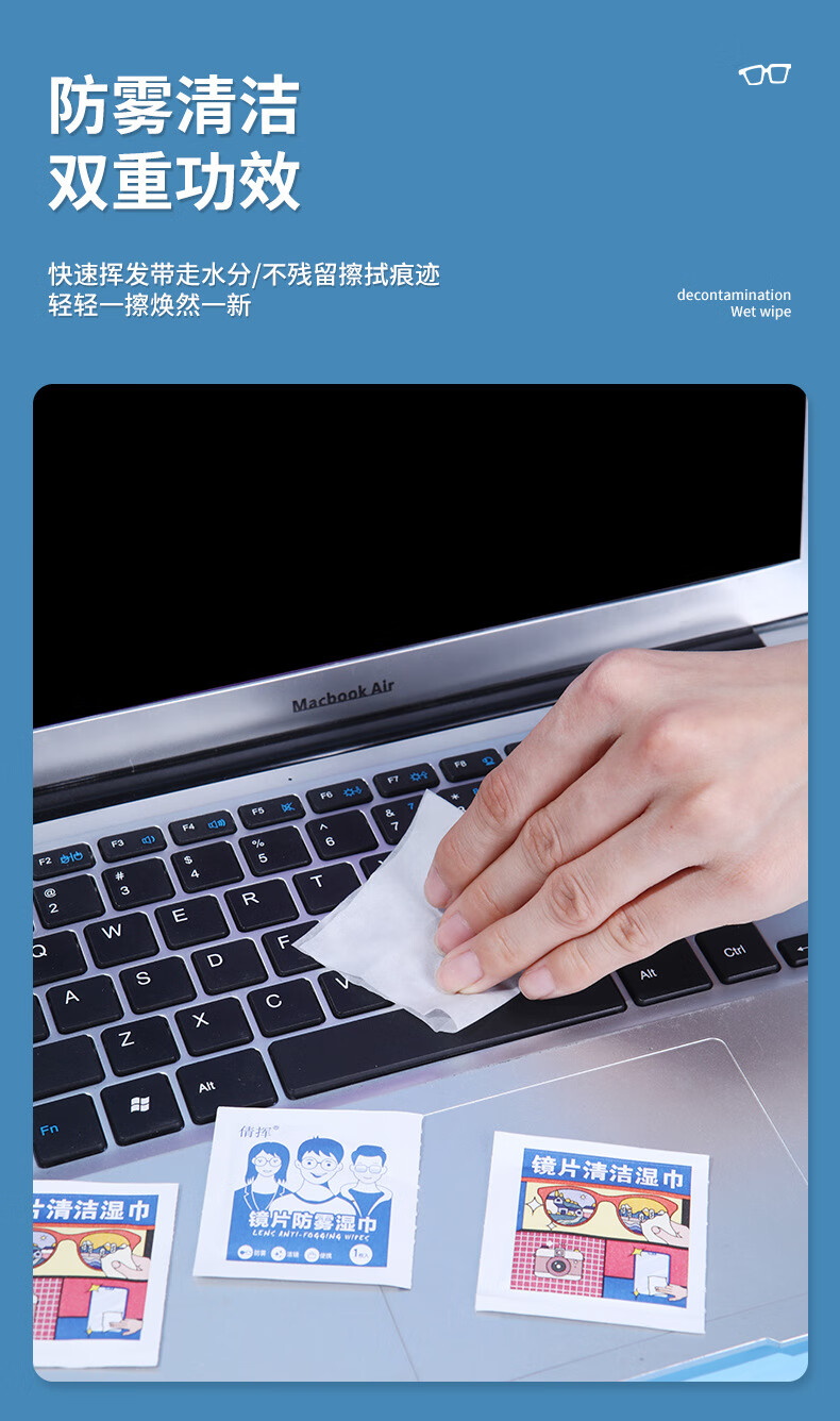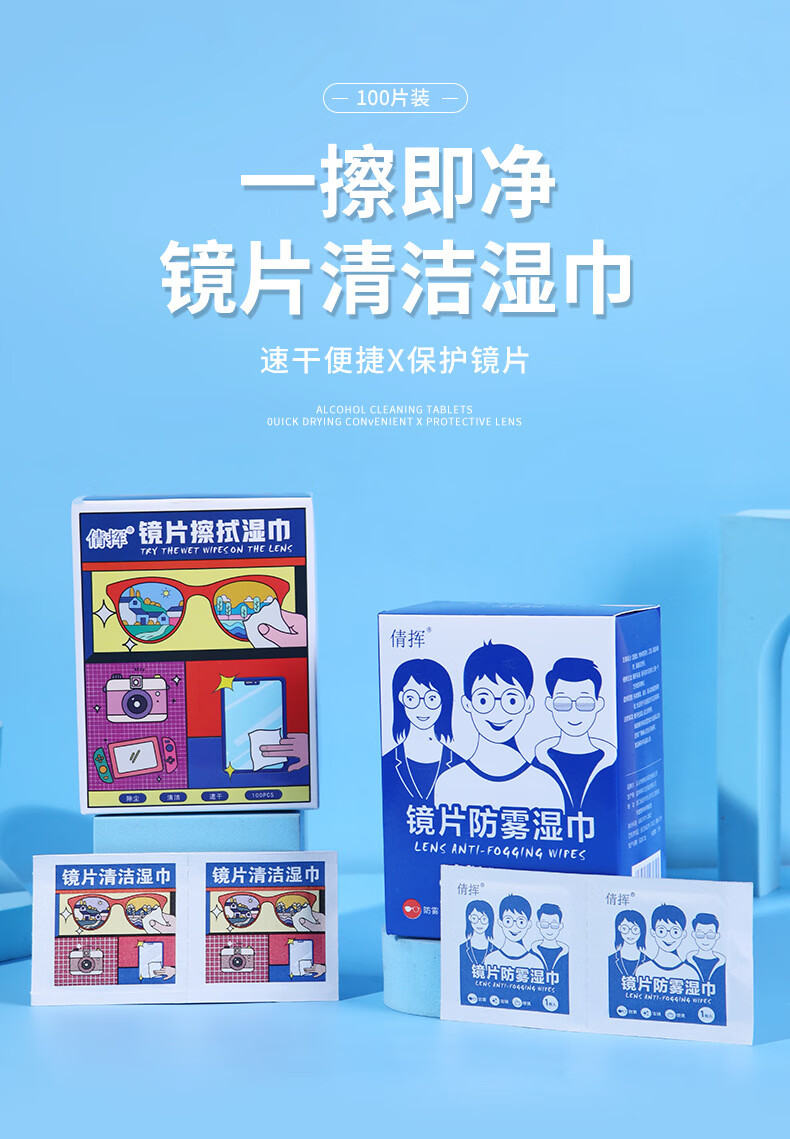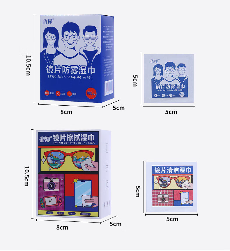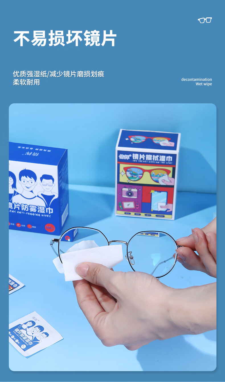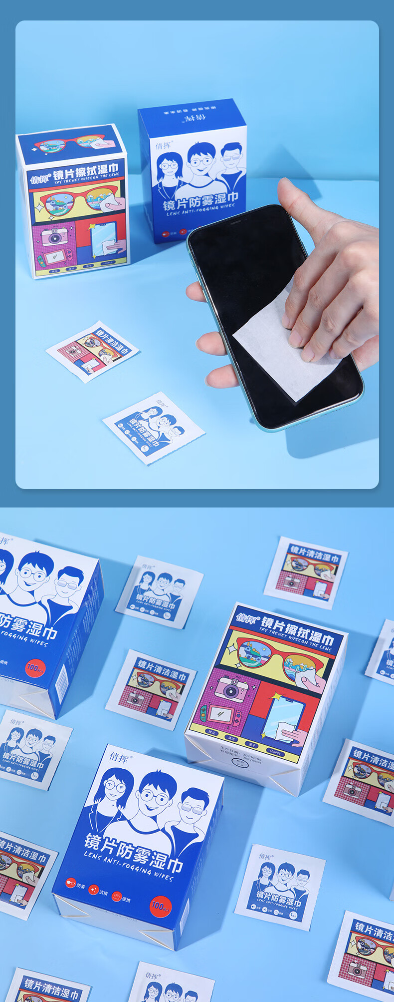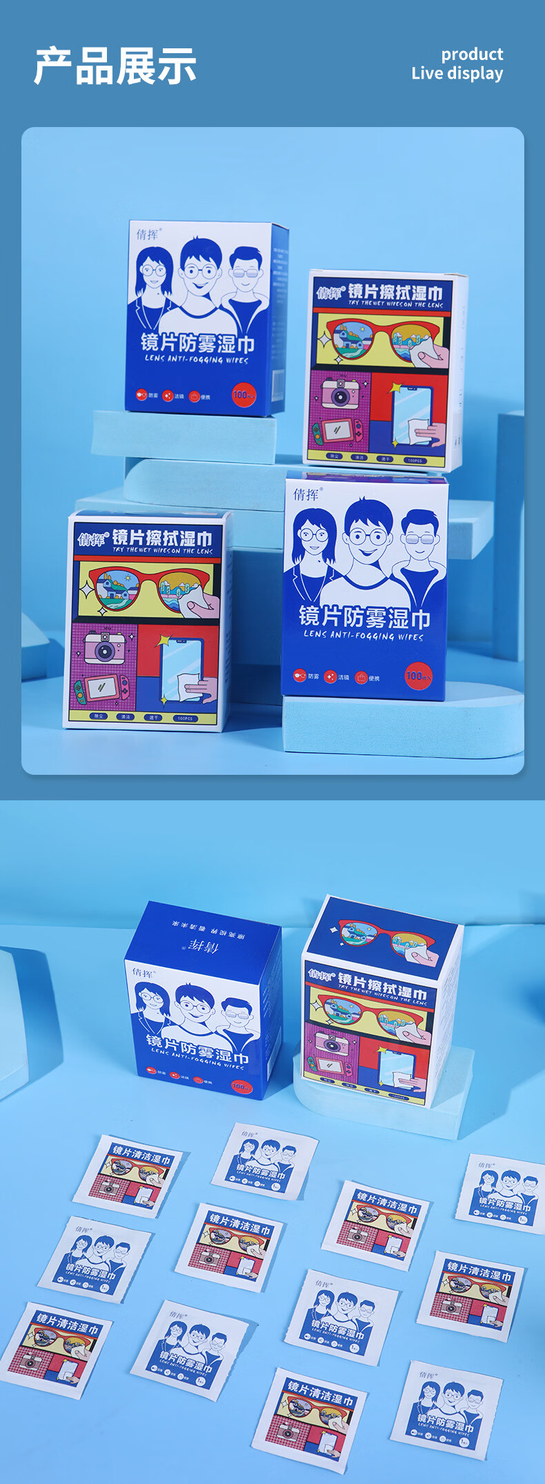 Lens anti-fog wipes, glasses anti-fog wipes, myopia glasses, anti-fog cleaning lens, anti-fog wipes, lens anti-fog wipes, 100 pieces in a box