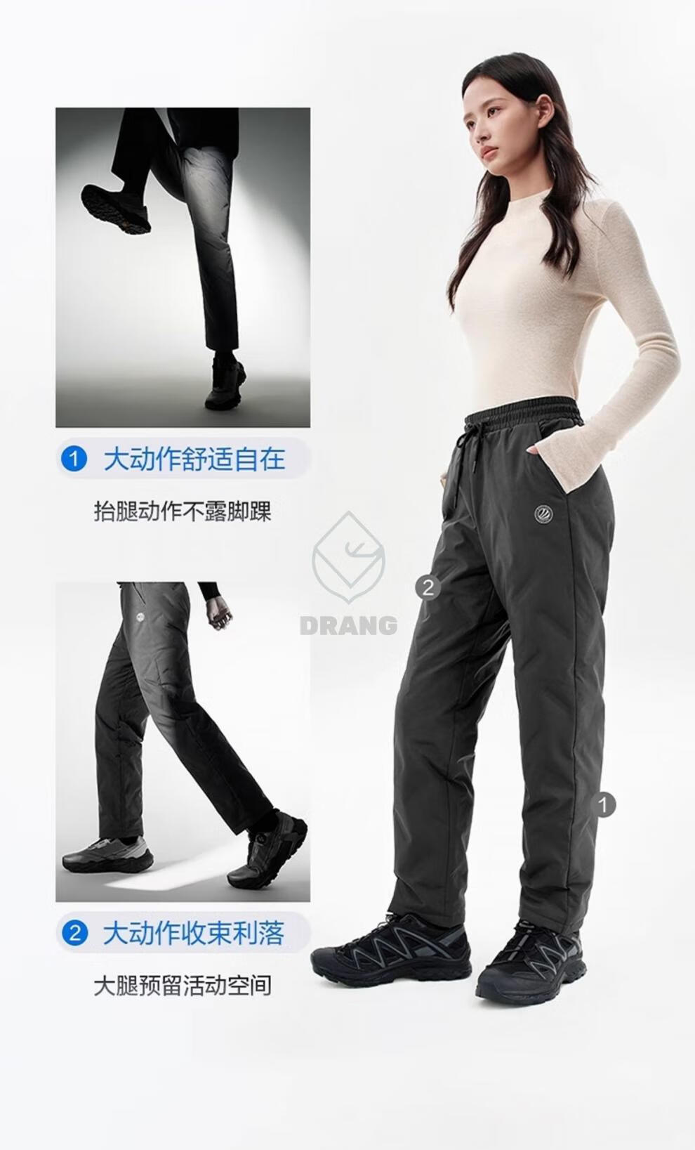 BOSIDENG Down Pants Women's Winter Outerwear Black Fashion Workwear Versatile Slim Women's Pants Black 8056-New Elastic Waist S 160