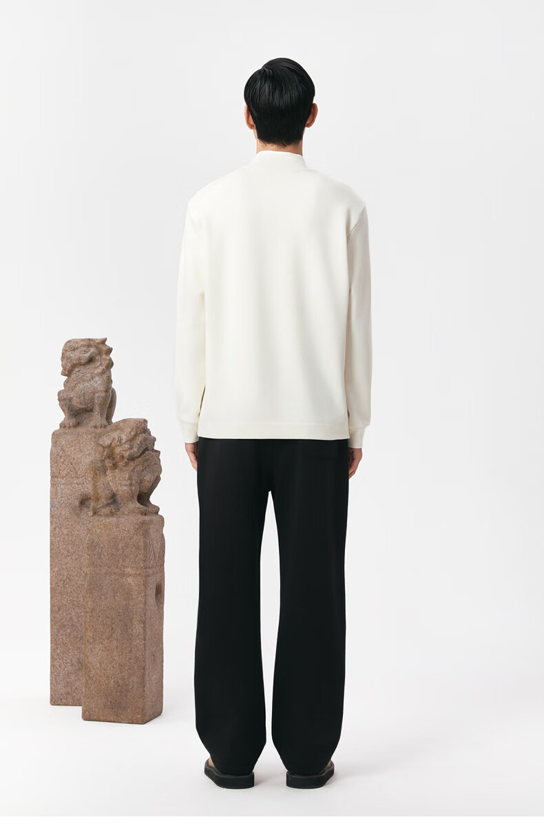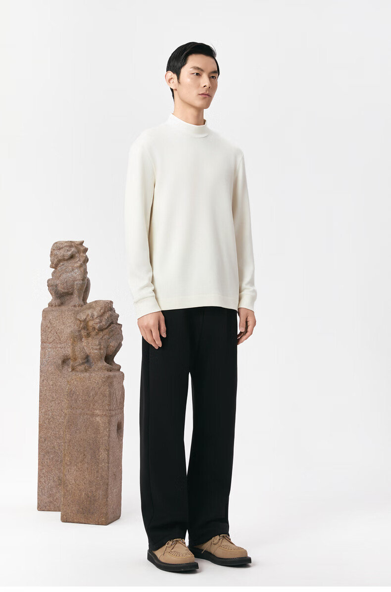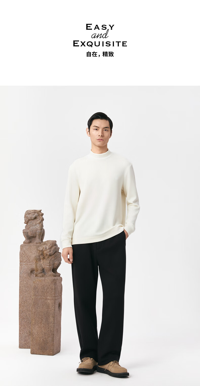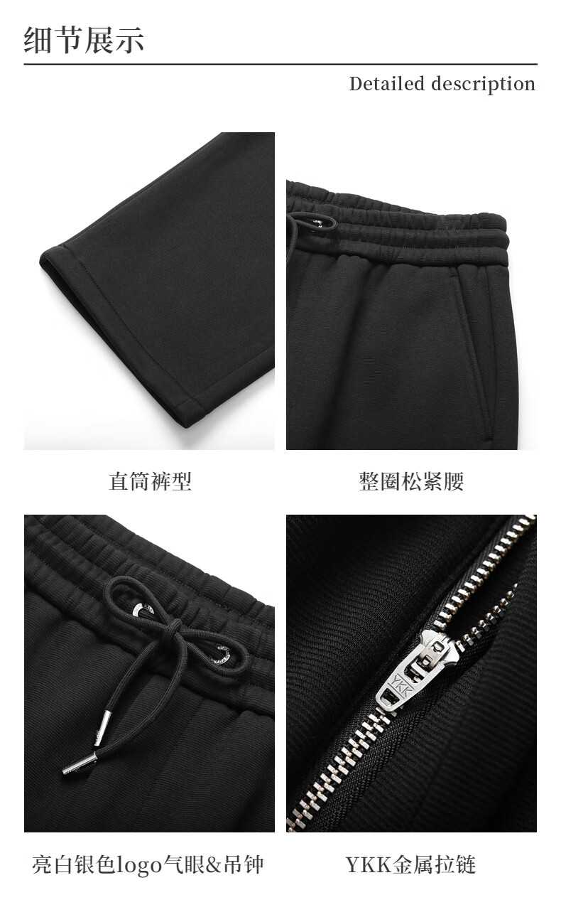 EHE men's texture thick velvet lightweight warm knitted elastic waist commuter straight pants men's 2025 autumn and winter new style black, M