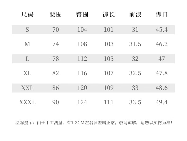 Outseam (cm) 99 cm 101.5 cm 104 cm 106.5 cm 109 cm
