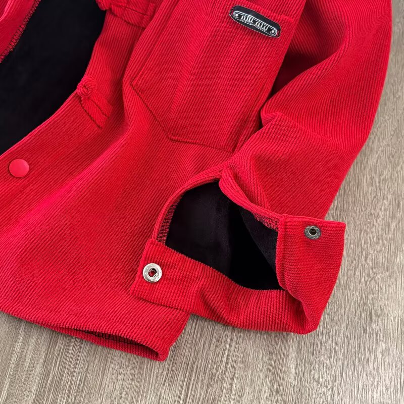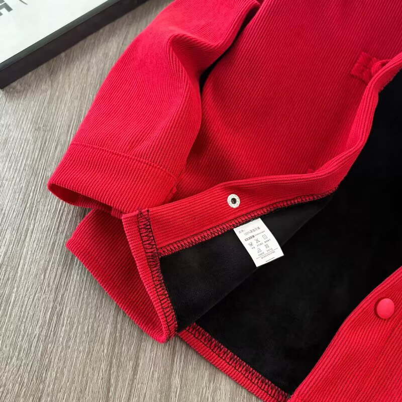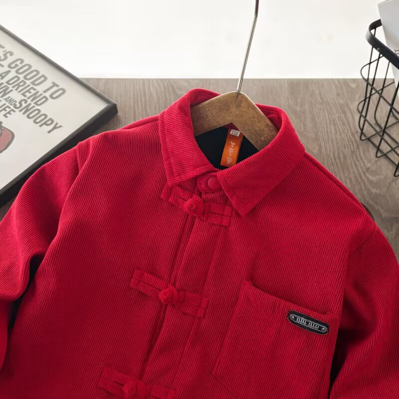 Boys' velvet long-sleeved shirt New Year's greetings clothes for children and babies Korean style trendy corduroy shirt tops red velvet 120