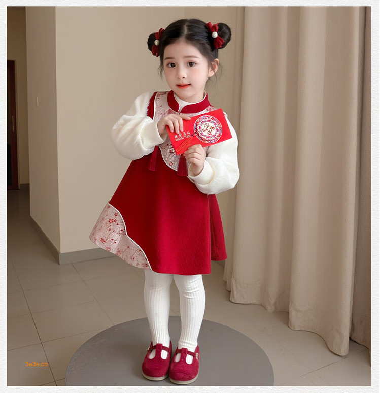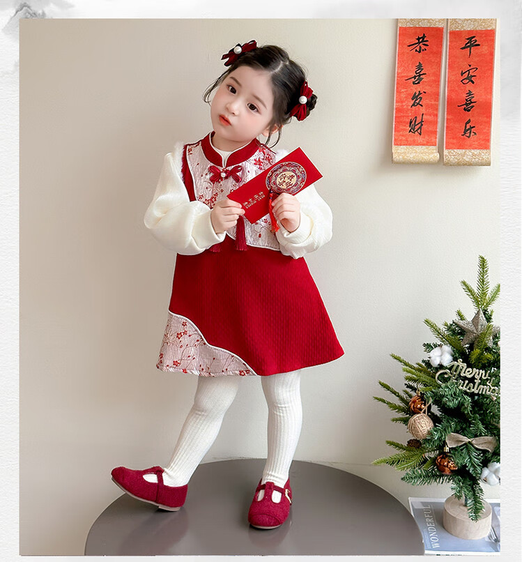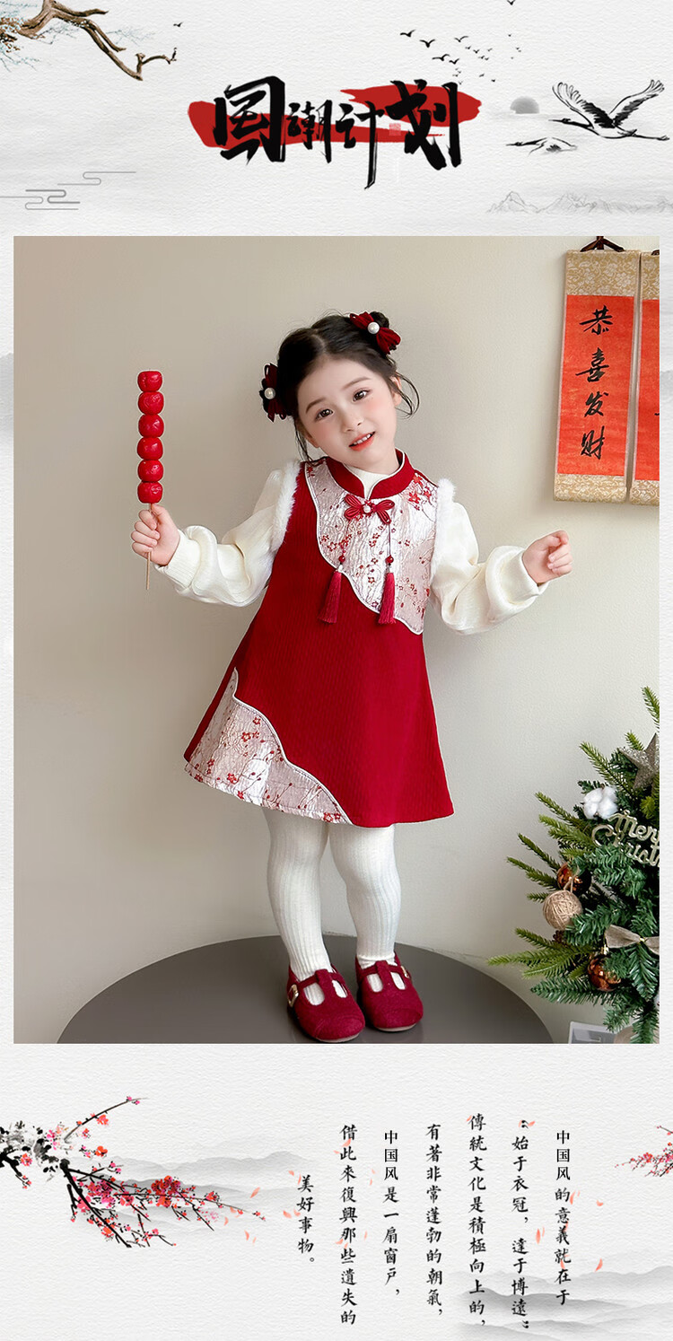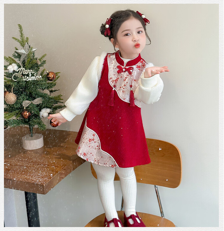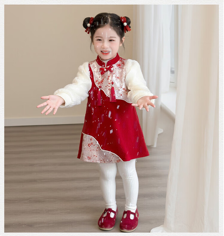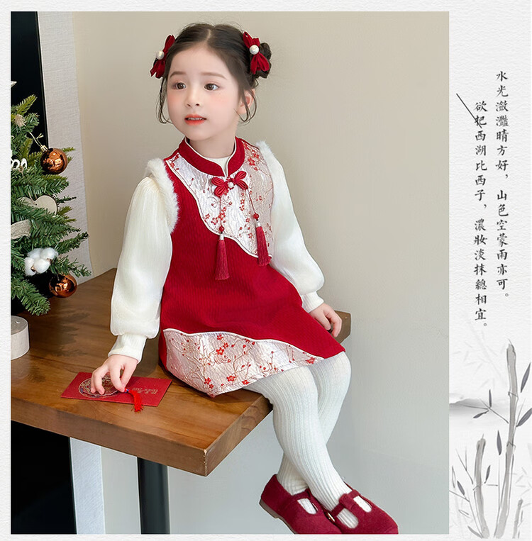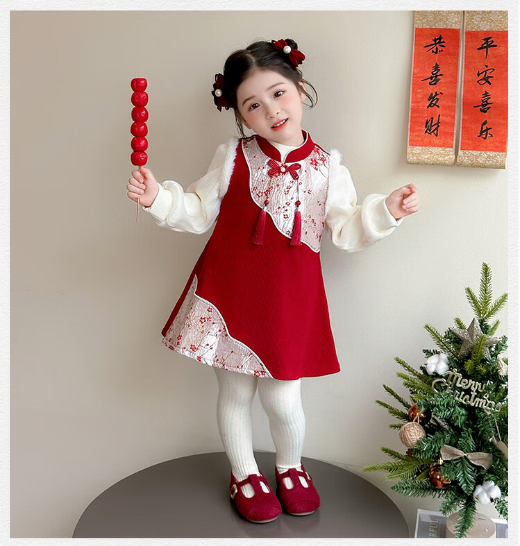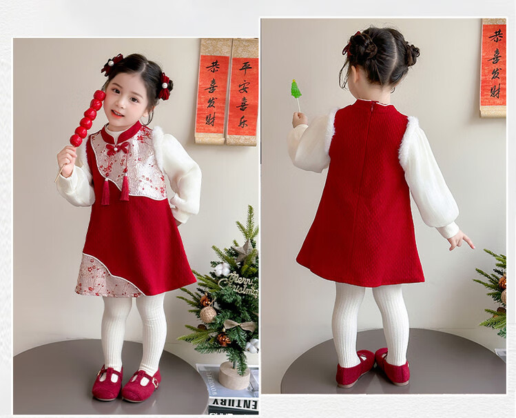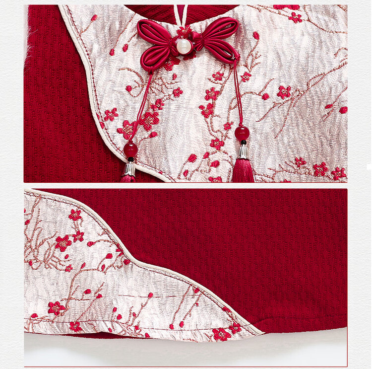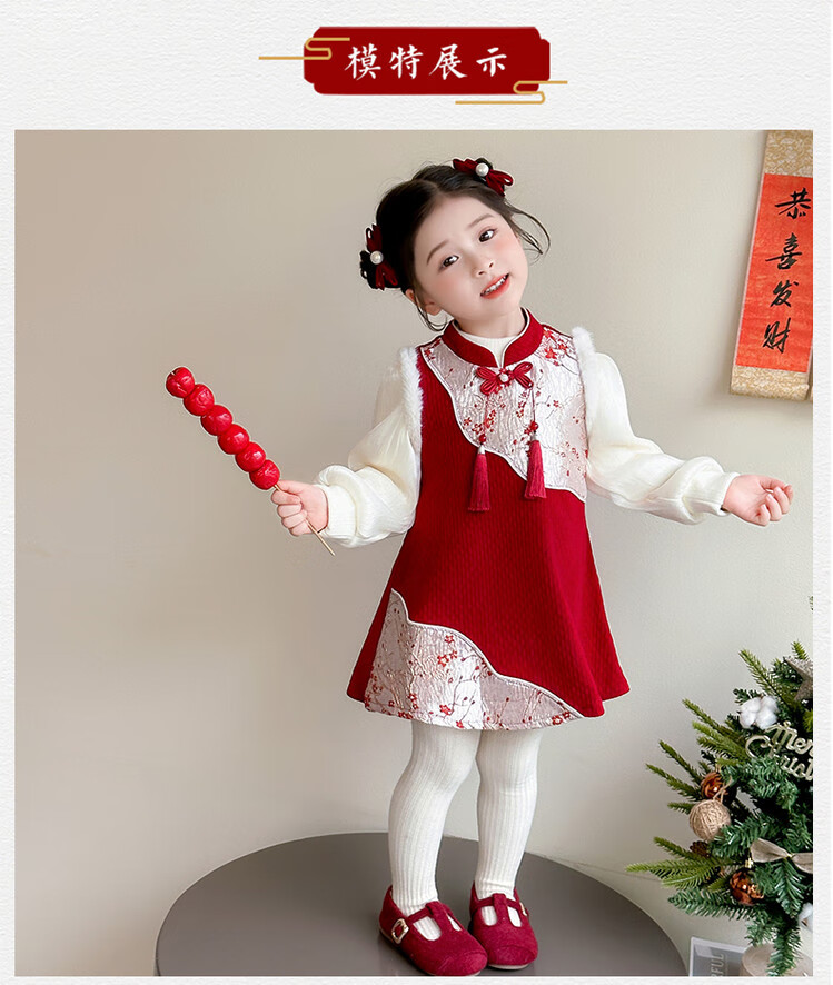 Children's new Chinese style buckle cheongsam autumn and winter velvet baby girl national style patchwork vest skirt girl children's clothing set red 100 cm