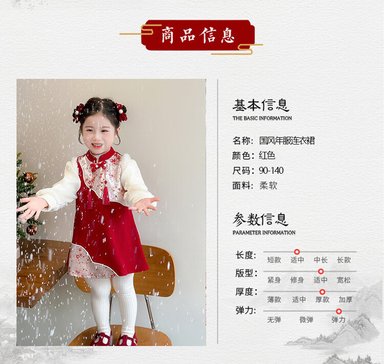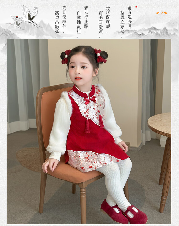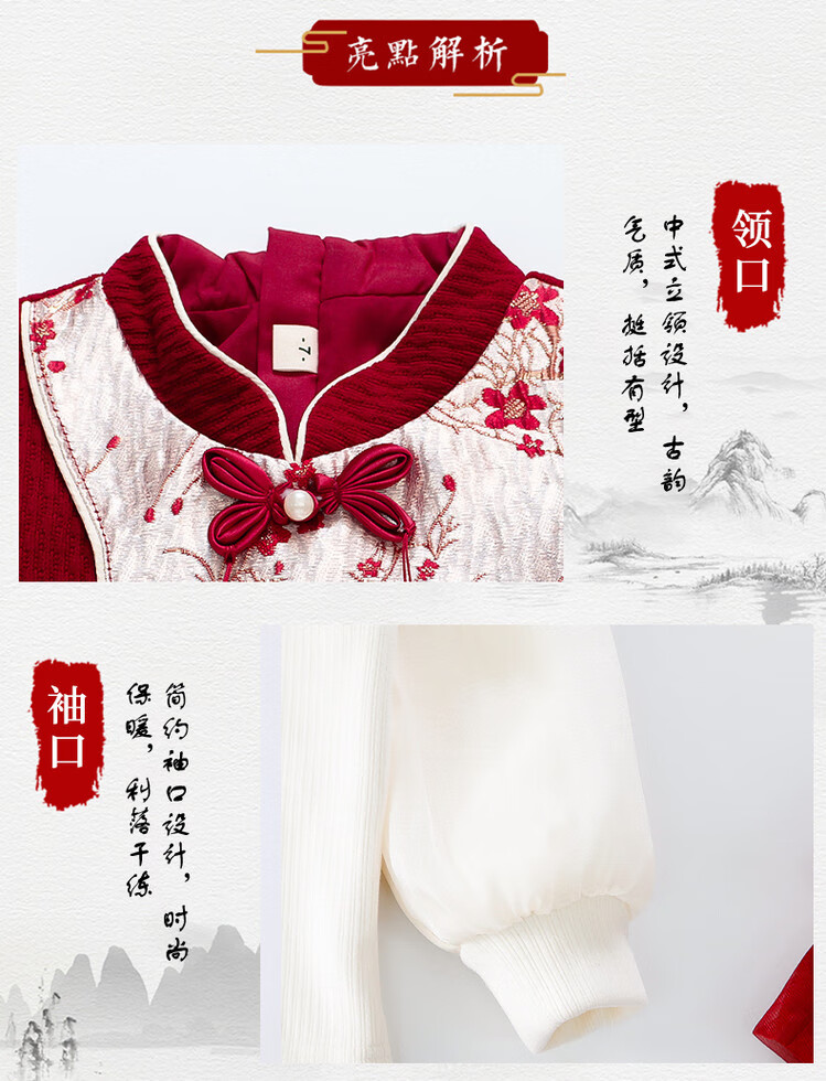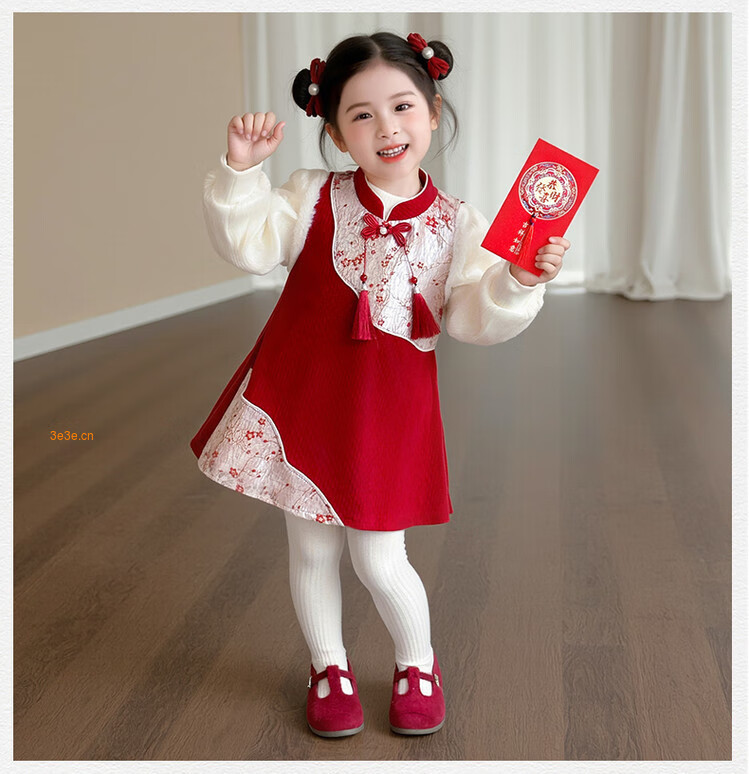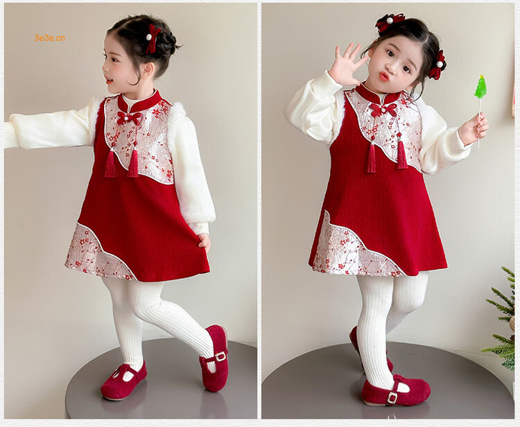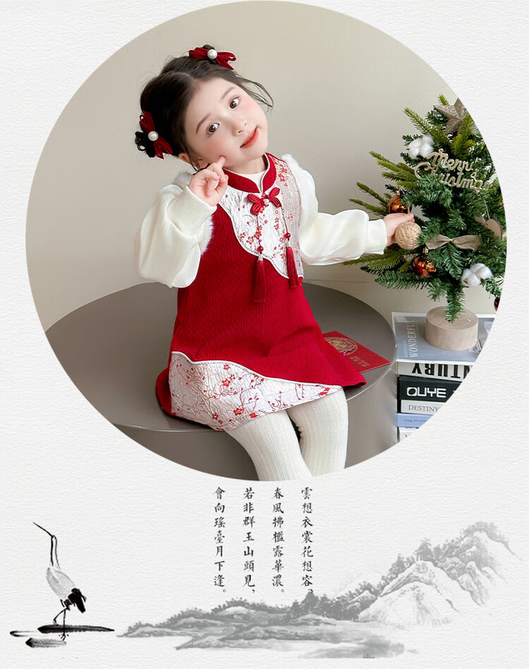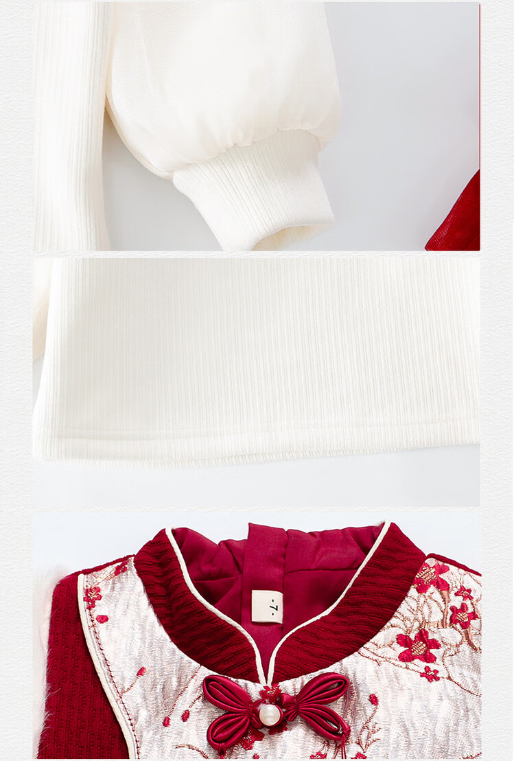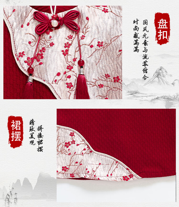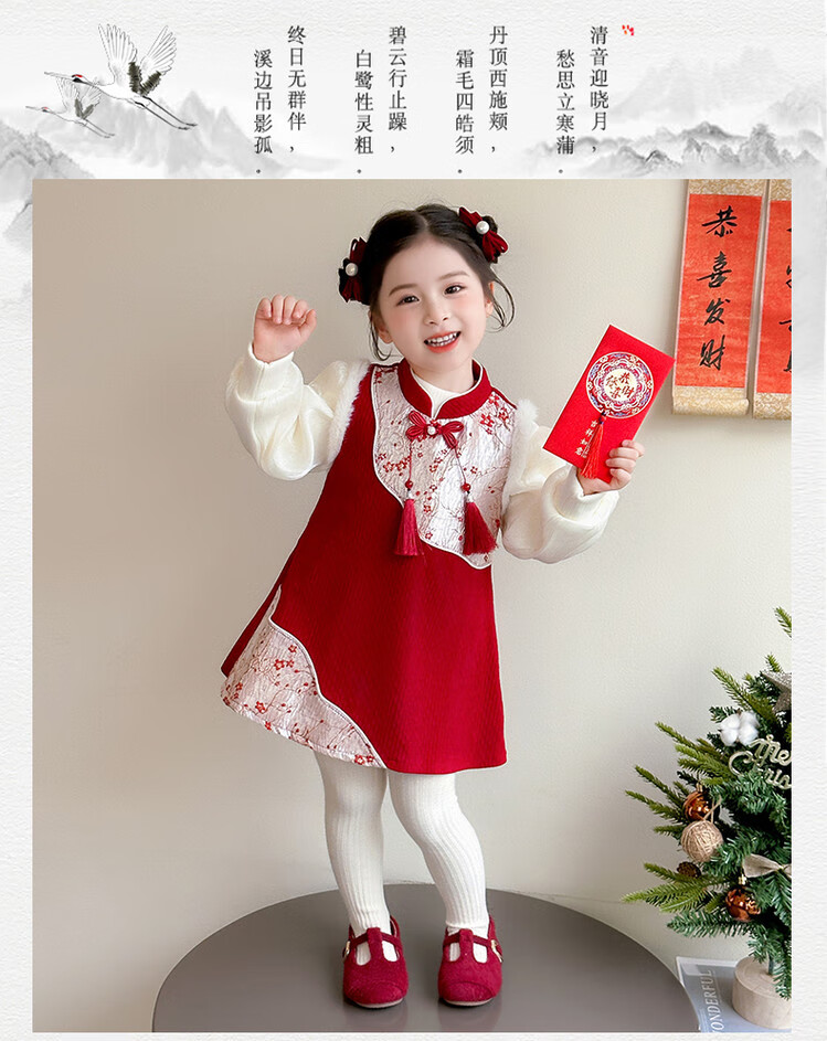 Children's new Chinese style buckle cheongsam autumn and winter velvet baby girl national style patchwork vest skirt girl children's clothing set red 100 cm