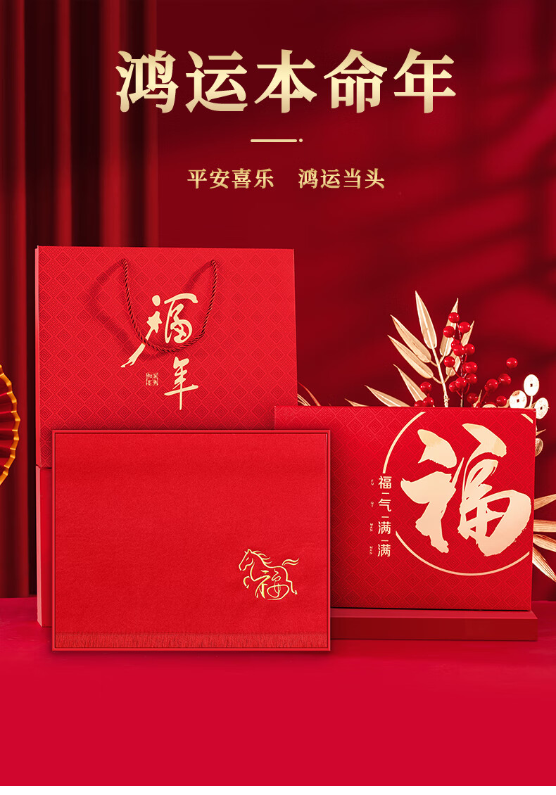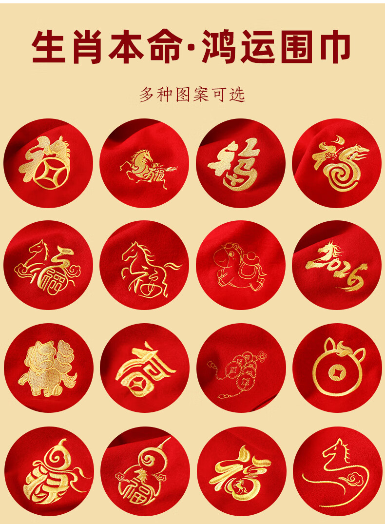 Hengyuanxiang scarf men's wool warm and cold-proof thickened high-end scarf women's year of birth red winter gift box for birthdays 6479 blessings come with the horse gift box