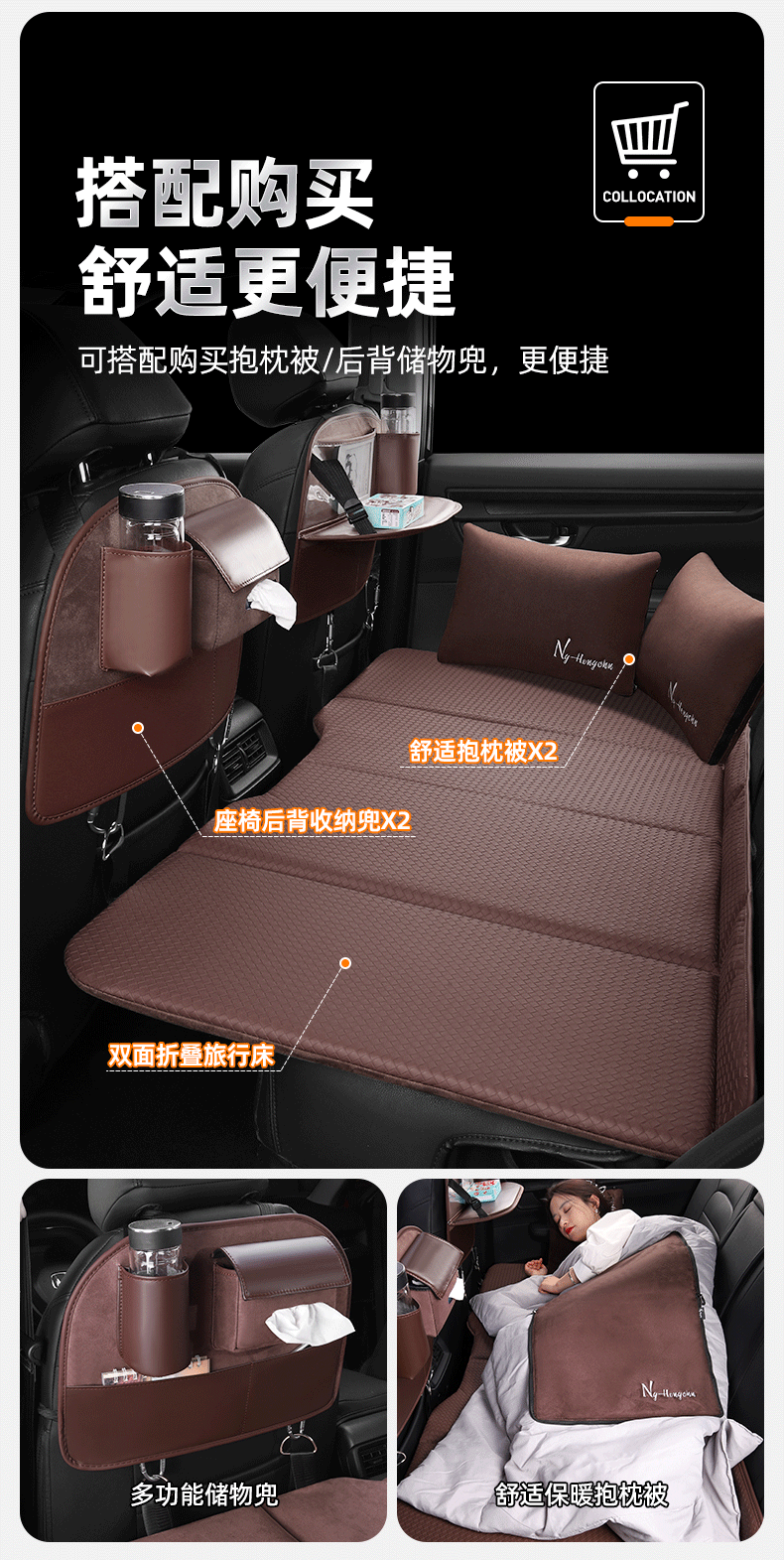 Audi q3 car rear sleeping mat car mattress folding bed rear seat sleeping mat travel children's car sleeping YSF brown - large size - chenille + nappa leather pillow and back basket complete set