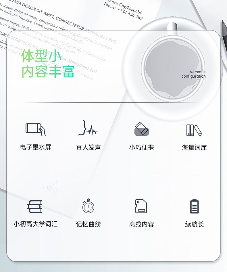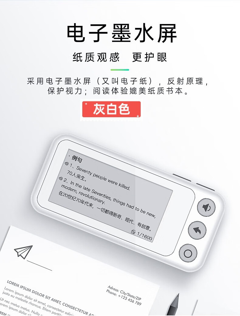 Sanqihu English word learning machine, primary school, junior high school, high school, college entrance examination, self-discipline artifact, ink screen portable card machine, basic 2.13-inch white model + headphones