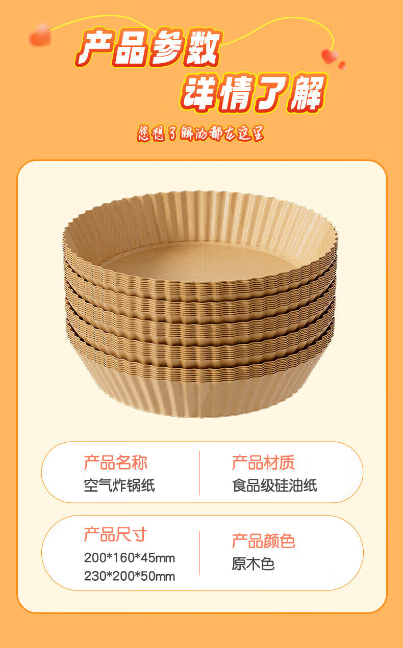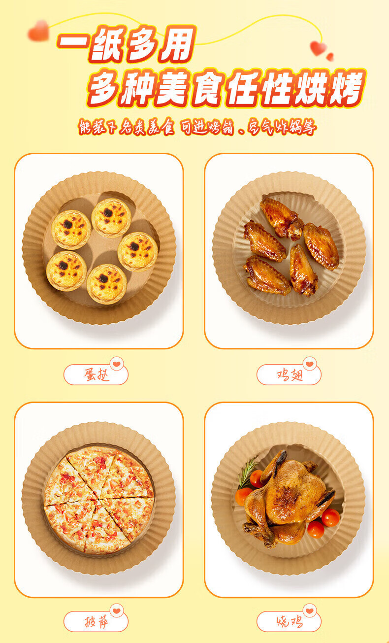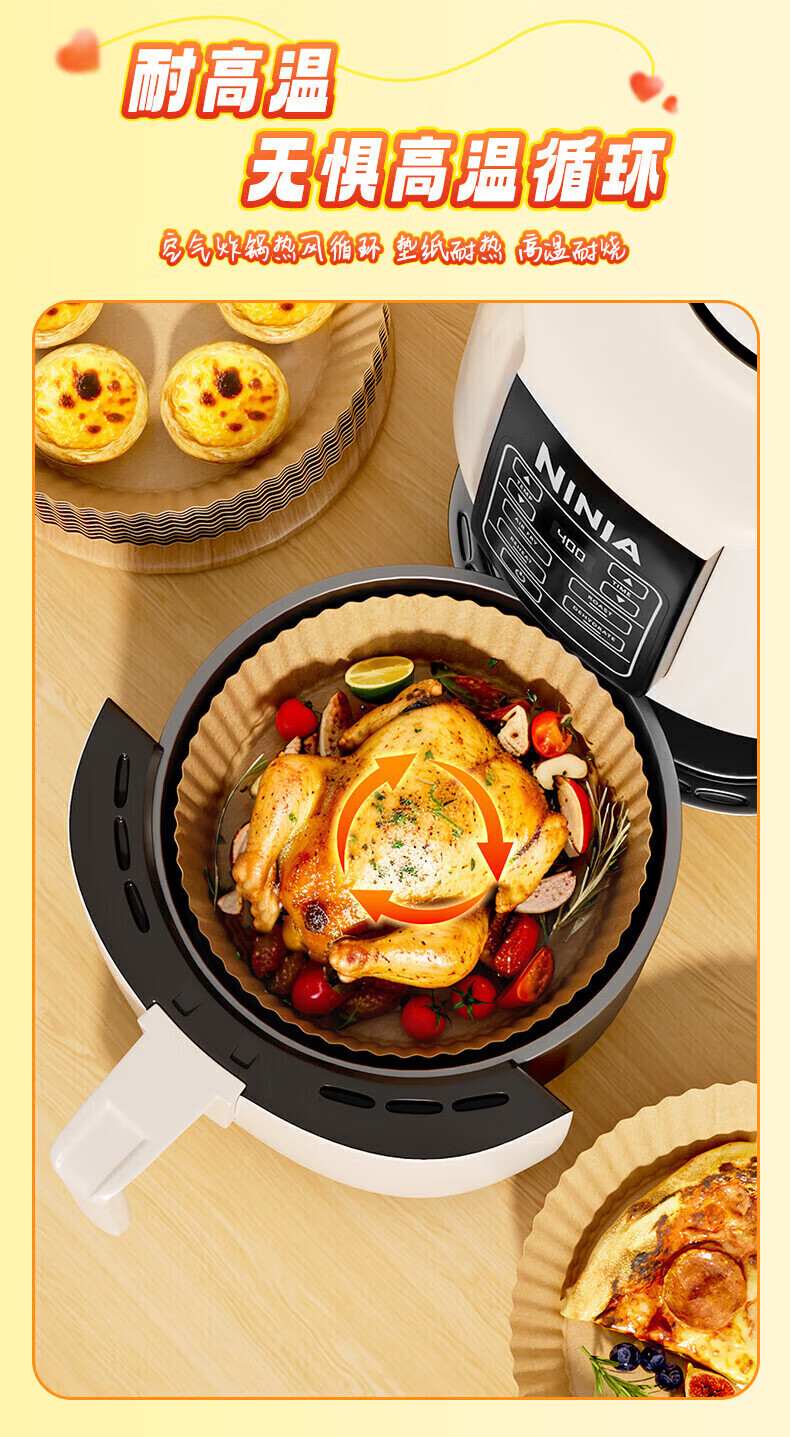 Jidaocook air fryer special paper baking pan oil-absorbing paper pad paper household food silicone paper tin foil bowl baking pot frying thickened large round 50 sheets + pet dust box 3-5 liter fryer
