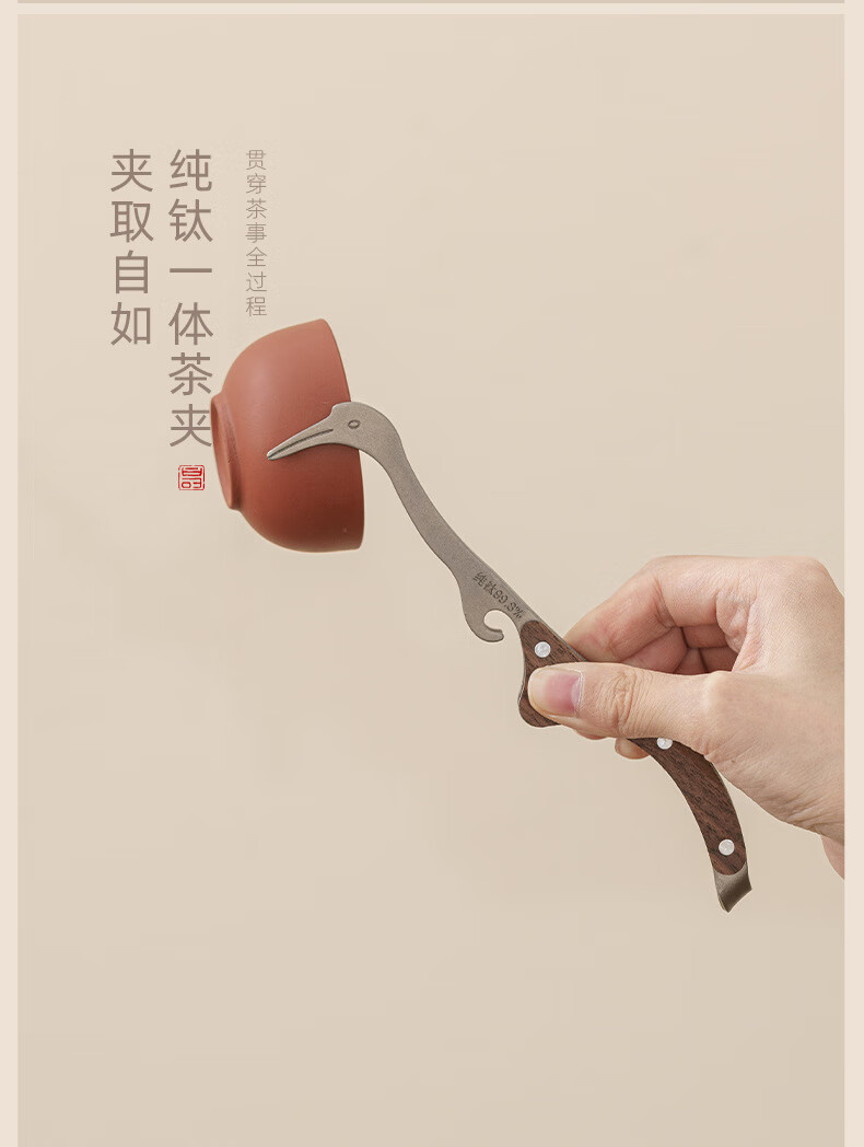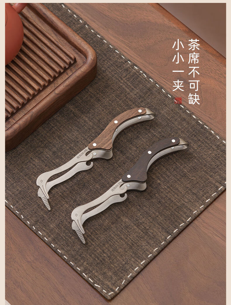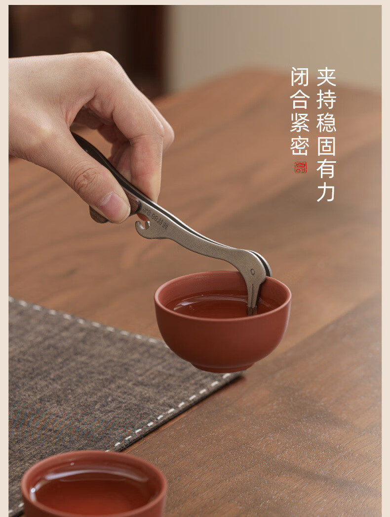 Lion Aokang tea clip metal non-slip tea cup clip tweezers to take tea leaves tea ceremony tea set tea clip household high-end tea set accessories stainless steel tea cup clip 1 solid wood handle non-slip and durable