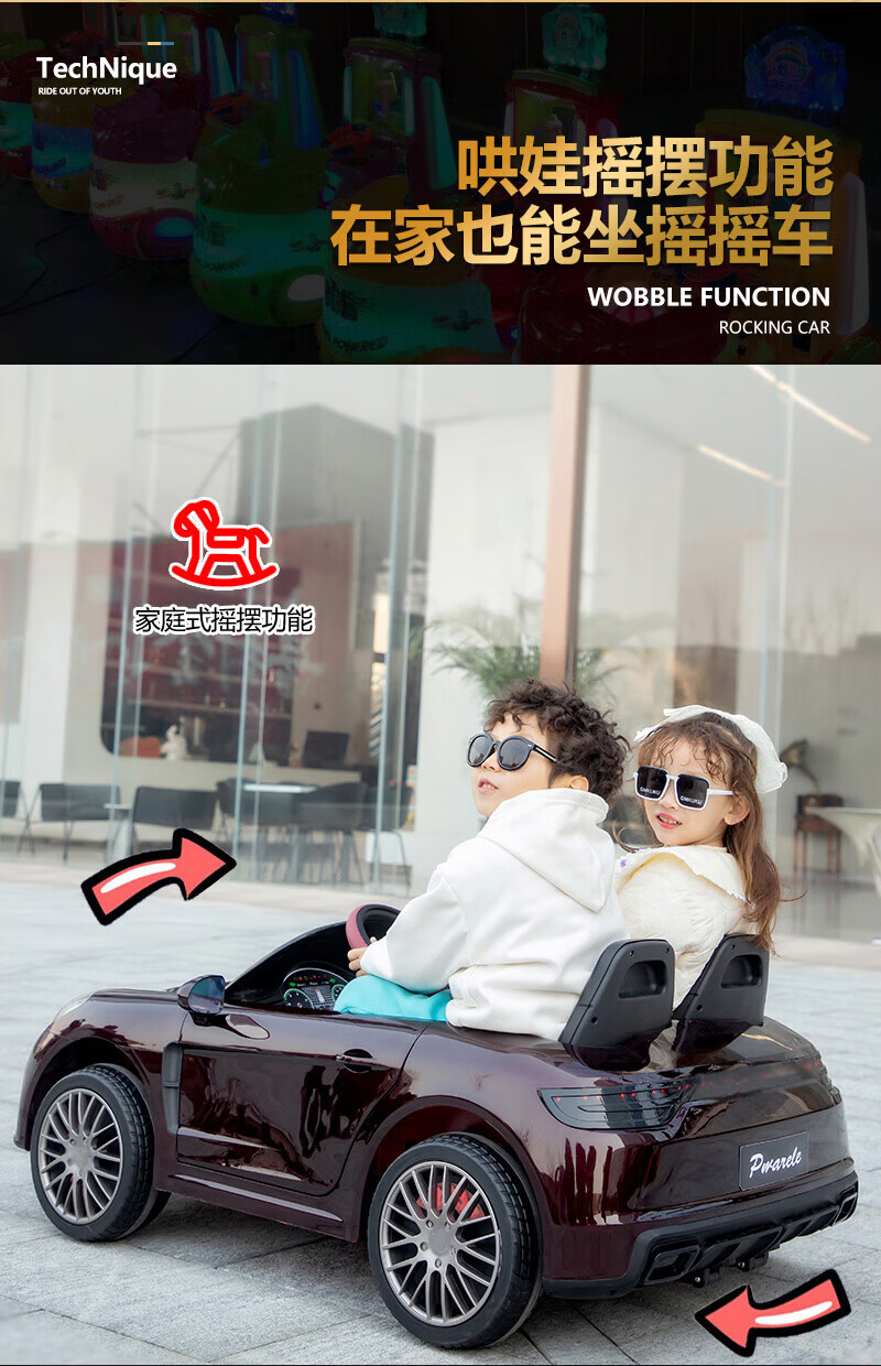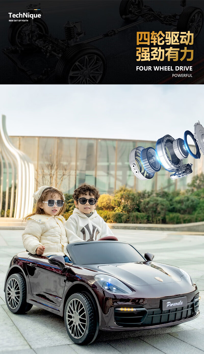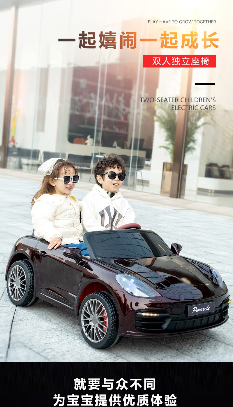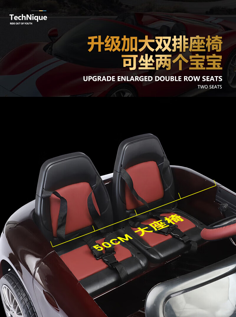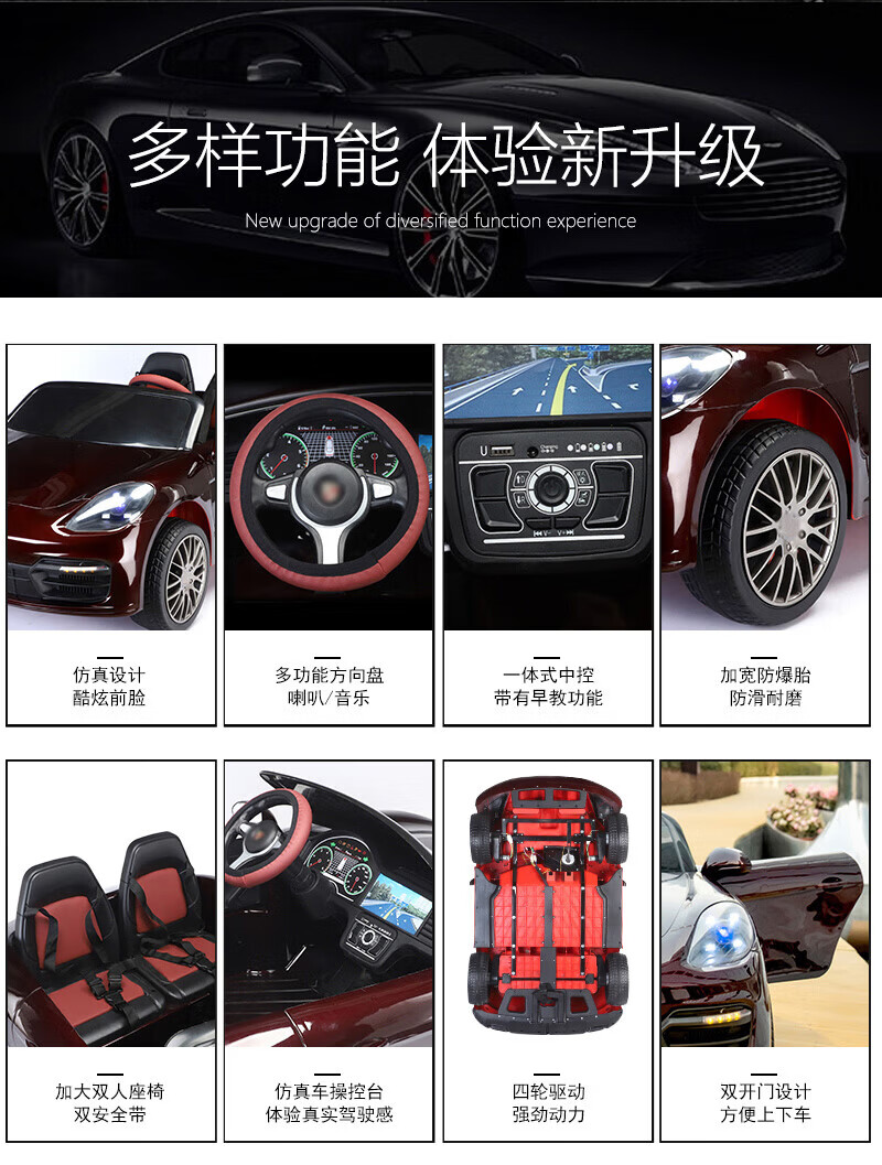 Jinkaitong adults can sit in children's electric car can sit in adults with remote control baby toy car first year gift flagship paint red lifetime after-sales double leather seat + four-wheel drive + 12V15 soft wheels