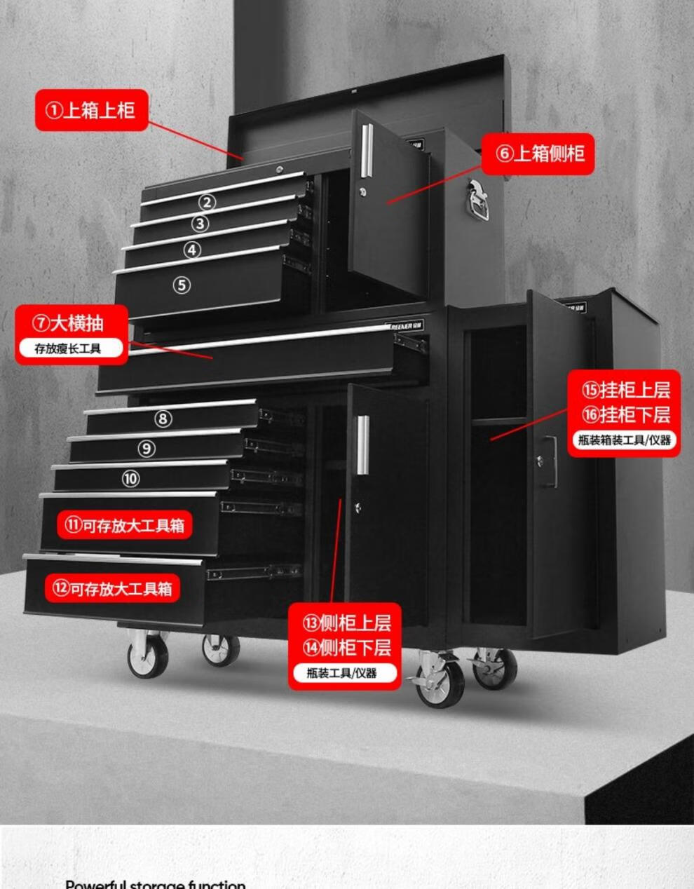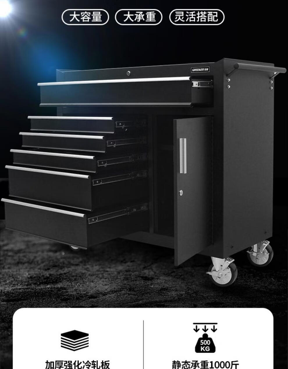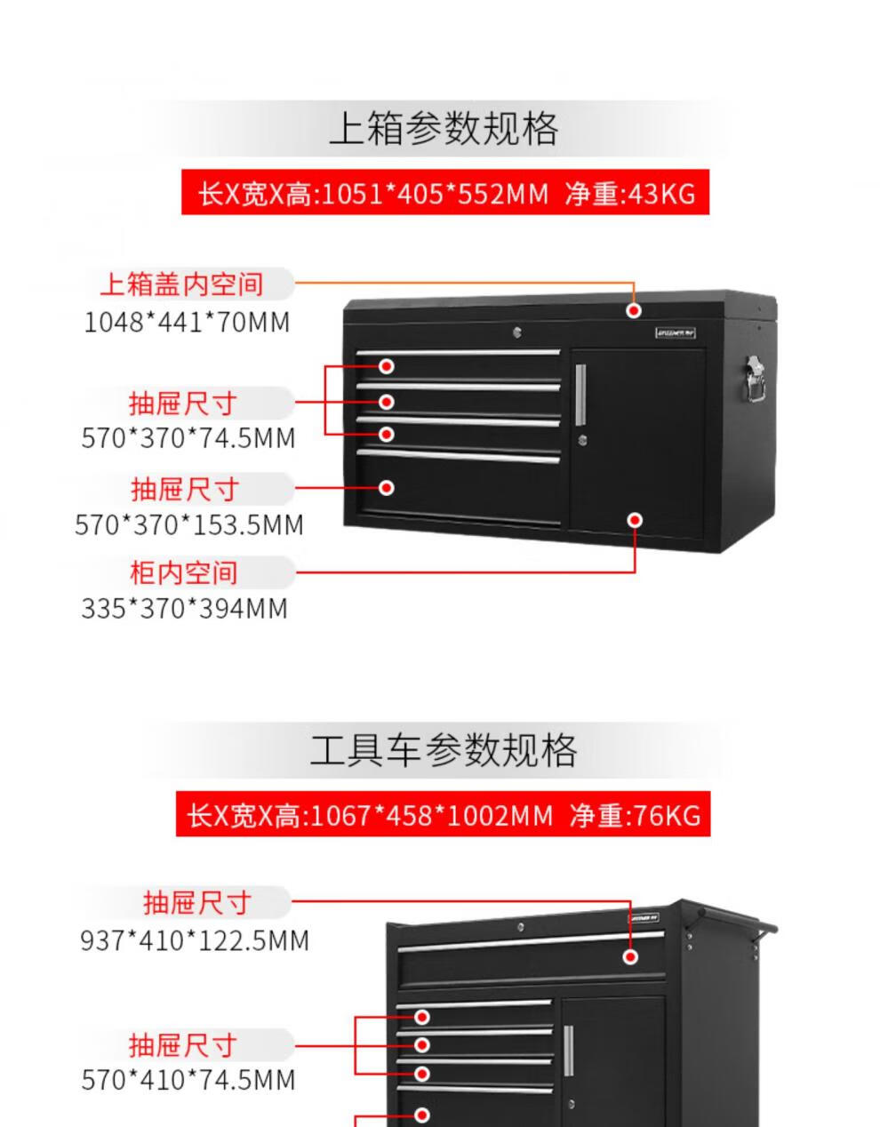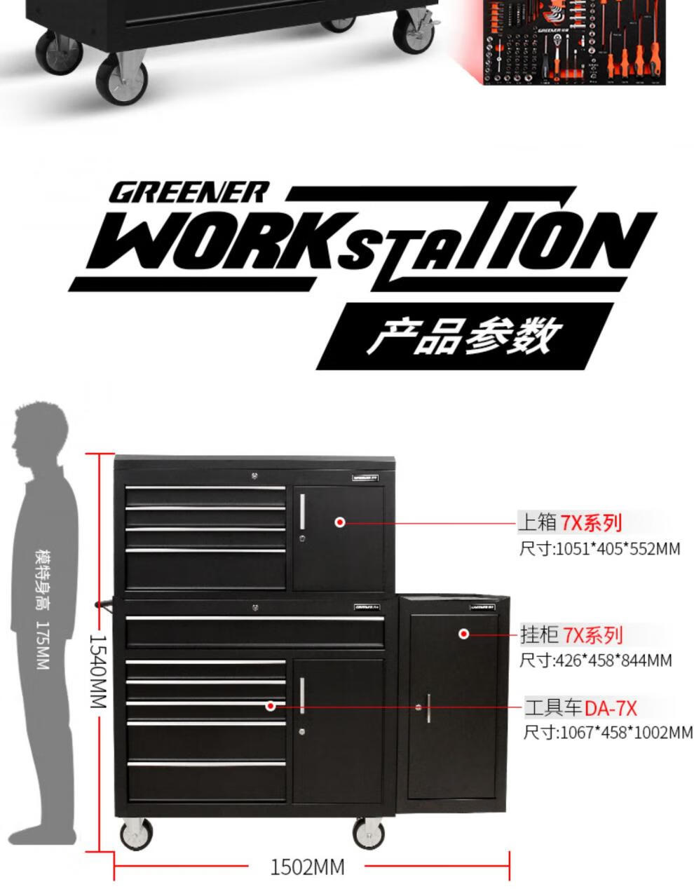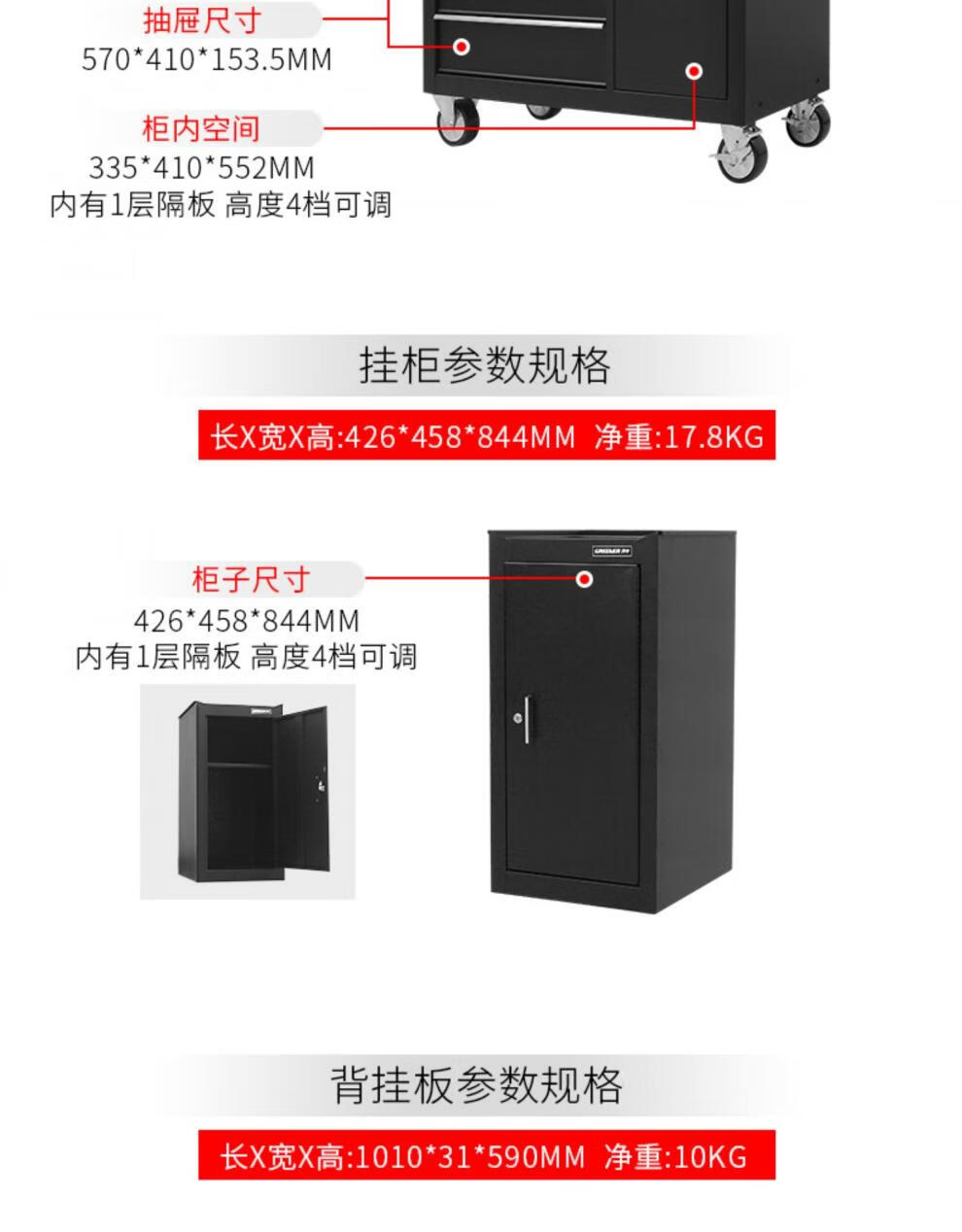 Green Forest Cart Multifunctional Auto Repair Cabinet Industrial Workshop Heavy Duty Mobile Drawer Type with Hanging Board DA-76 Tool Cart - Black