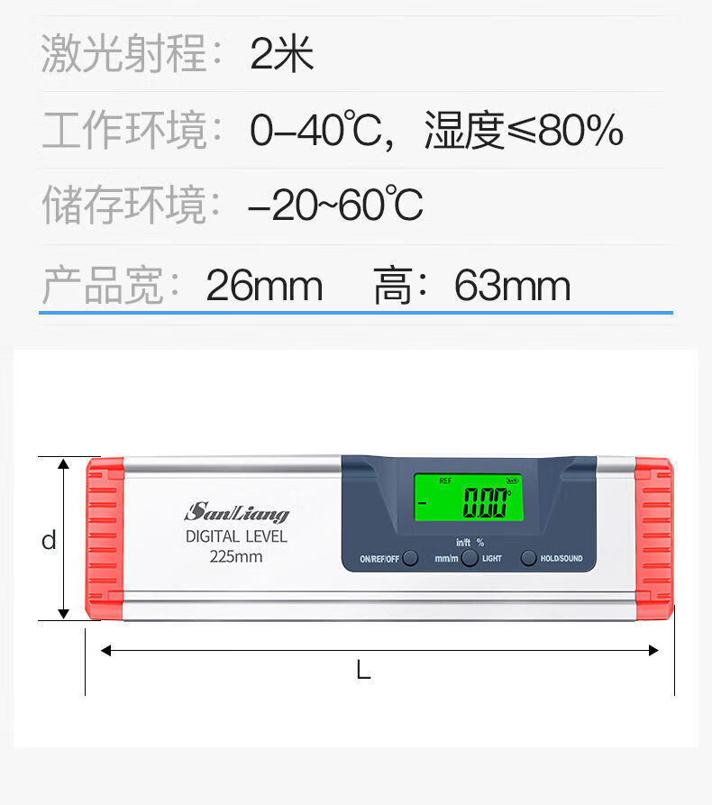 Sailoto three-quantity high-precision electronic digital display laser level balance angle ruler magnetic measuring instrument with 0225mm 0-225mm with magnetic