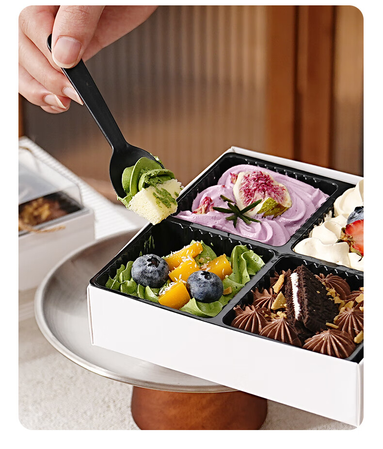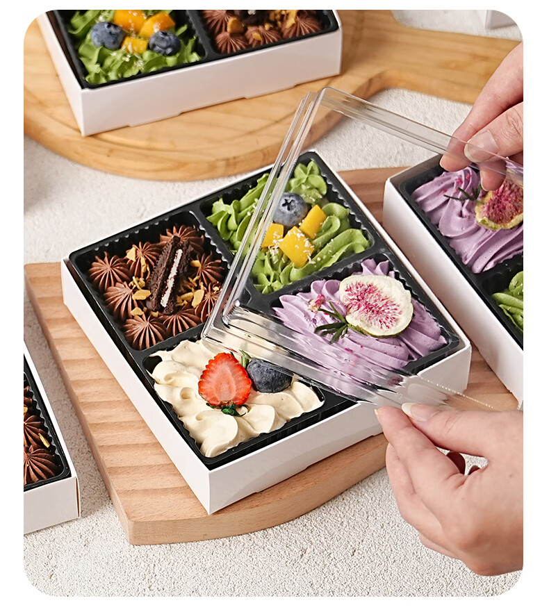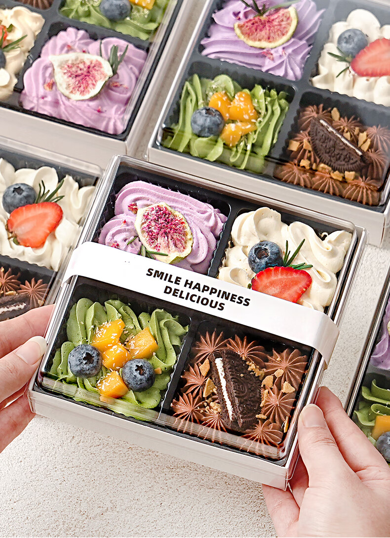 Internet celebrity four-piece joy box dessert packaging box, one-time packaged cream small four-square home baking four-piece 100 sets