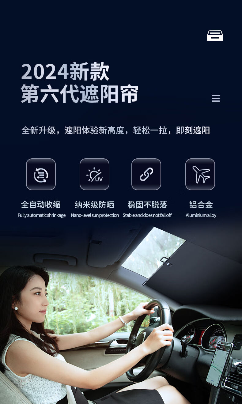 Car sunshade automatic one-touch retractable curtain front windshield sun protection and heat insulation car sunshade umbrella artifact large medium and large SUVVMPV light passenger minivan