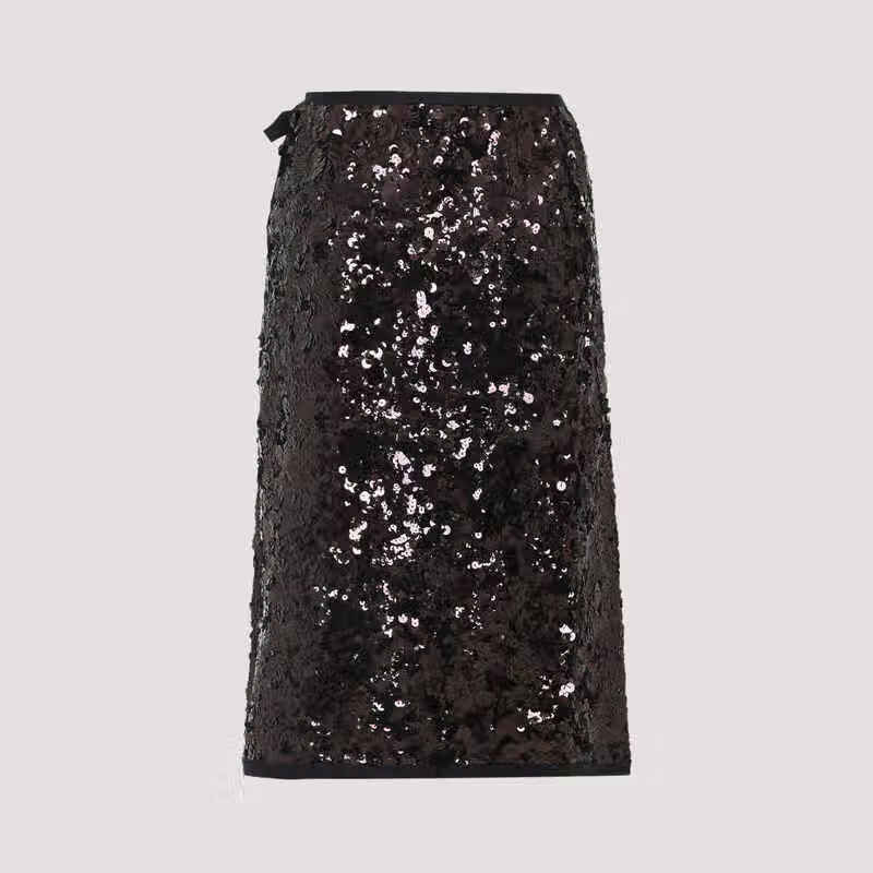 PRADA FW25 Light Luxury Women's Nylon Midi Skirt Nude & Neutrals 20 | 40 IT