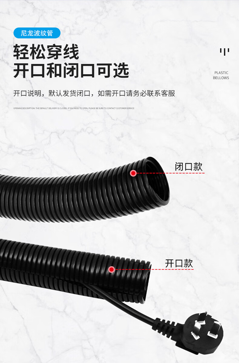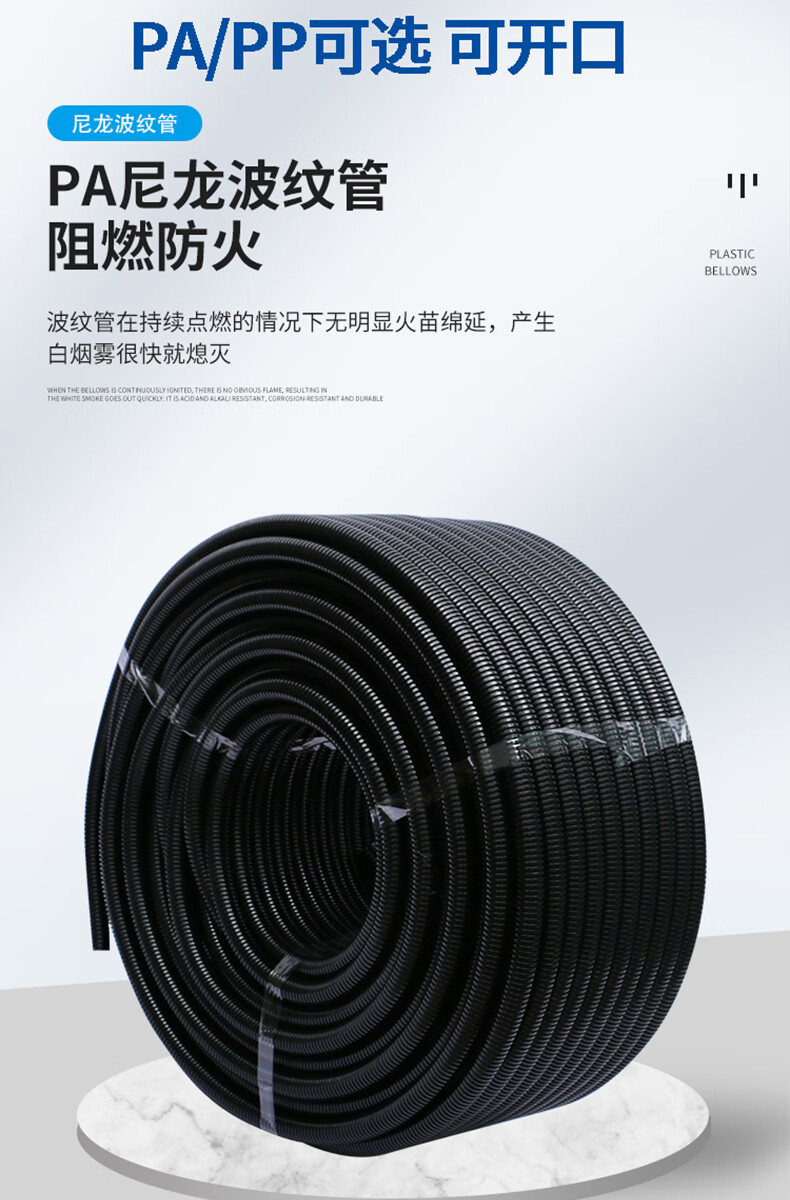 Open picture corrugated P thickened PP flame retardant nylon cable harness protective sleeve threaded plastic threading soft and openable PA__AD7_200 meters