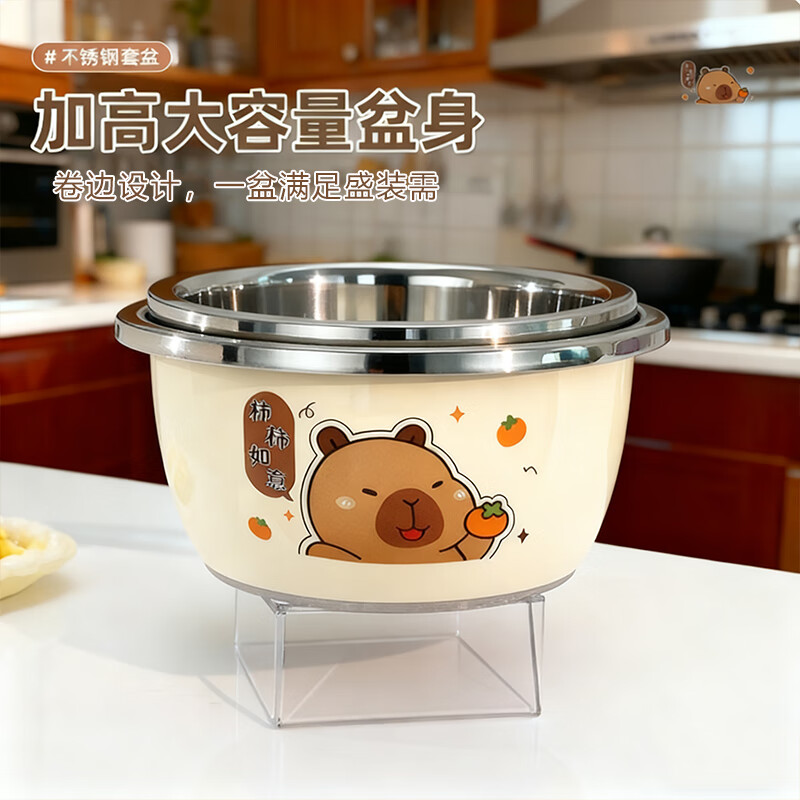 Kapibala stainless steel washbasin home kitchen cooking sink and noodle basin Kapibala basin one piece set 22cm