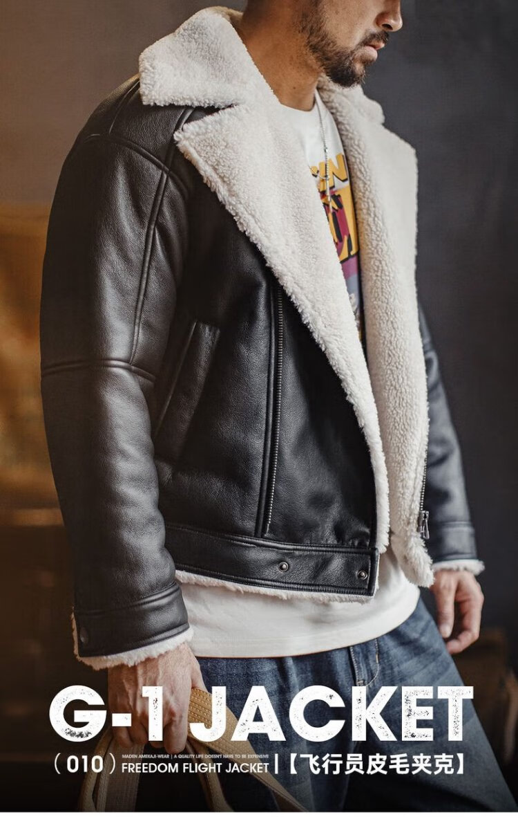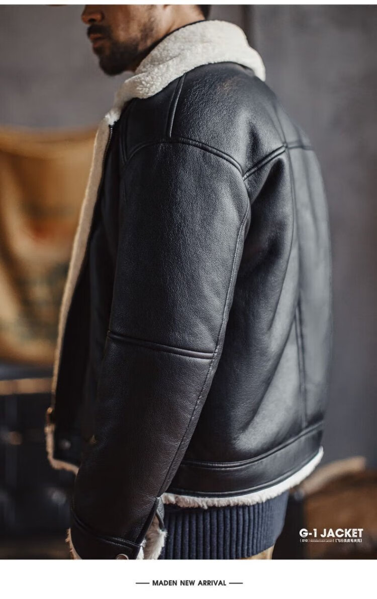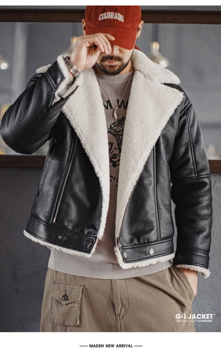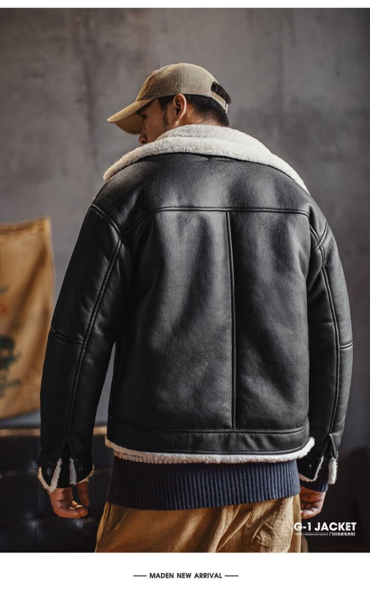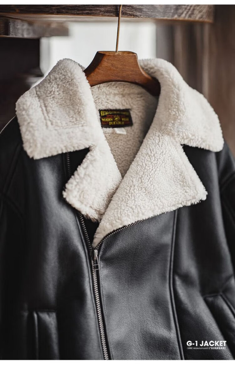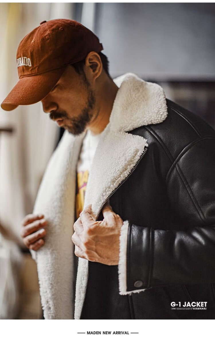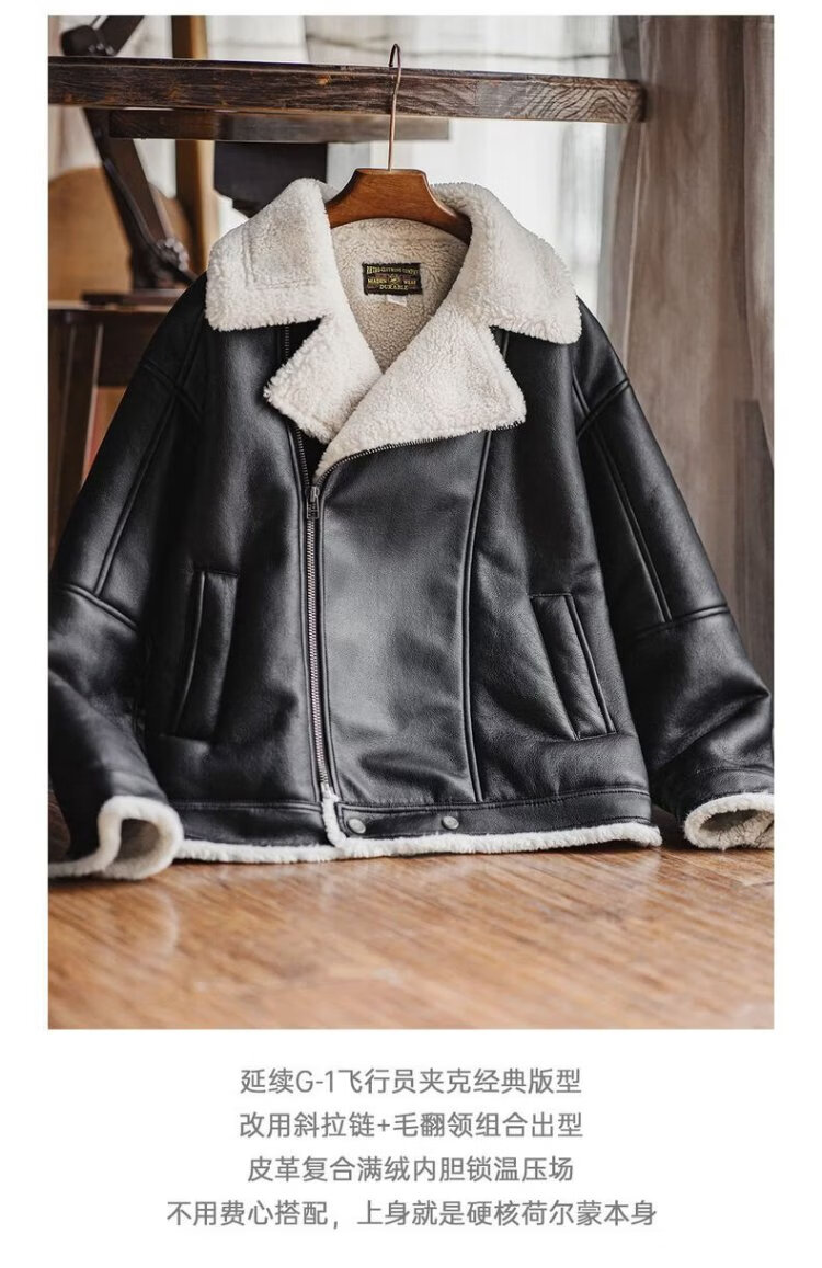 Madden workwear American G1 flight suit jacket bomber imitation lamb velvet pebbled leather jacket warm thick jacket men winter black bomber leather jacket/imitation leather jacket plus velvet thickening/leather jacket men's XL