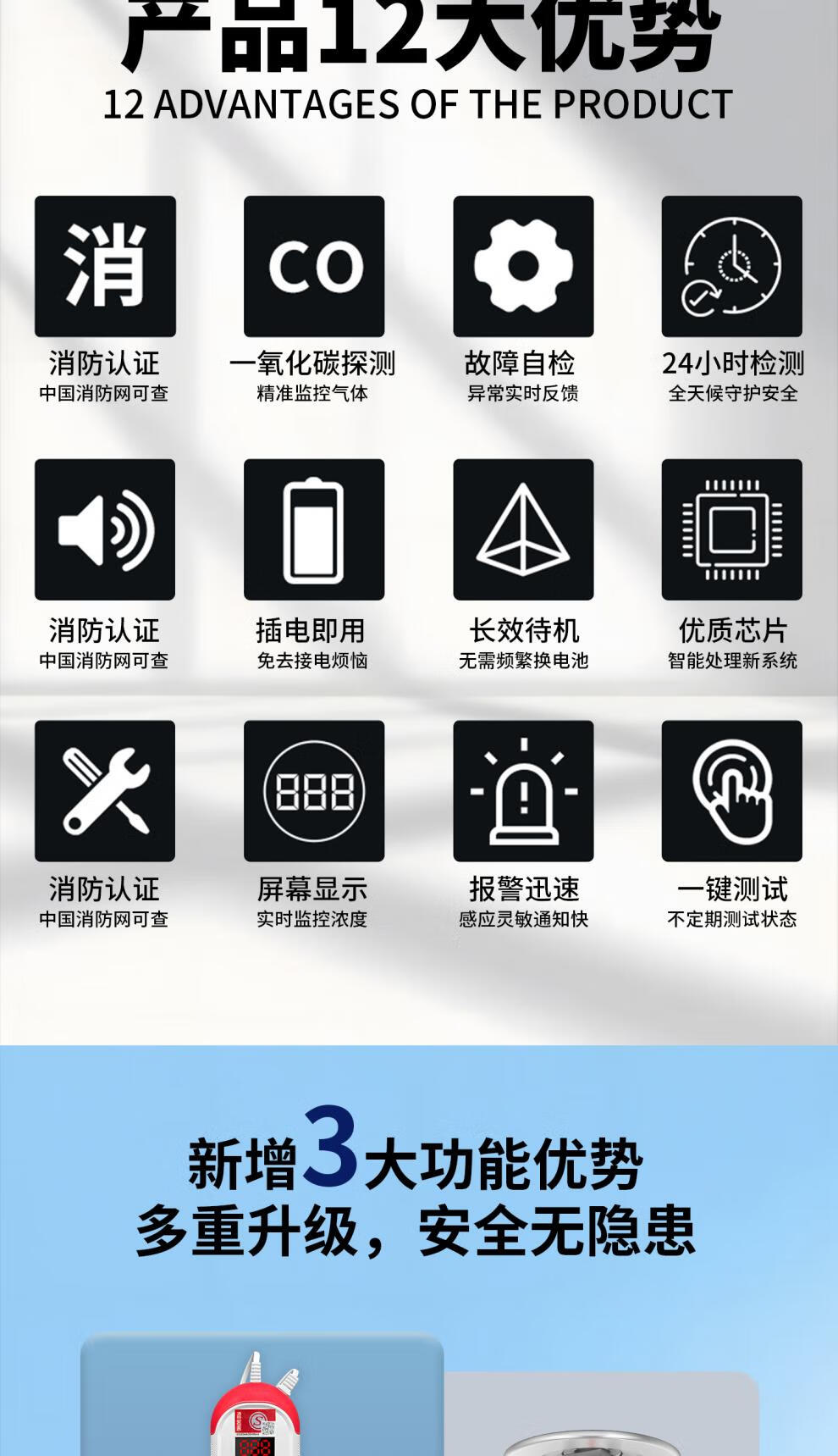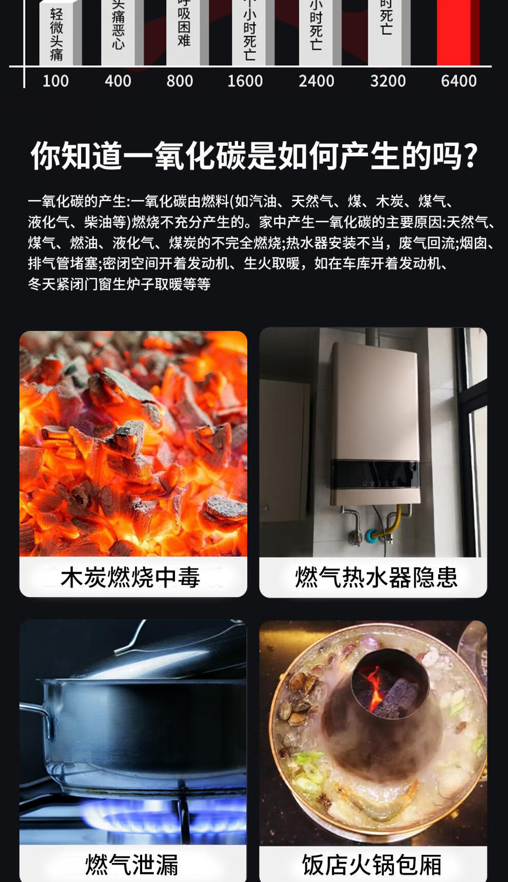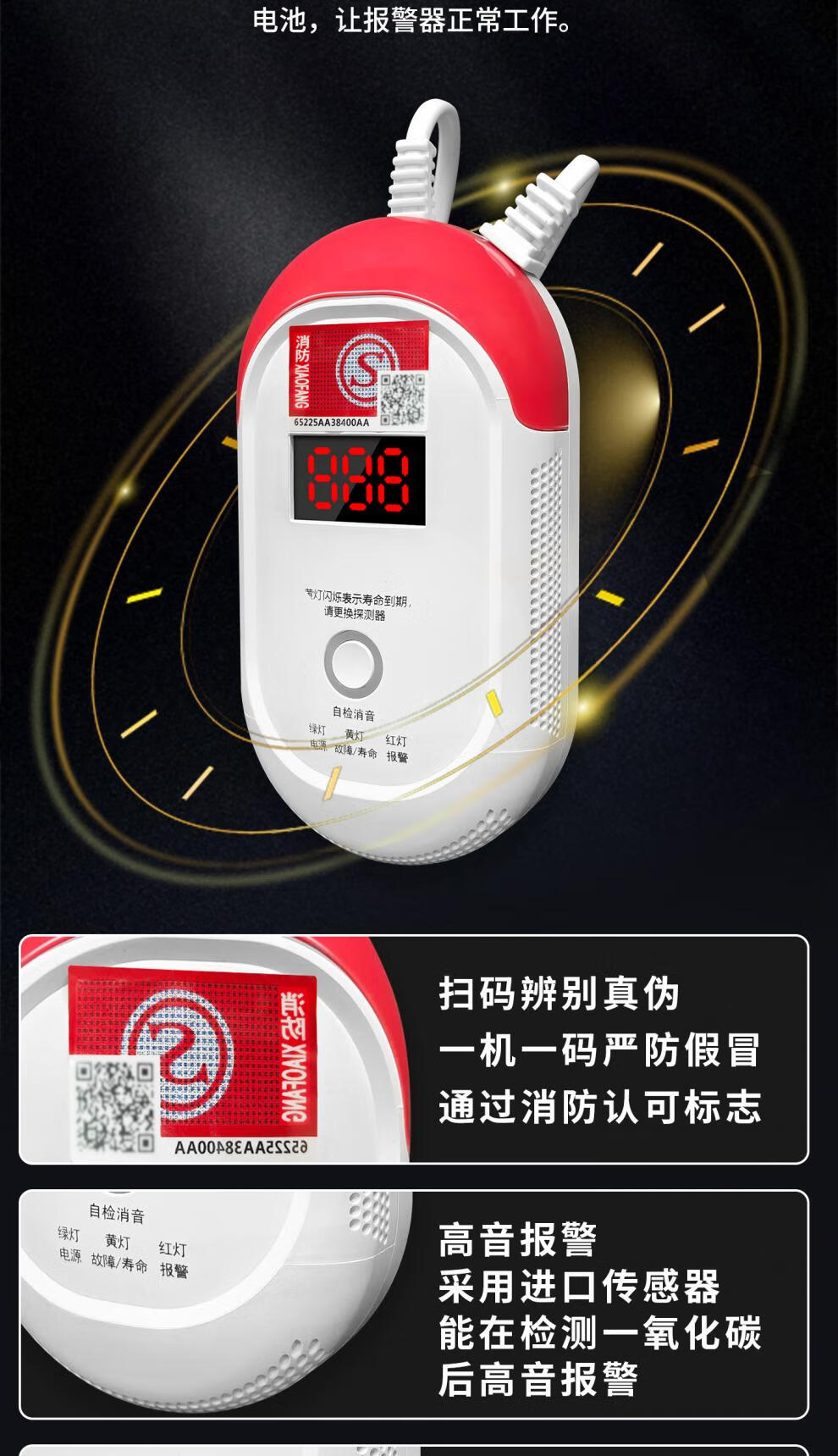 Carbon monoxide alarm household indoor soot coal stove honeycomb briquette poisoning detector detector independent (plug-in type) CO alarm