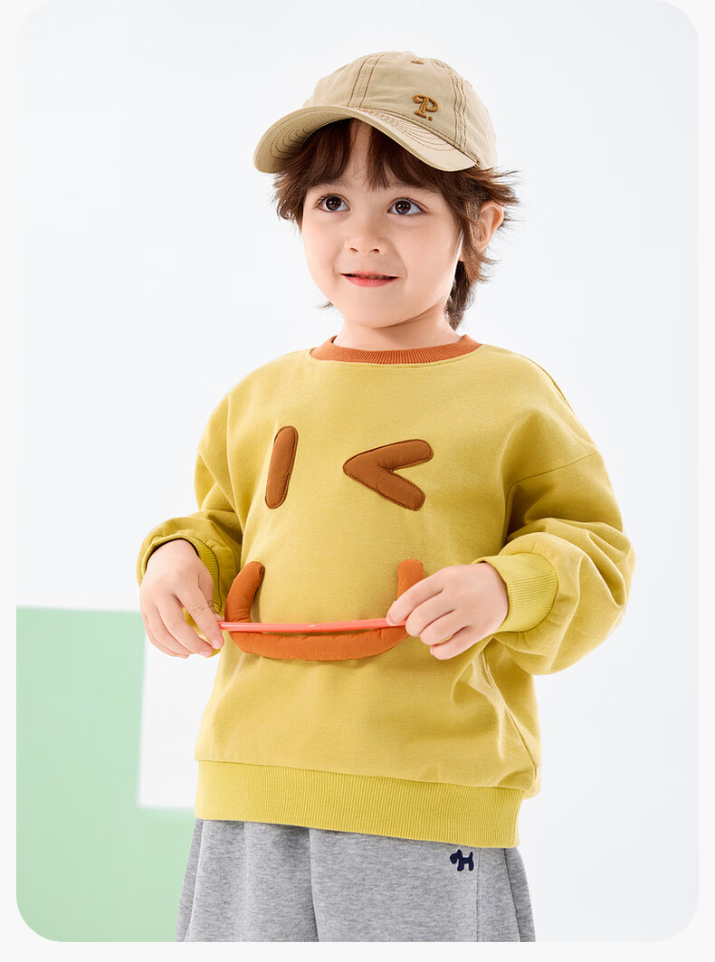 Dudujia 3D Cartoon Boys' Spring Casual Sweater Children's Spring Clothes Loose and Versatile Long-Sleeved Tops Cute Children's Clothes Goose Yellow 80