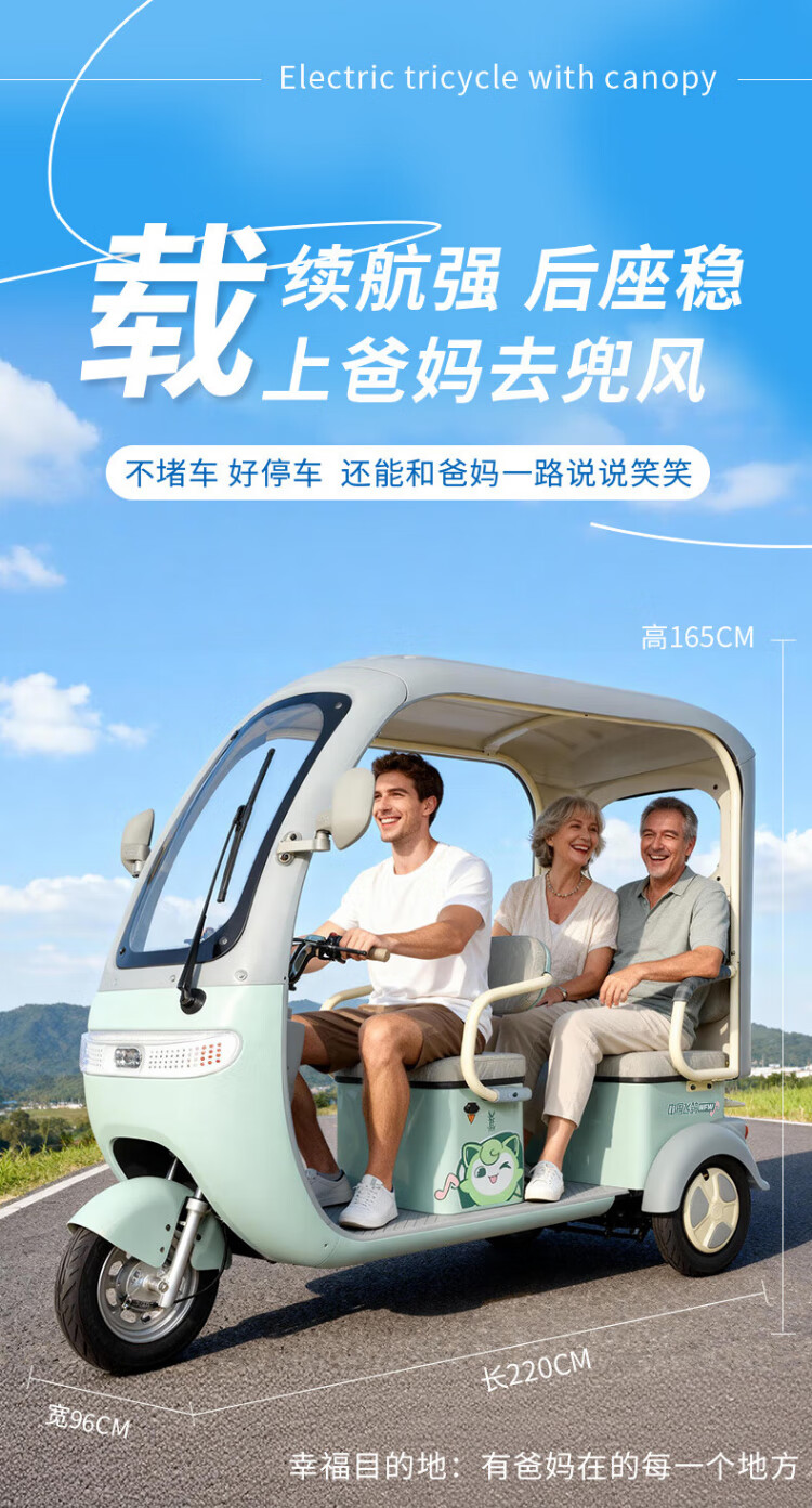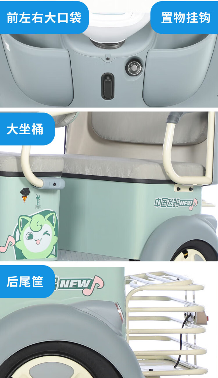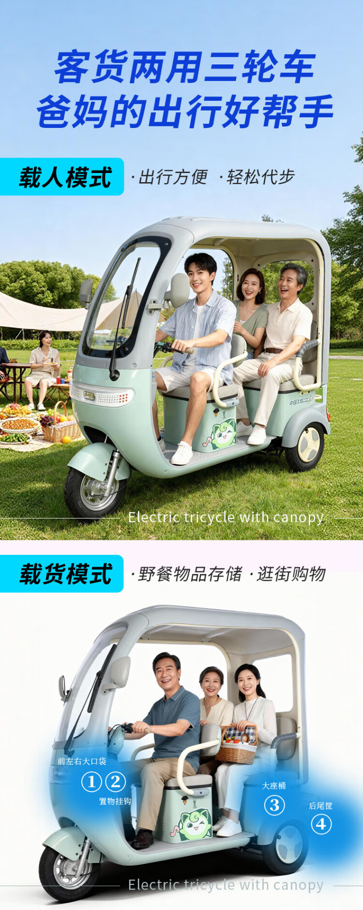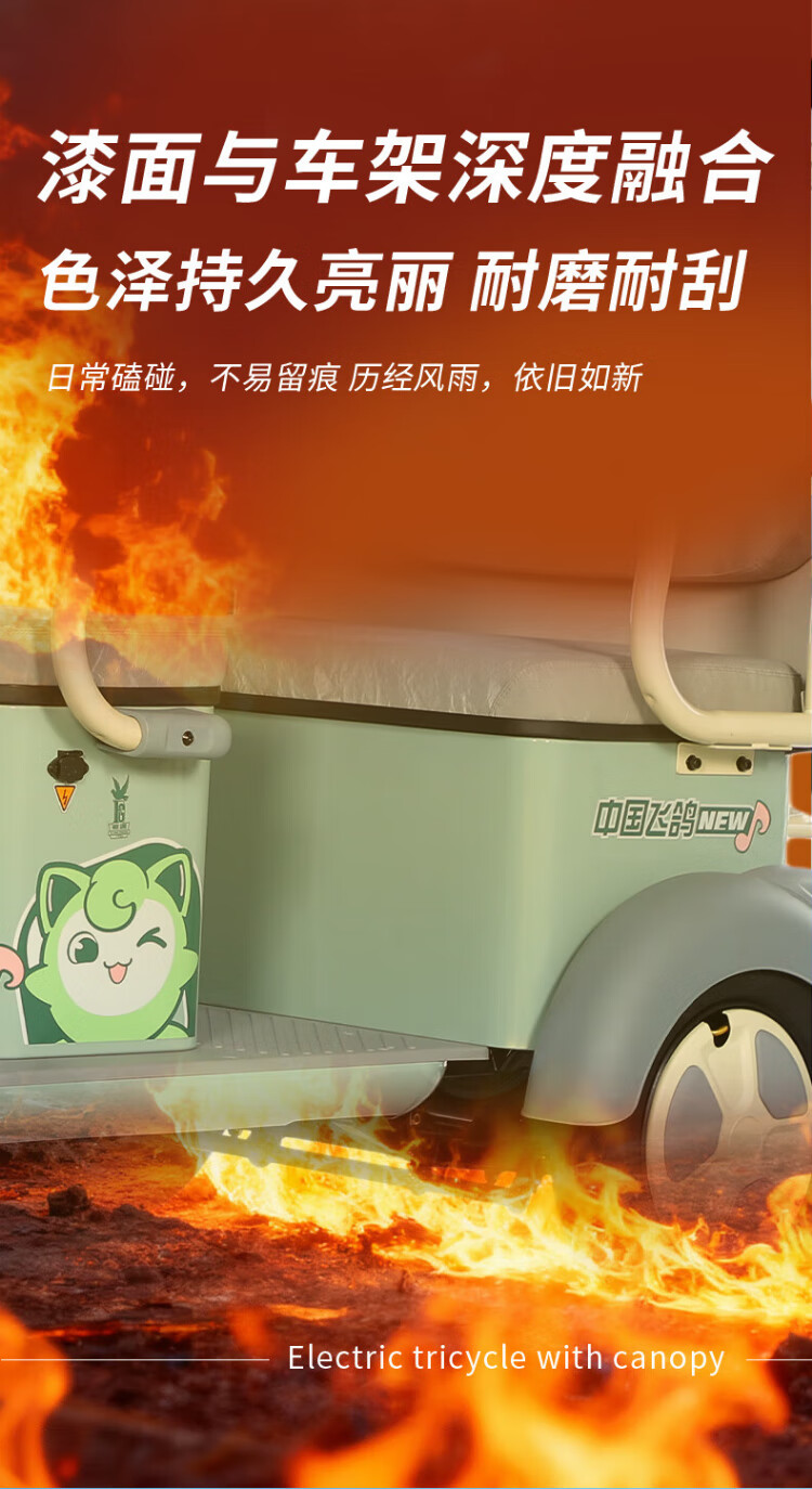 Flying Pigeon electric tricycle for the elderly, household electric tricycle for adults, small-sized, covered, all-in-one pick-up and drop-off for children Chaowei/Tianneng 600W60V24AH black gold about 120 miles