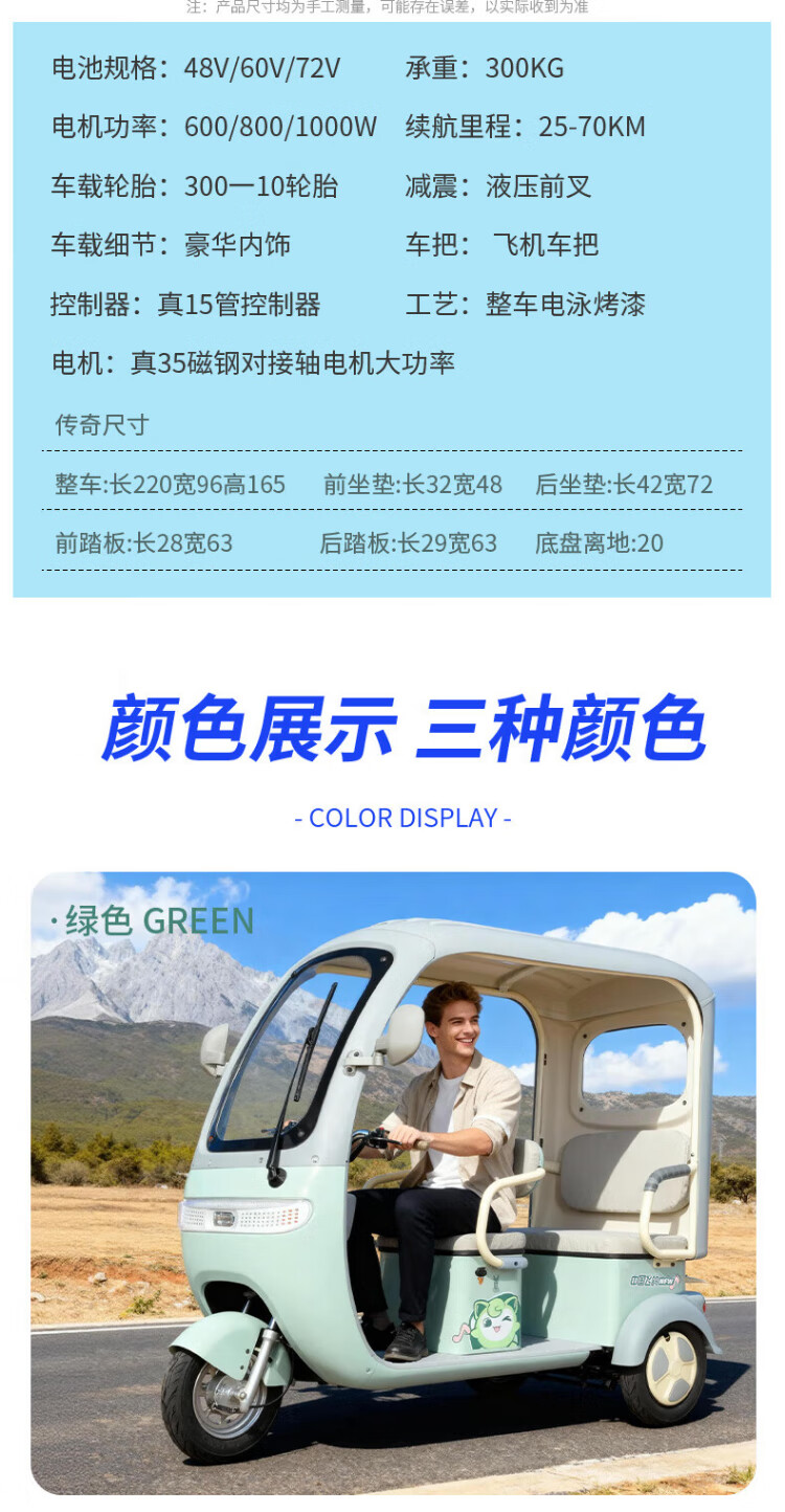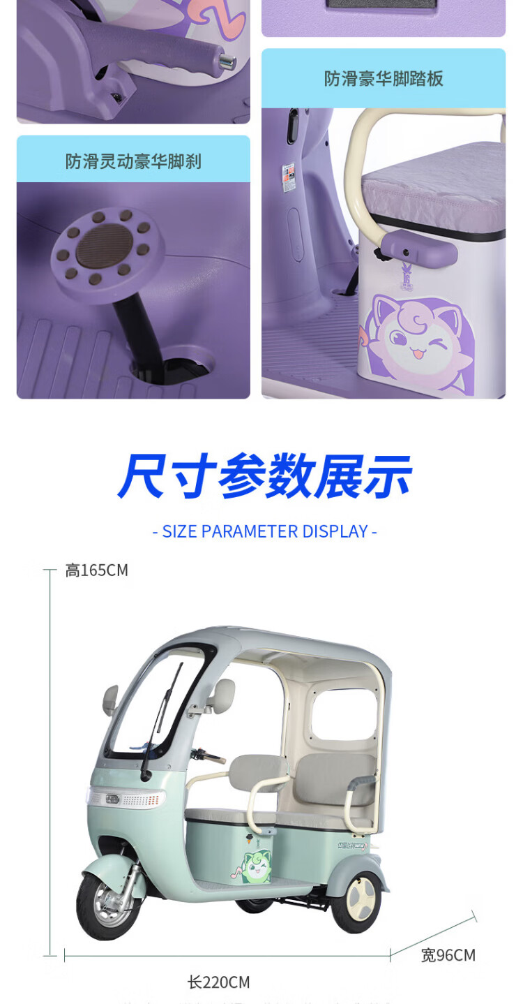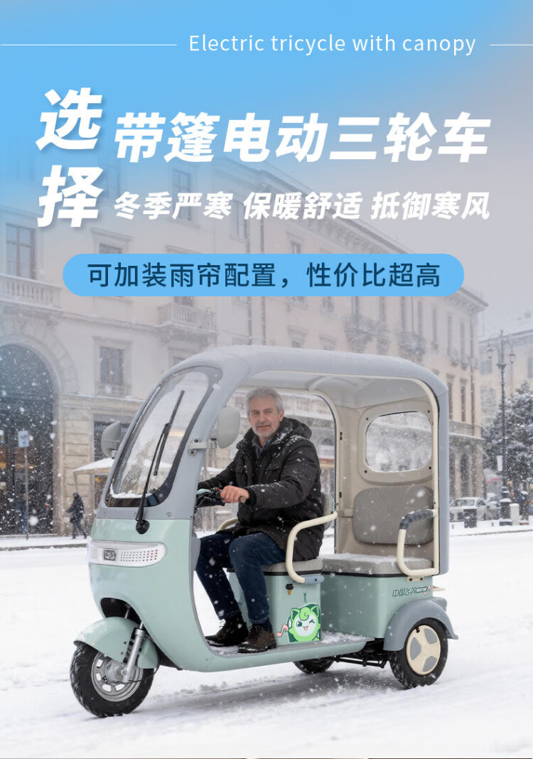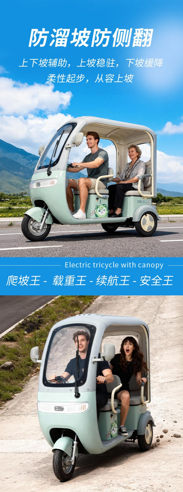 Flying Pigeon electric tricycle for the elderly, household electric tricycle for adults, small-sized, covered, all-in-one pick-up and drop-off for children Chaowei/Tianneng 600W60V24AH black gold about 120 miles