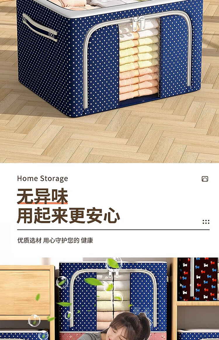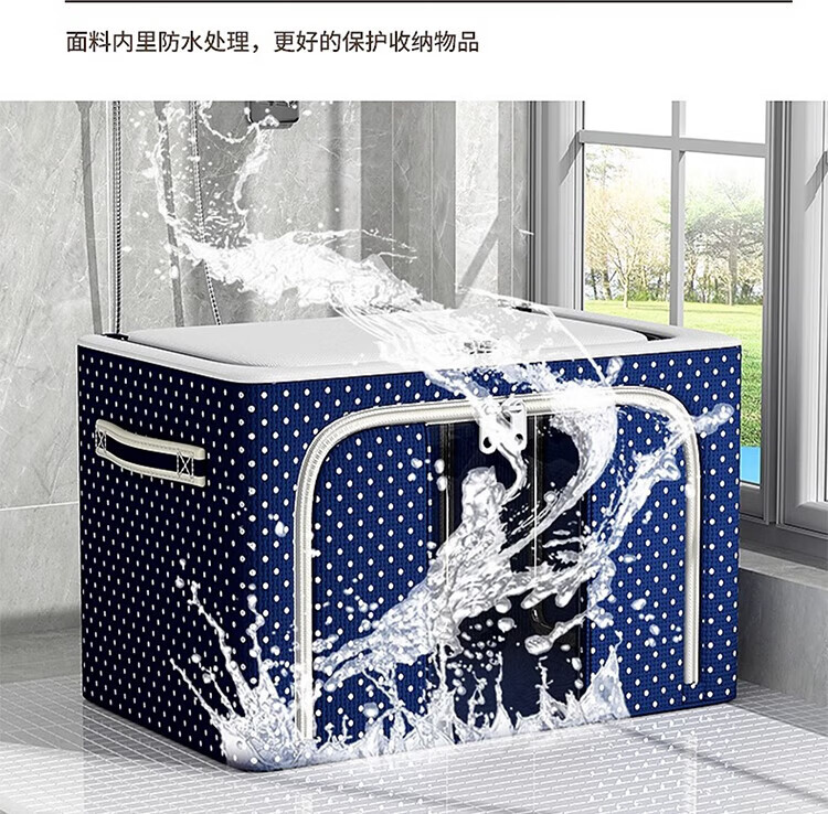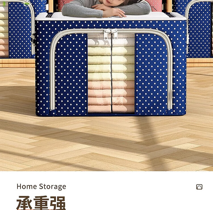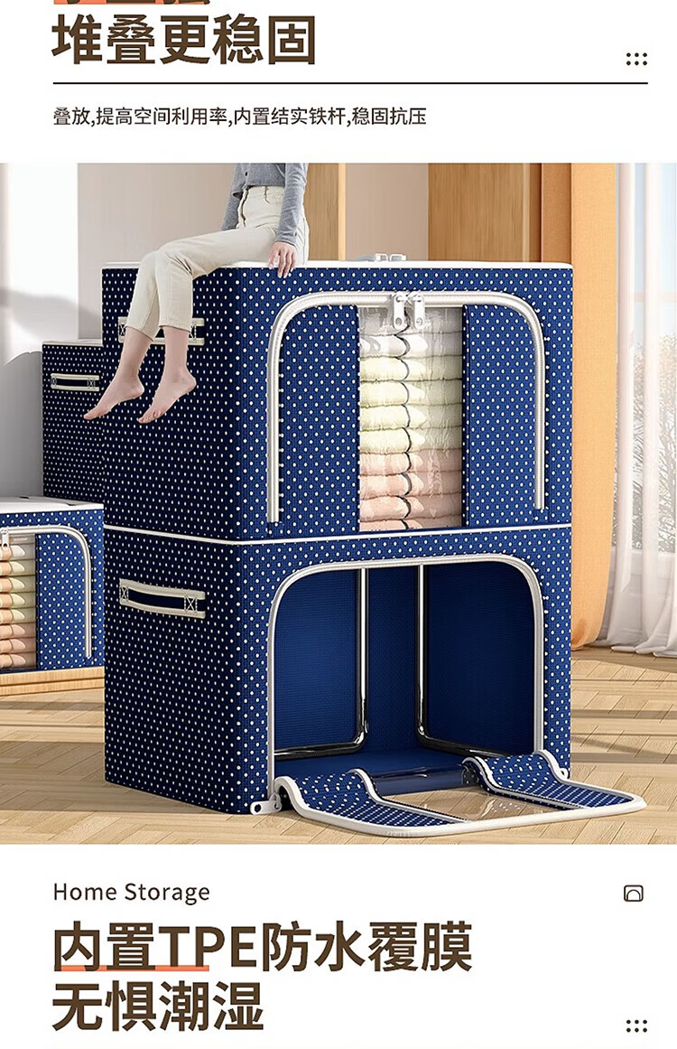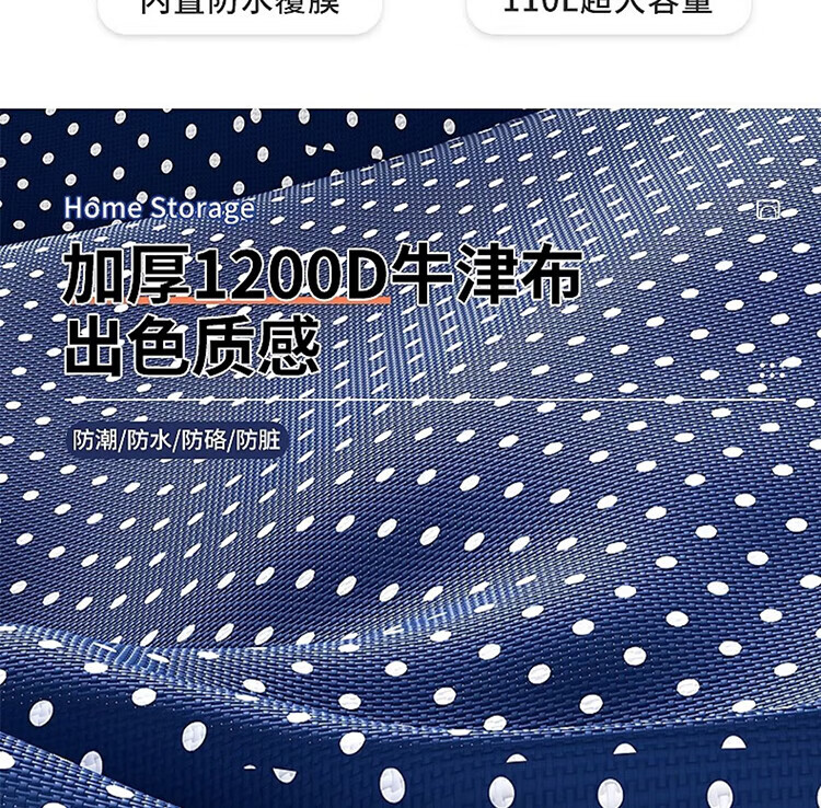 Oxford cloth storage box extra large storage box packing quilt clothes bag folding fabric large capacity storage box Blue Dot Point-66L-single pack