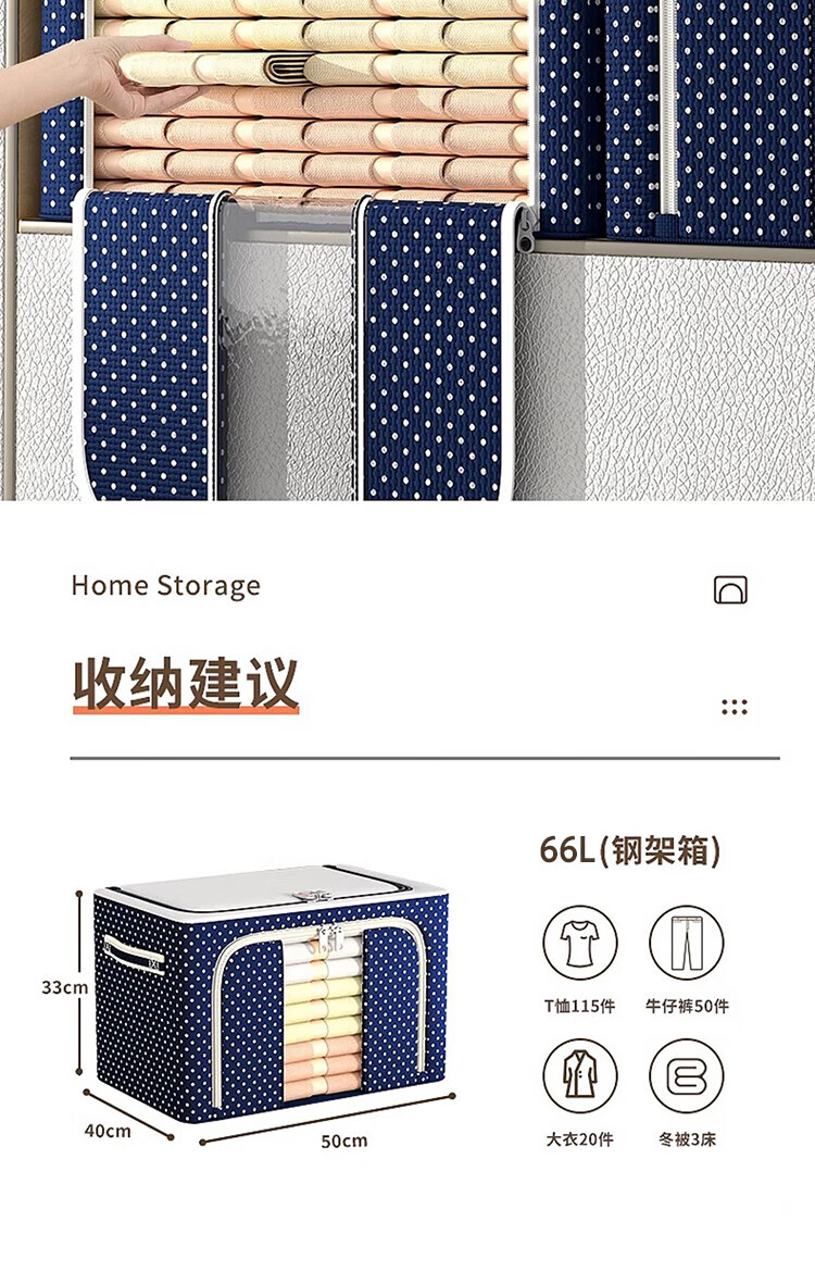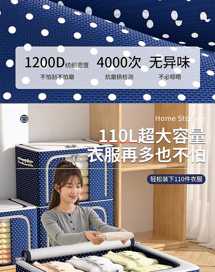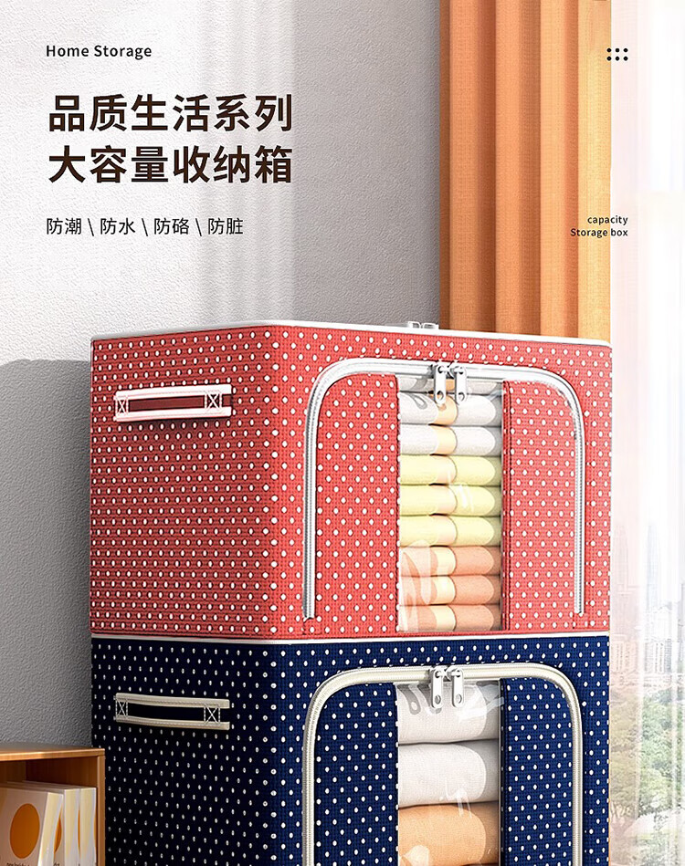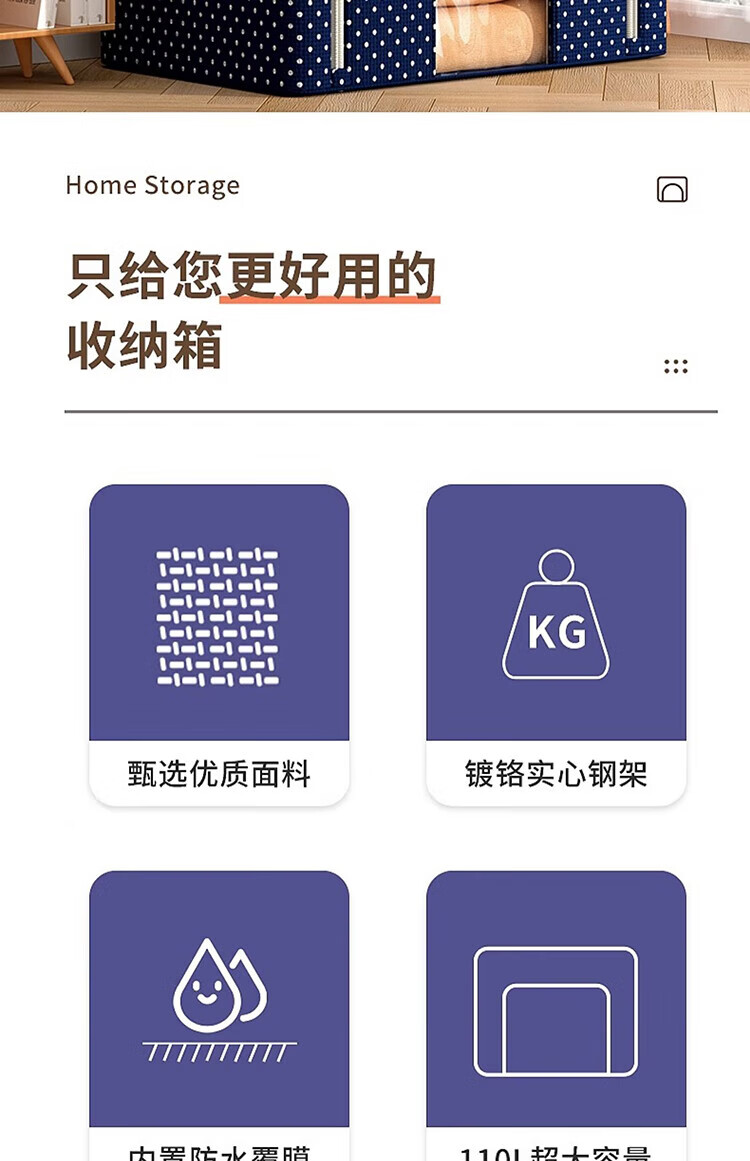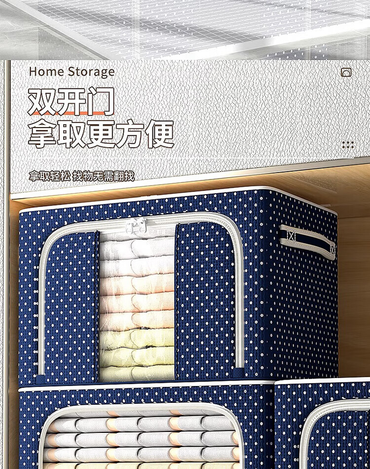 Oxford cloth storage box extra large storage box packing quilt clothes bag folding fabric large capacity storage box Blue Dot Point-66L-single pack