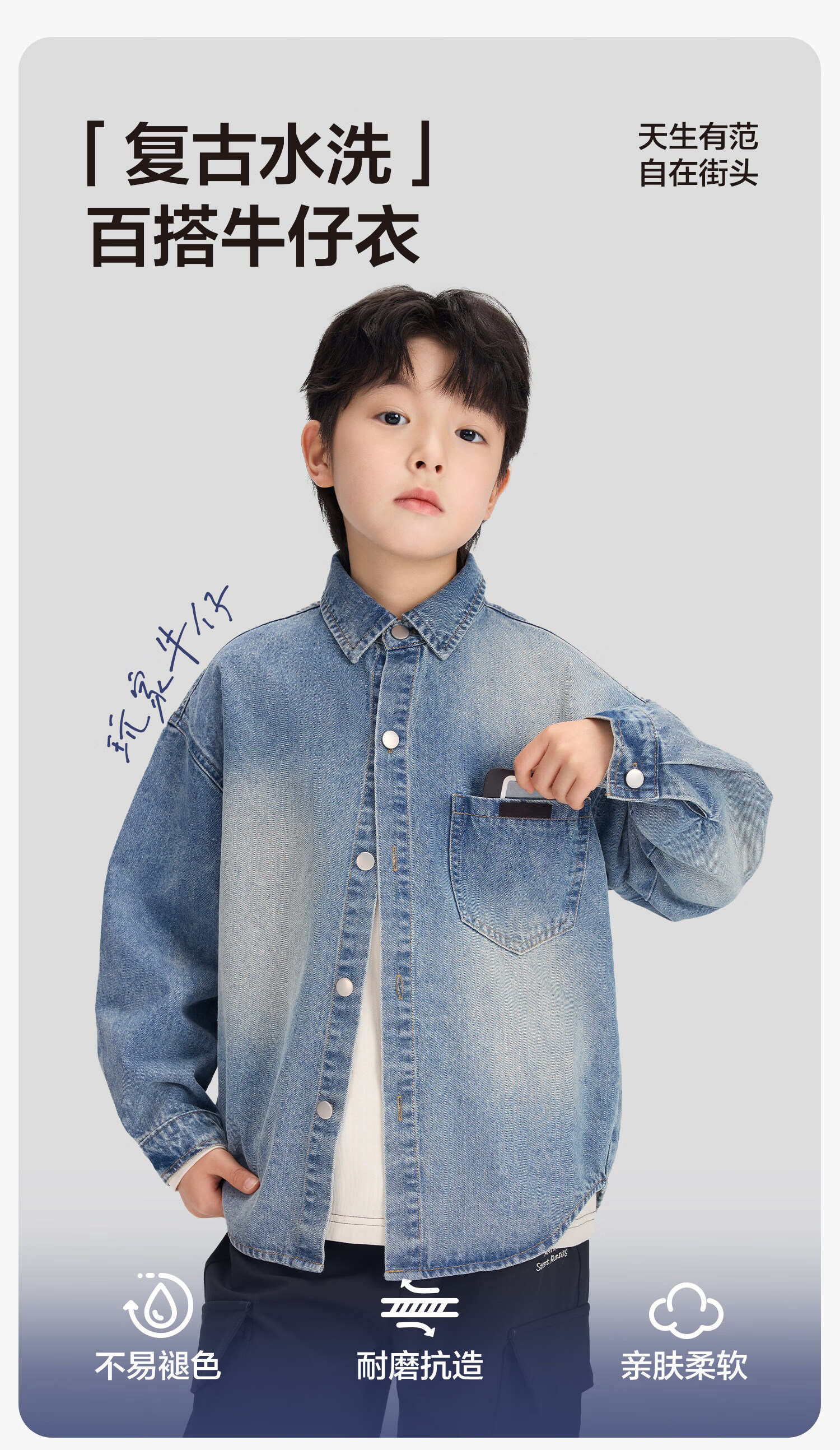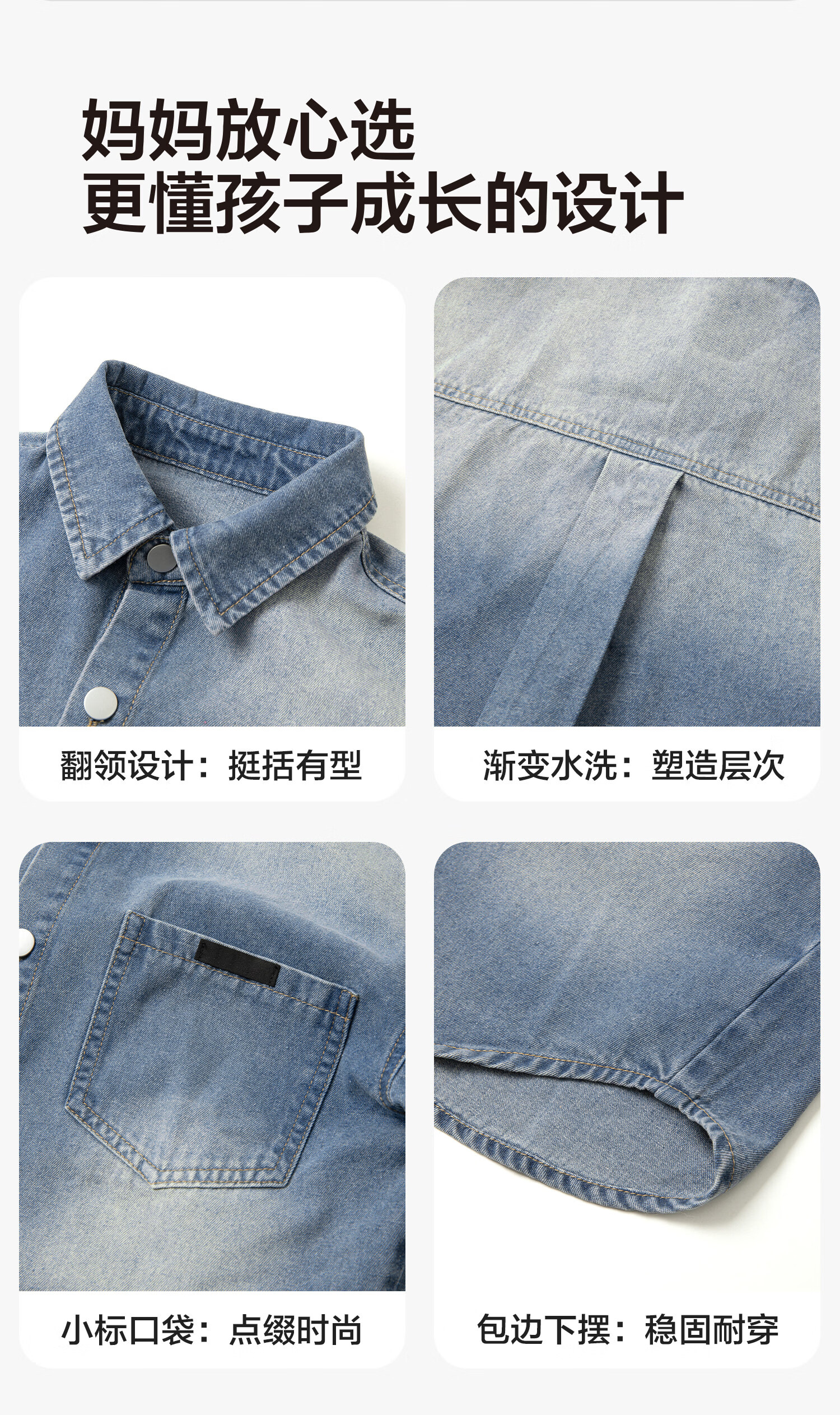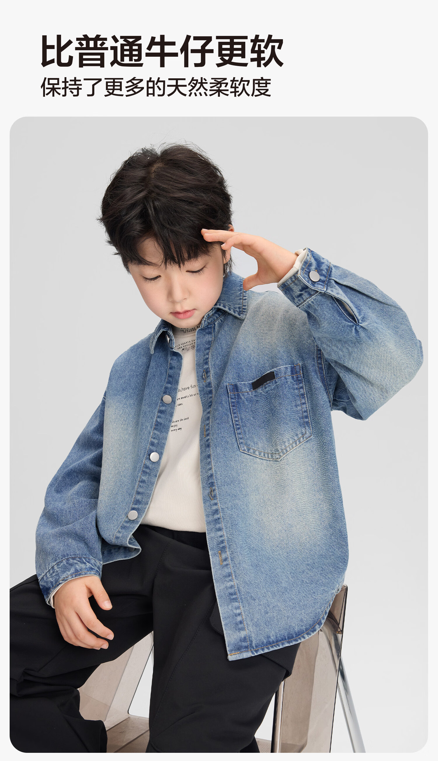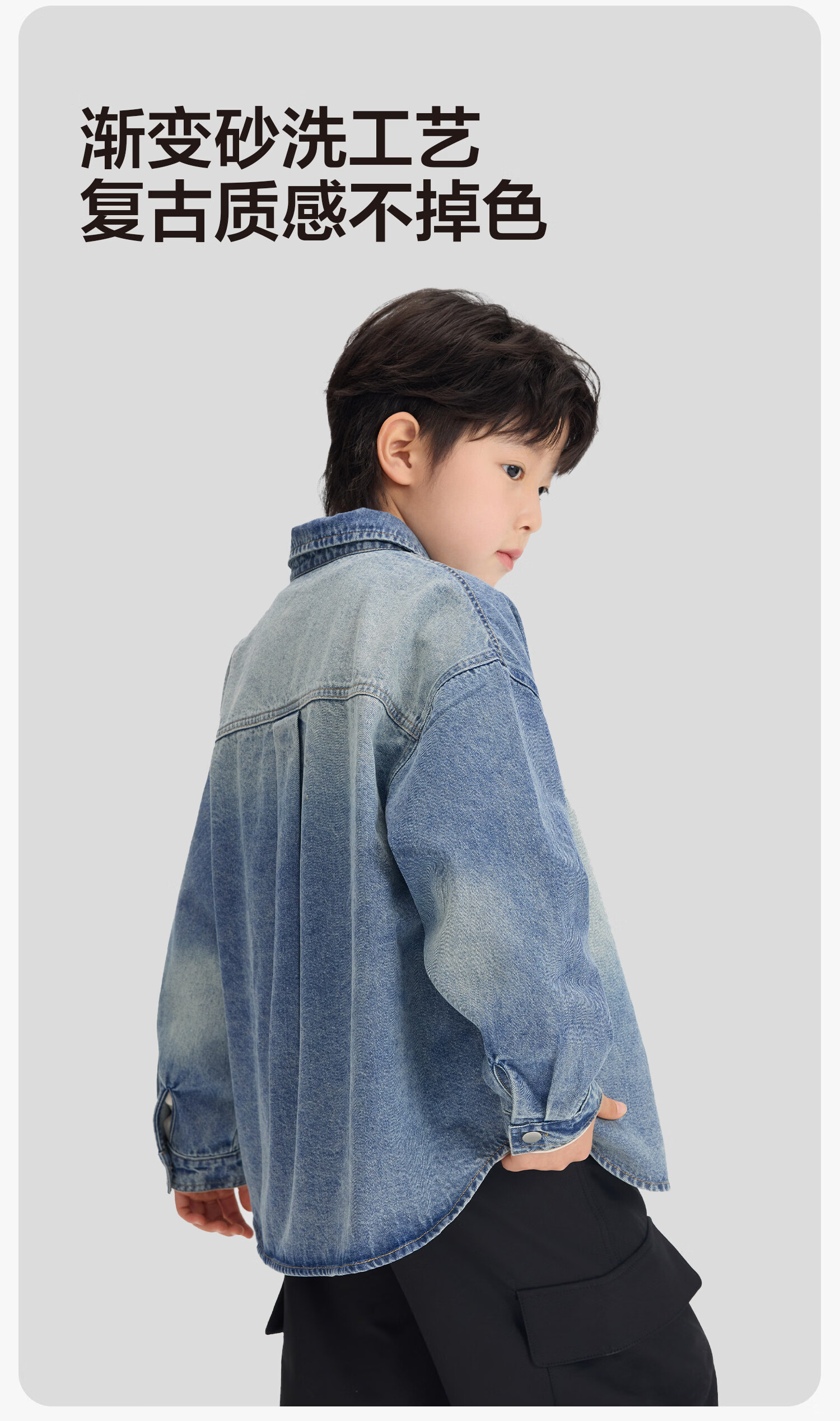 Zuoxi children's clothing boys' denim shirt long sleeve 2026 new children's shirt spring and autumn gradient western style boy layering denim color 160 cm
