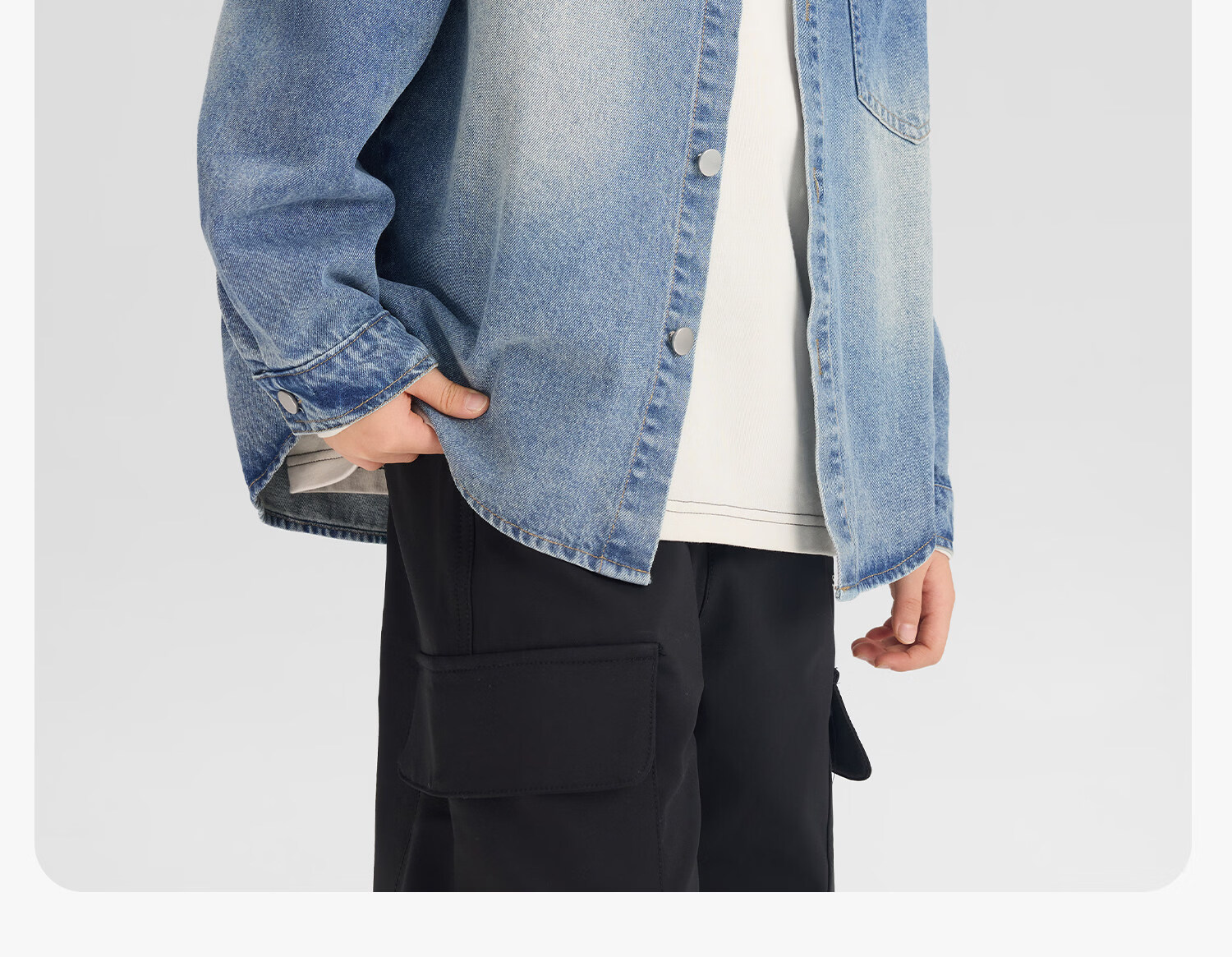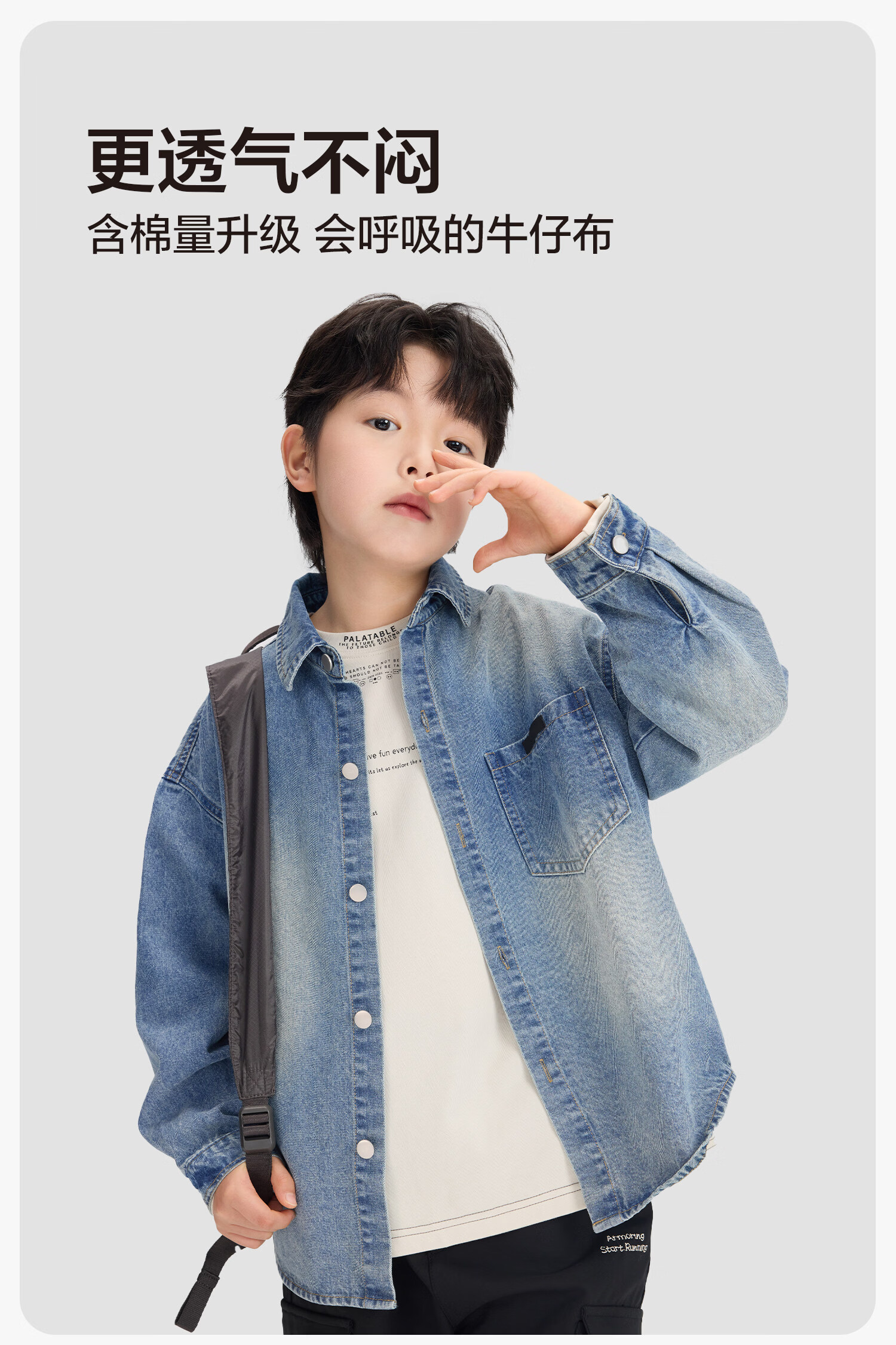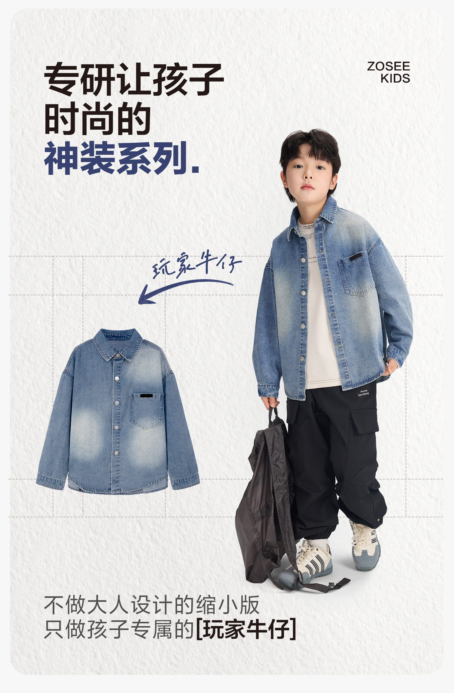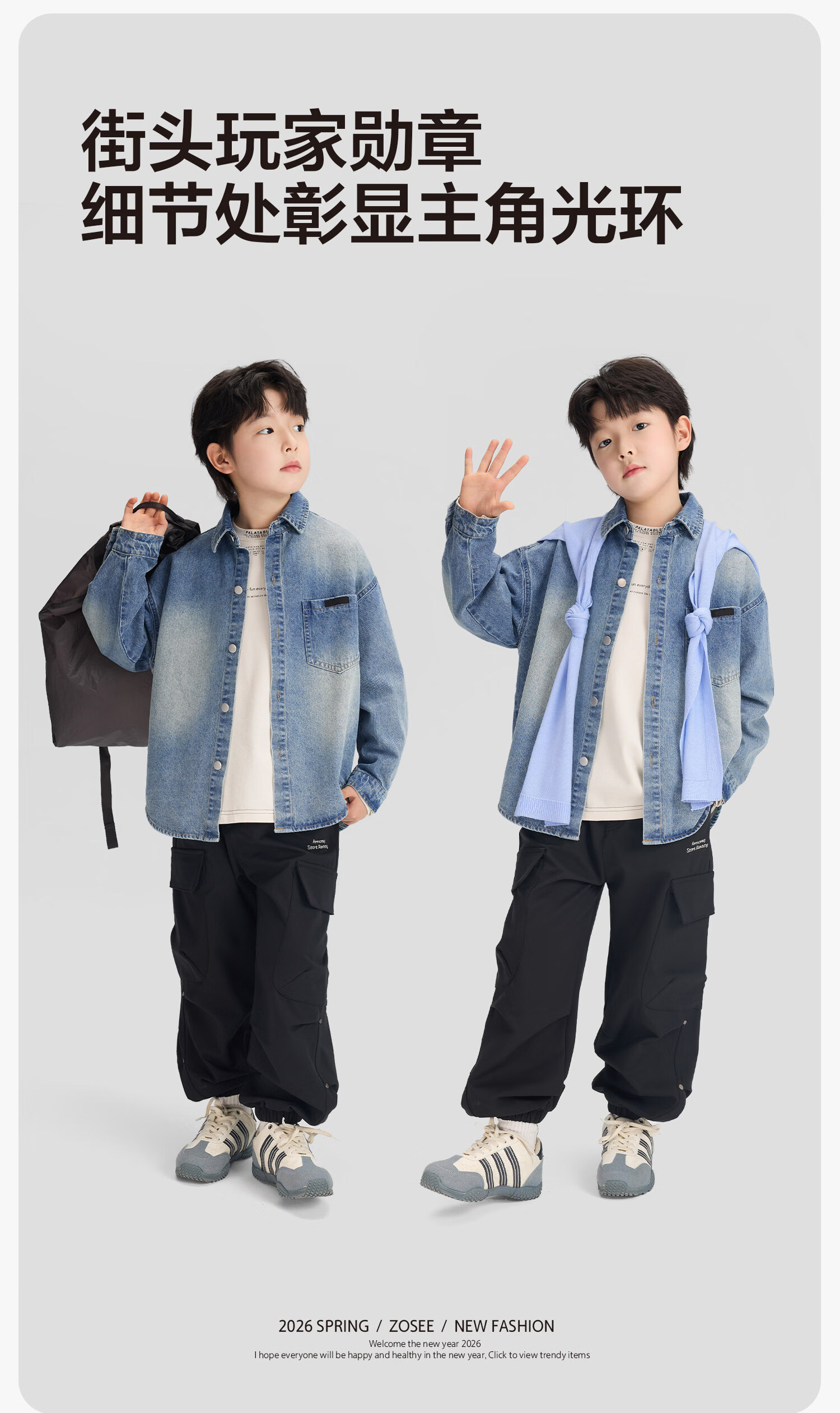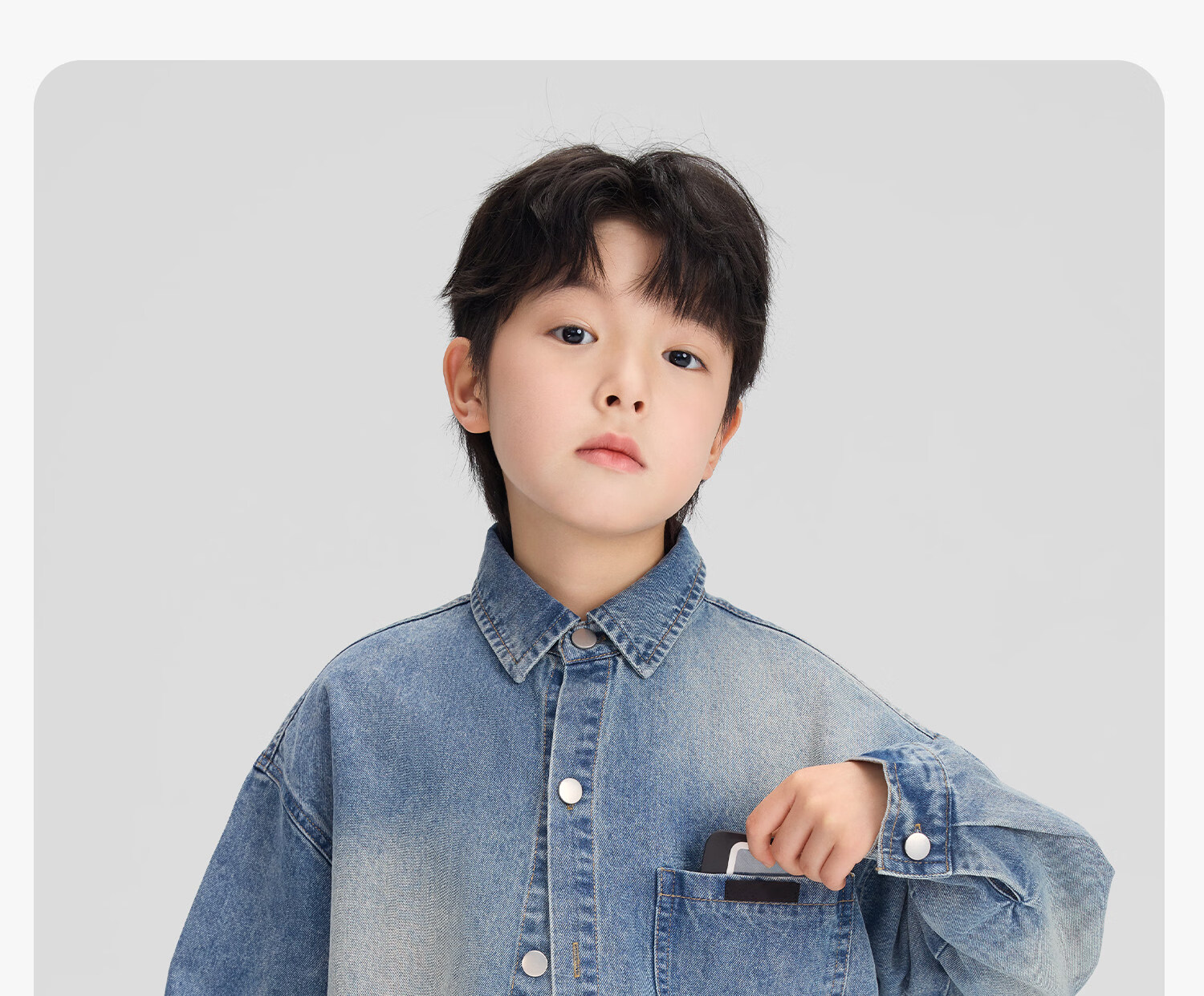 Zuoxi children's clothing boys' denim shirt long sleeve 2026 new children's shirt spring and autumn gradient western style boy layering denim color 160 cm