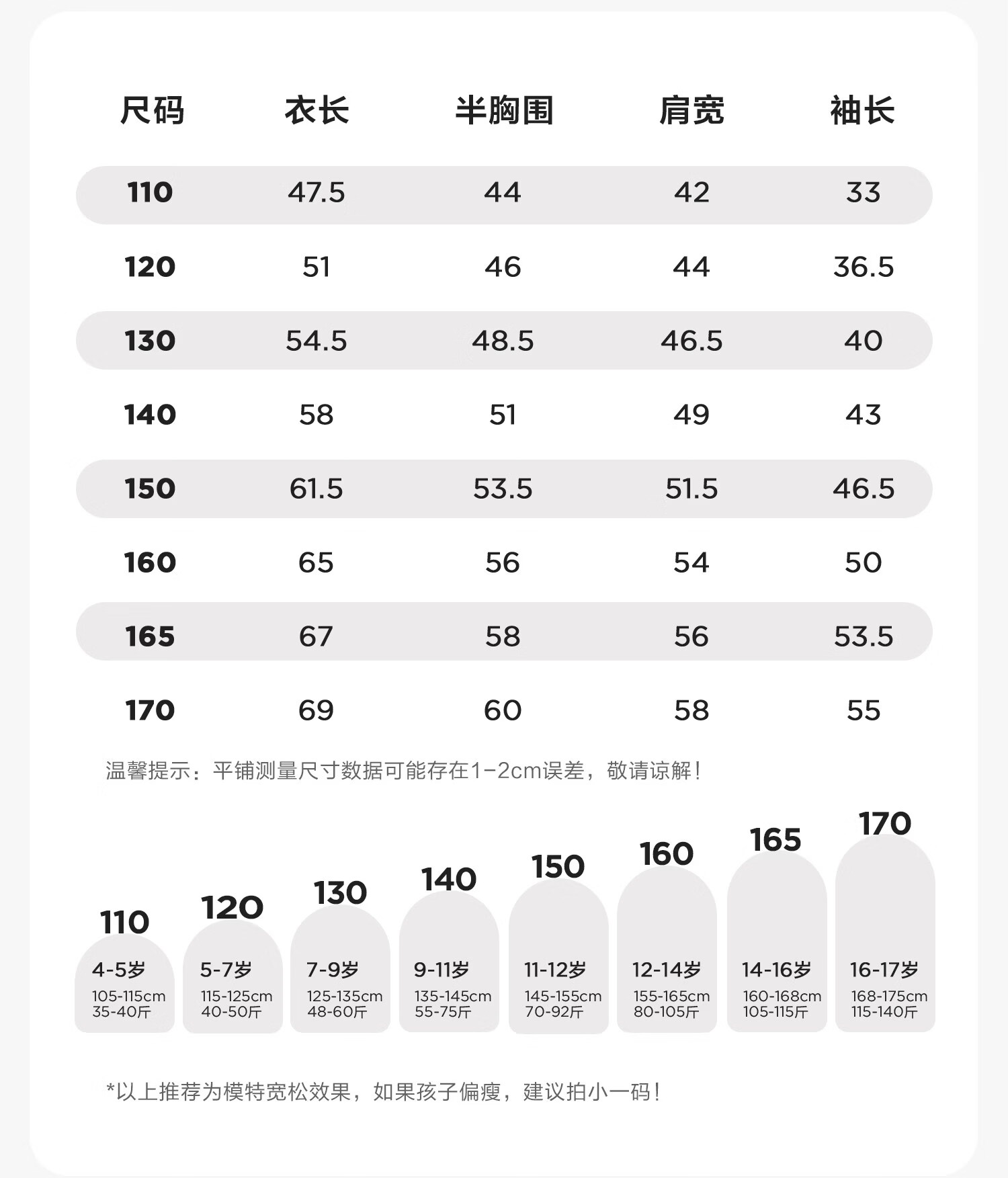 China (cm) 160-165/84-86 165-170 / 88-90 167-172 / 92-96 168-173 / 98-102 170-176 / 106-110