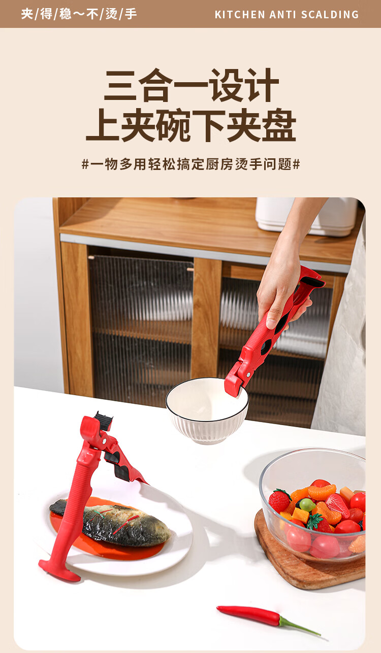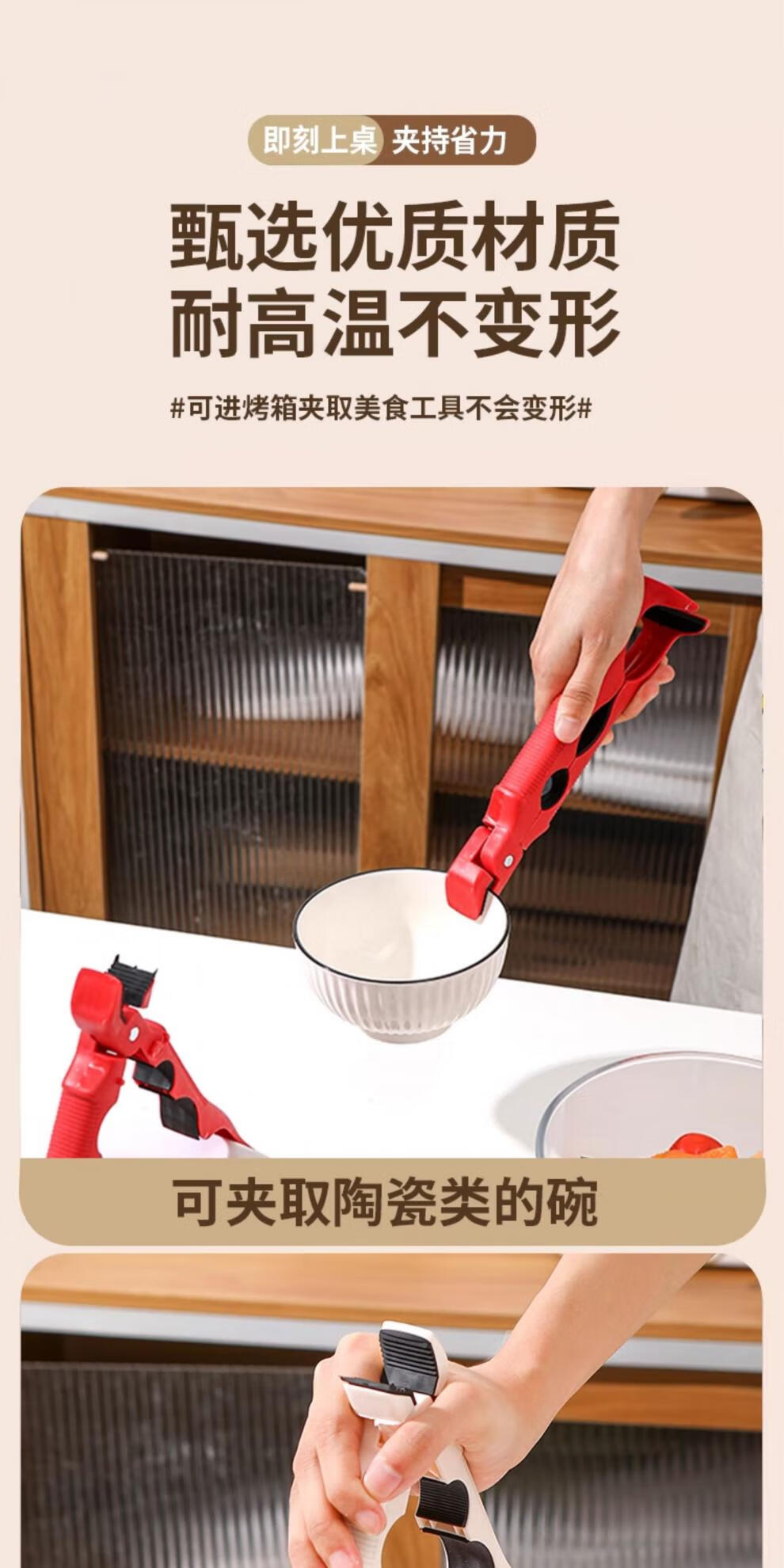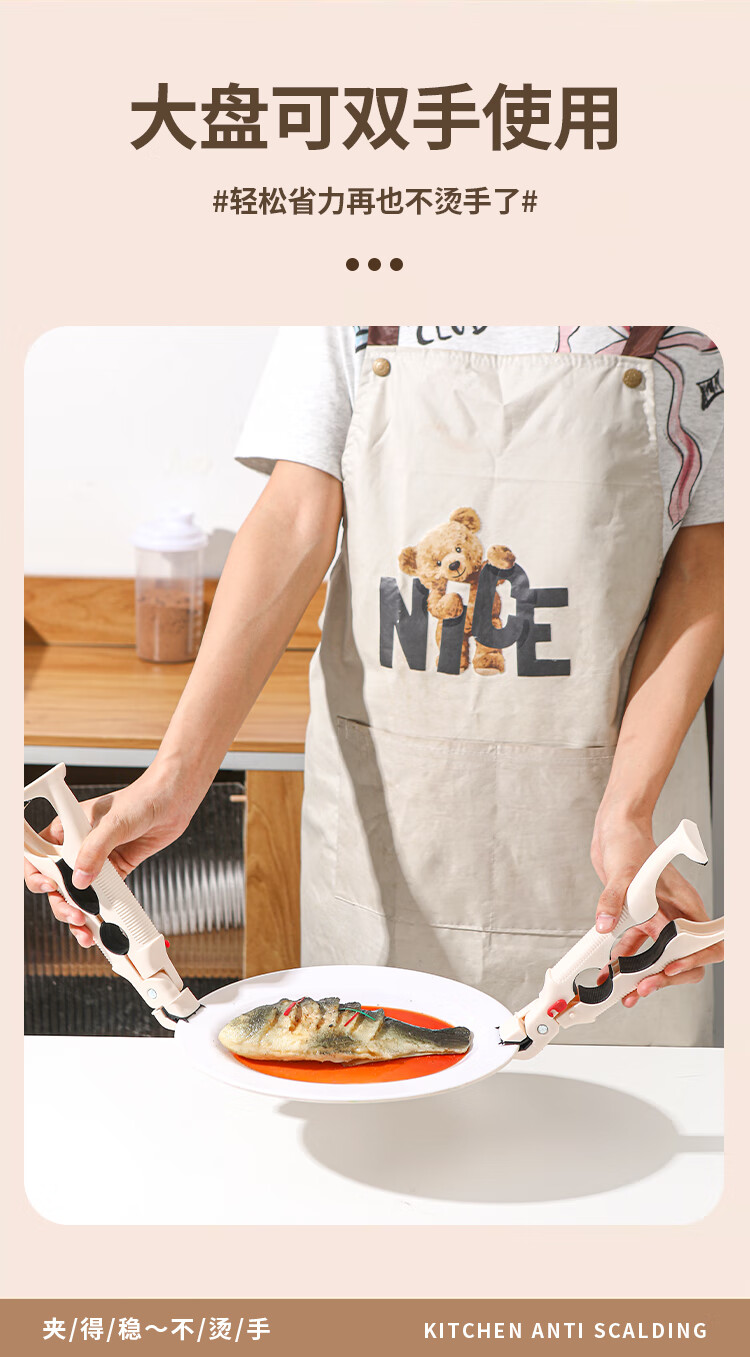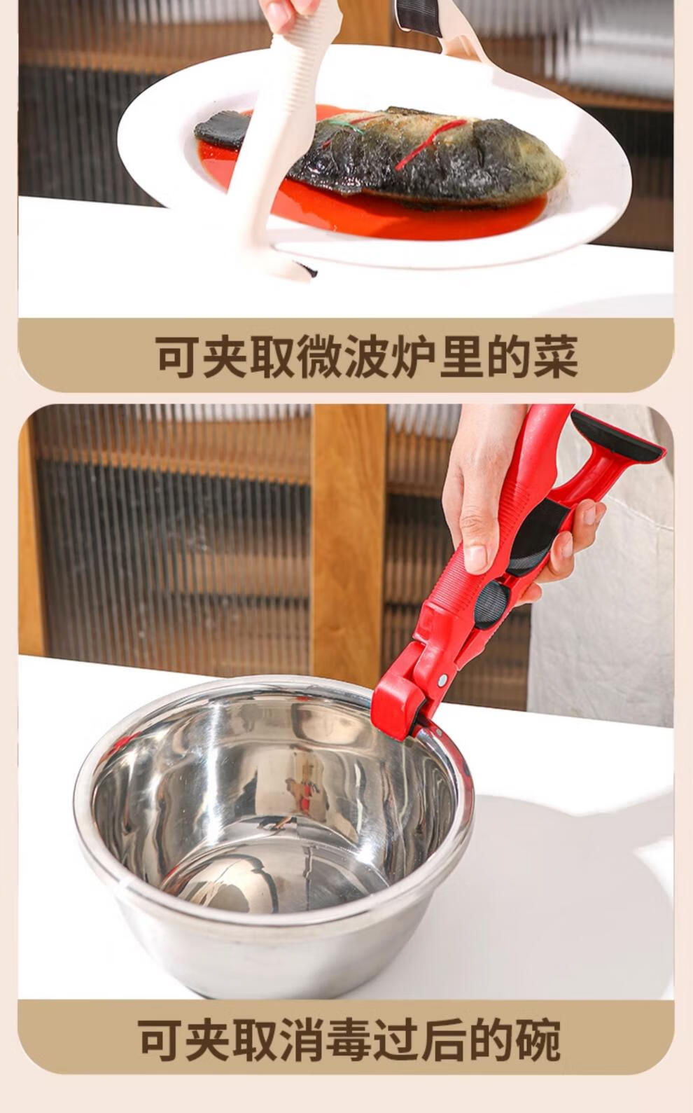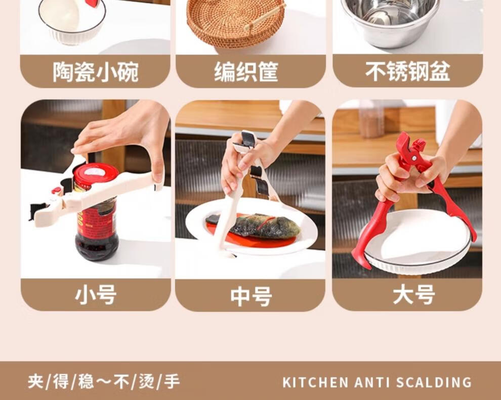 Fat Donglai's same three-in-one anti-scalding bowl clamp, non-slip kitchen clamp, plate clamp, steamed vegetable insulated tray, three-in-one anti-scalding clamp__milk white 1 pack__clamp bowl_clamp tray_open lid