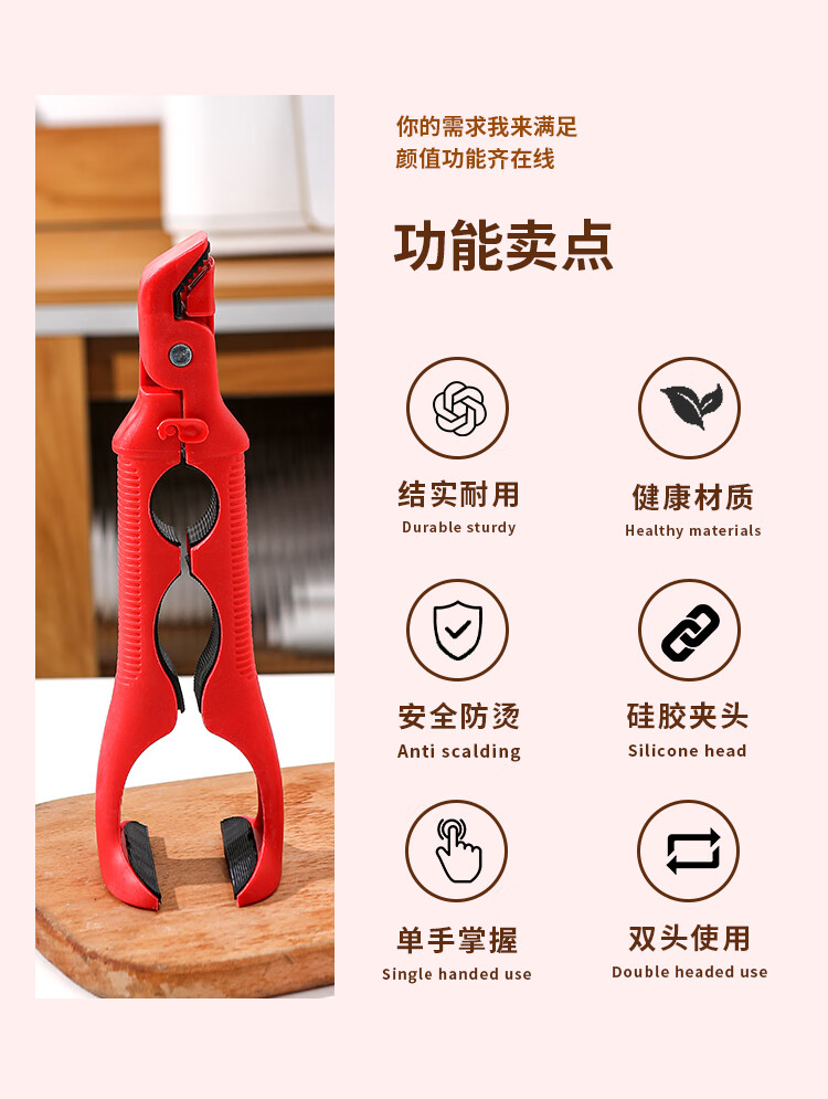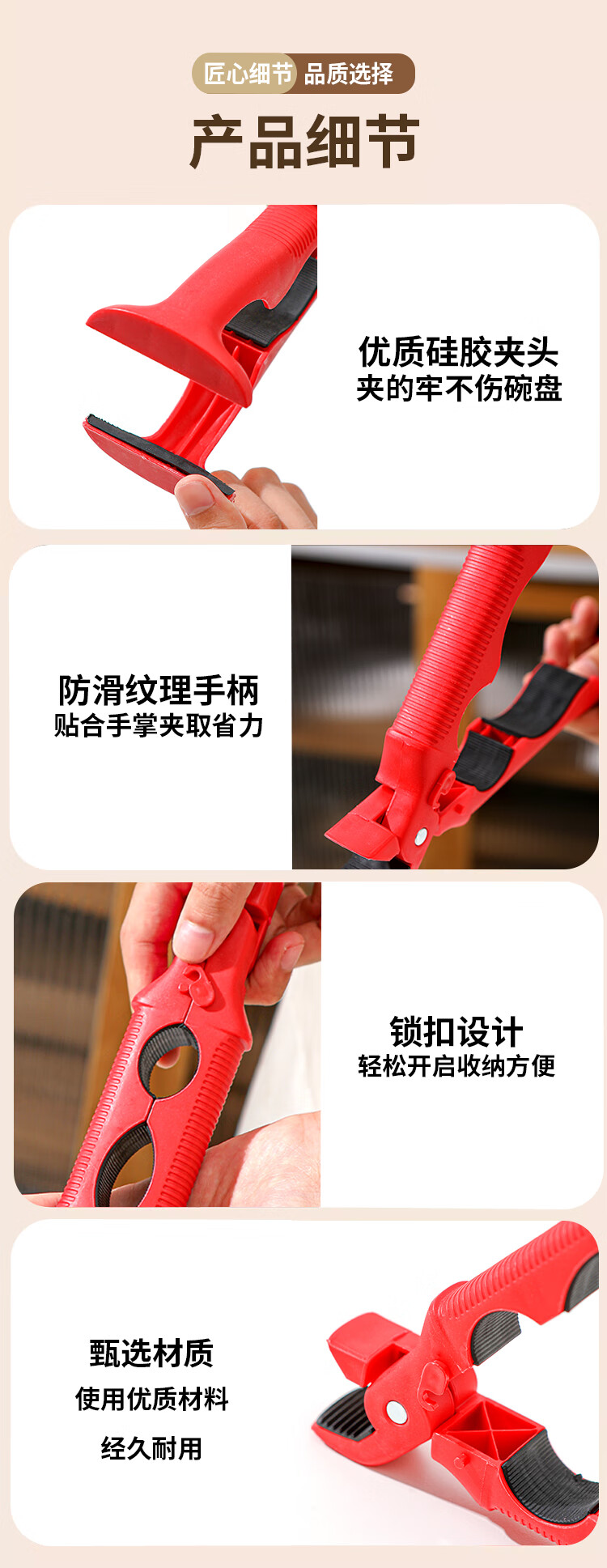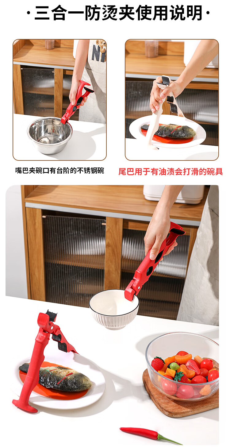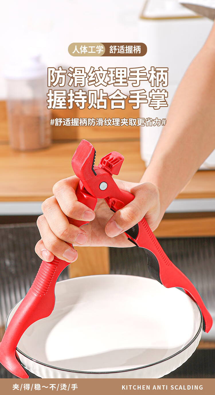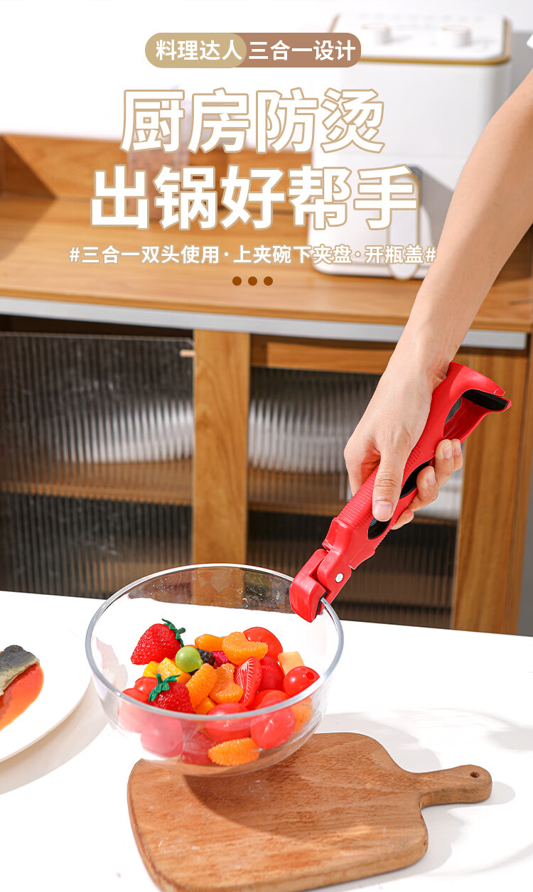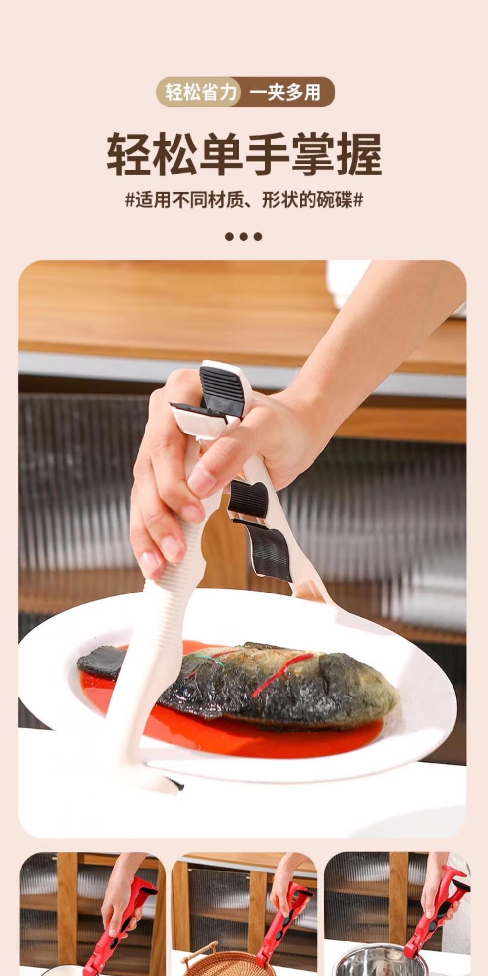 Fat Donglai's same three-in-one anti-scalding bowl clamp, non-slip kitchen clamp, plate clamp, steamed vegetable insulated tray, three-in-one anti-scalding clamp__milk white 1 pack__clamp bowl_clamp tray_open lid