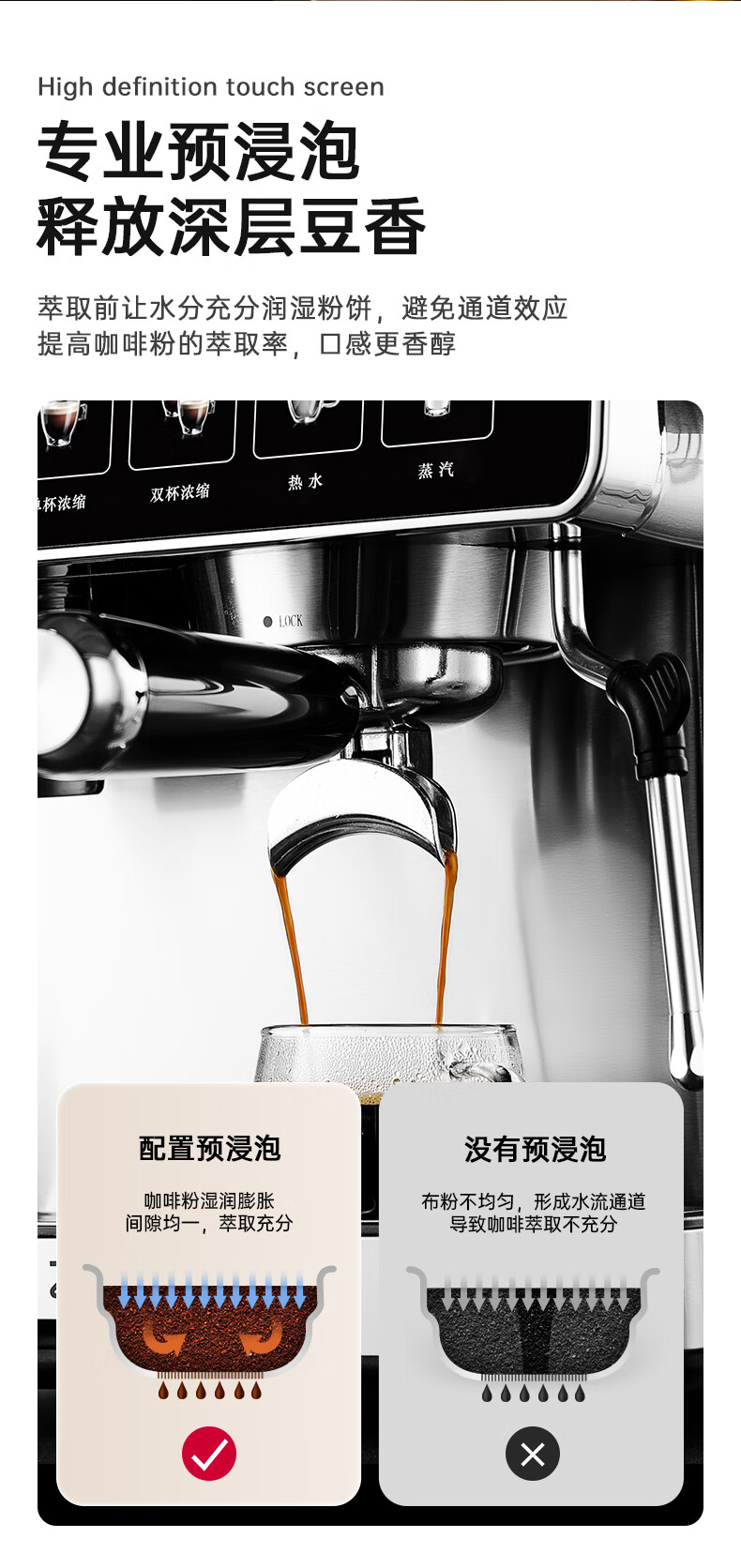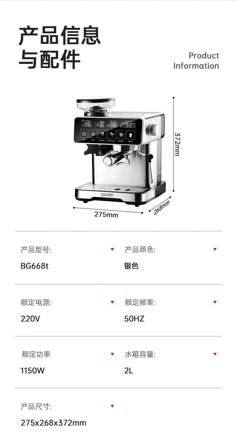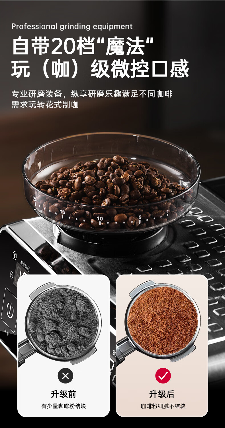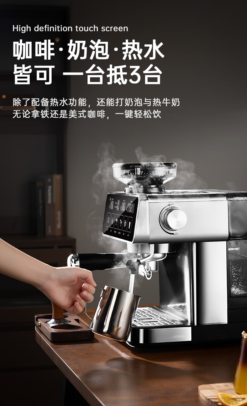 ZZUOM coffee machine semi-automatic grinding integrated small fully automatic household coffee grinder Italian American espresso 20Ba high pressure extraction pre-soaking strong steam adjustable milk frothing color screen one-button intelligent extraction 20Bar/grinding integrated