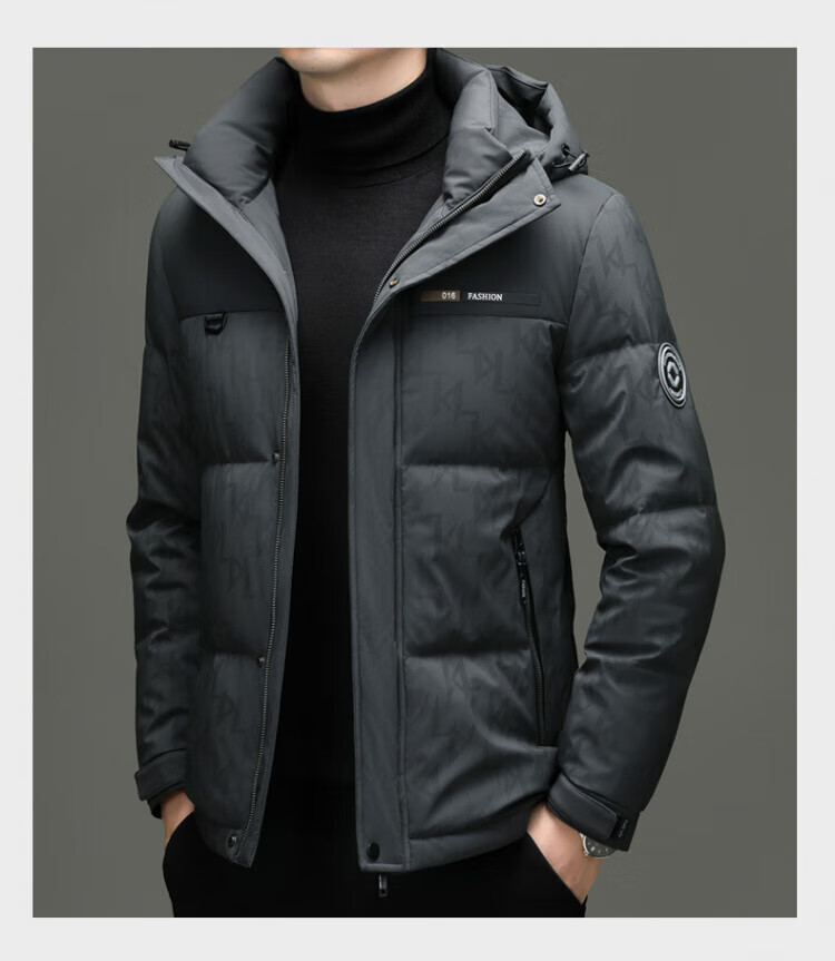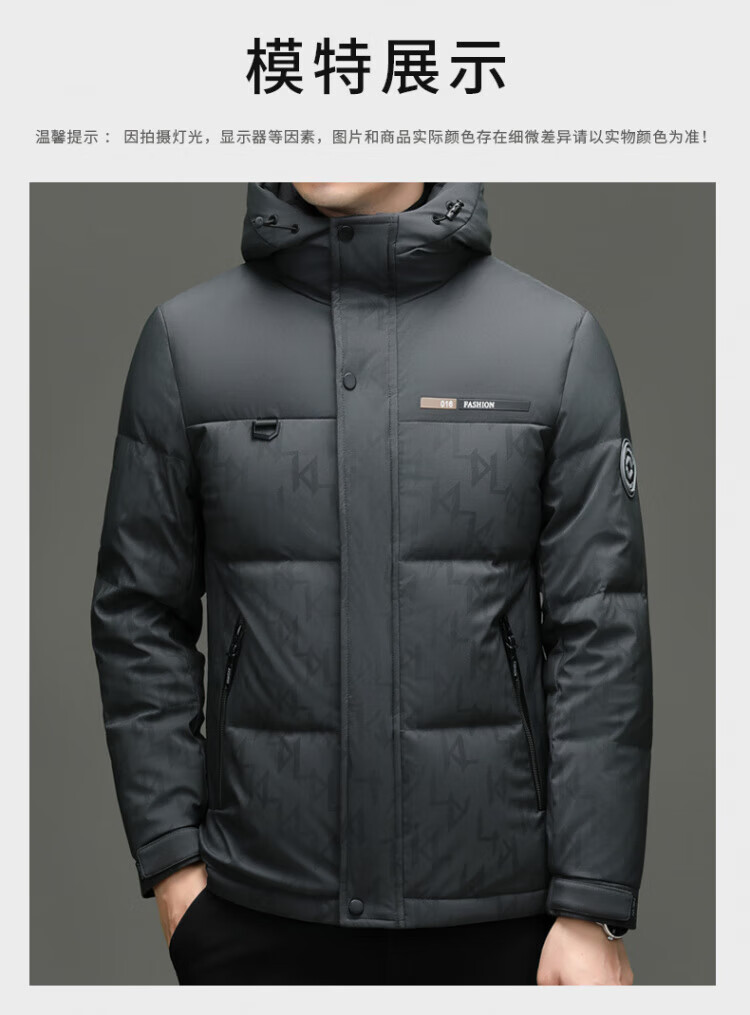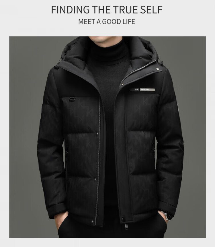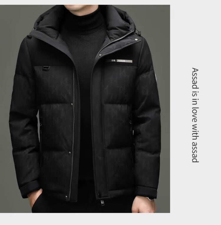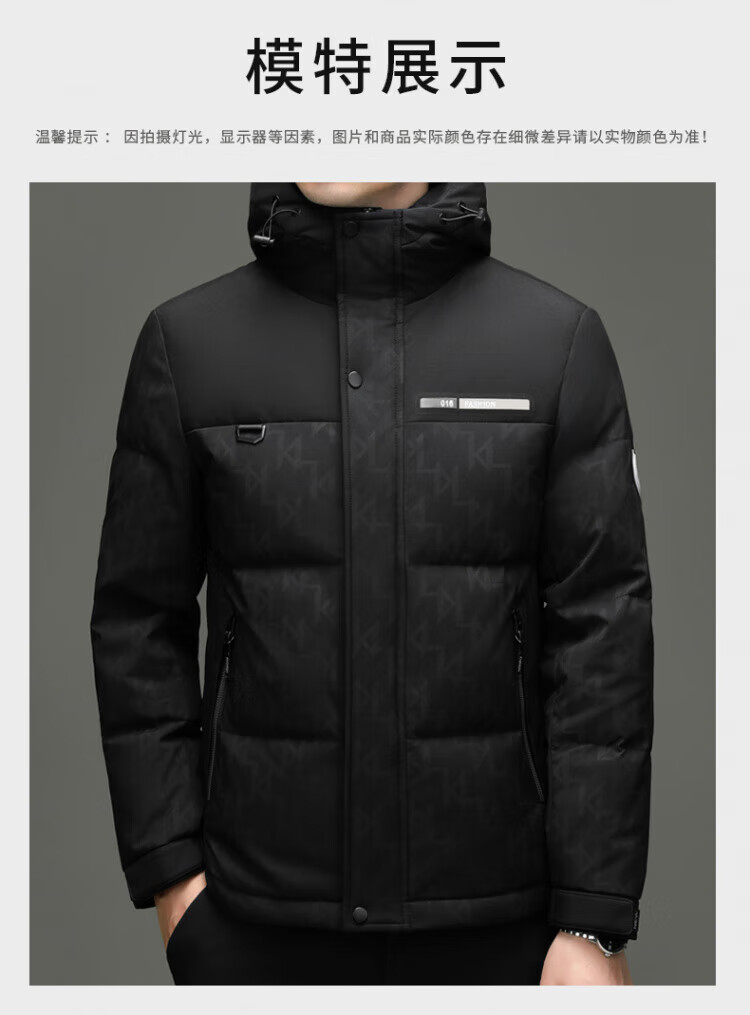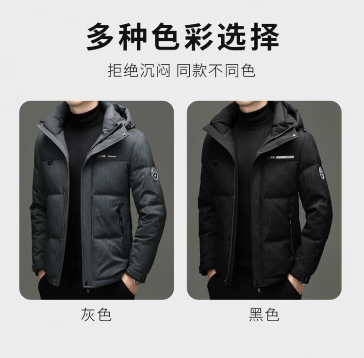 鸭鸭90鸭绒羽绒服男士冬装2025新款时尚连帽冬季加厚保暖商务休闲外套 黑色 XL 建议体重【135-150斤】