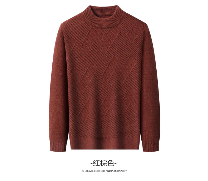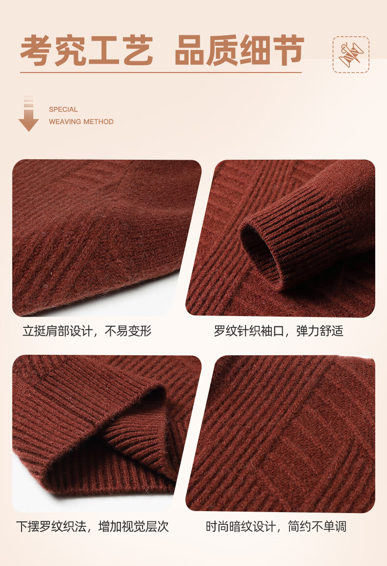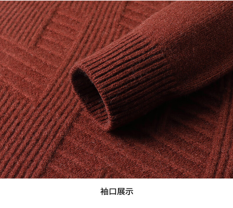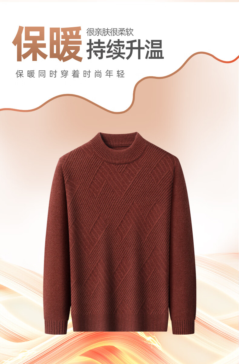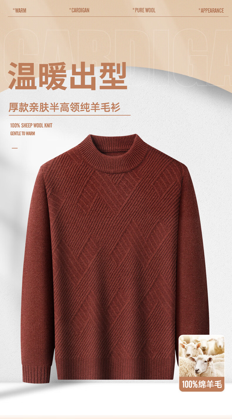 Hengyuanxiang heavy 590g thick half turtleneck pure wool sweater men's autumn and winter new simple versatile warm sweater red brown L /175