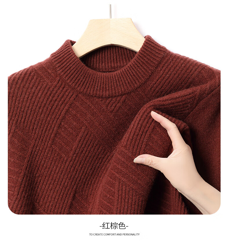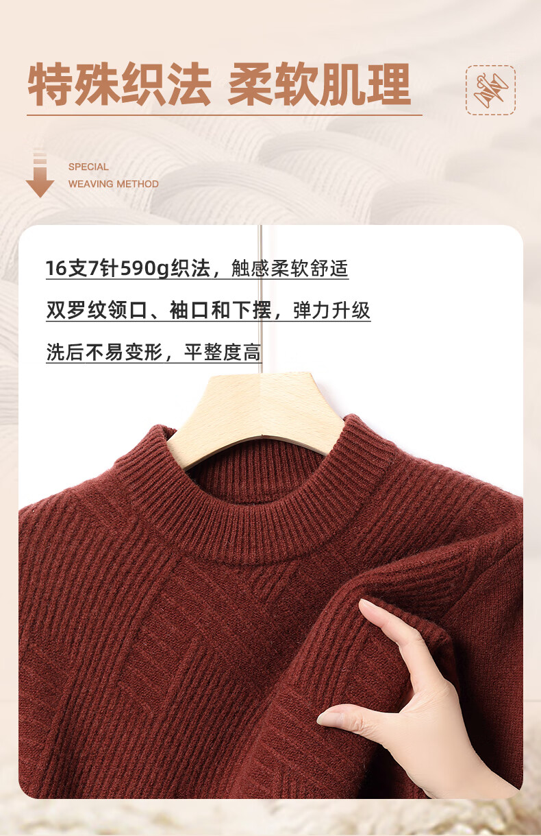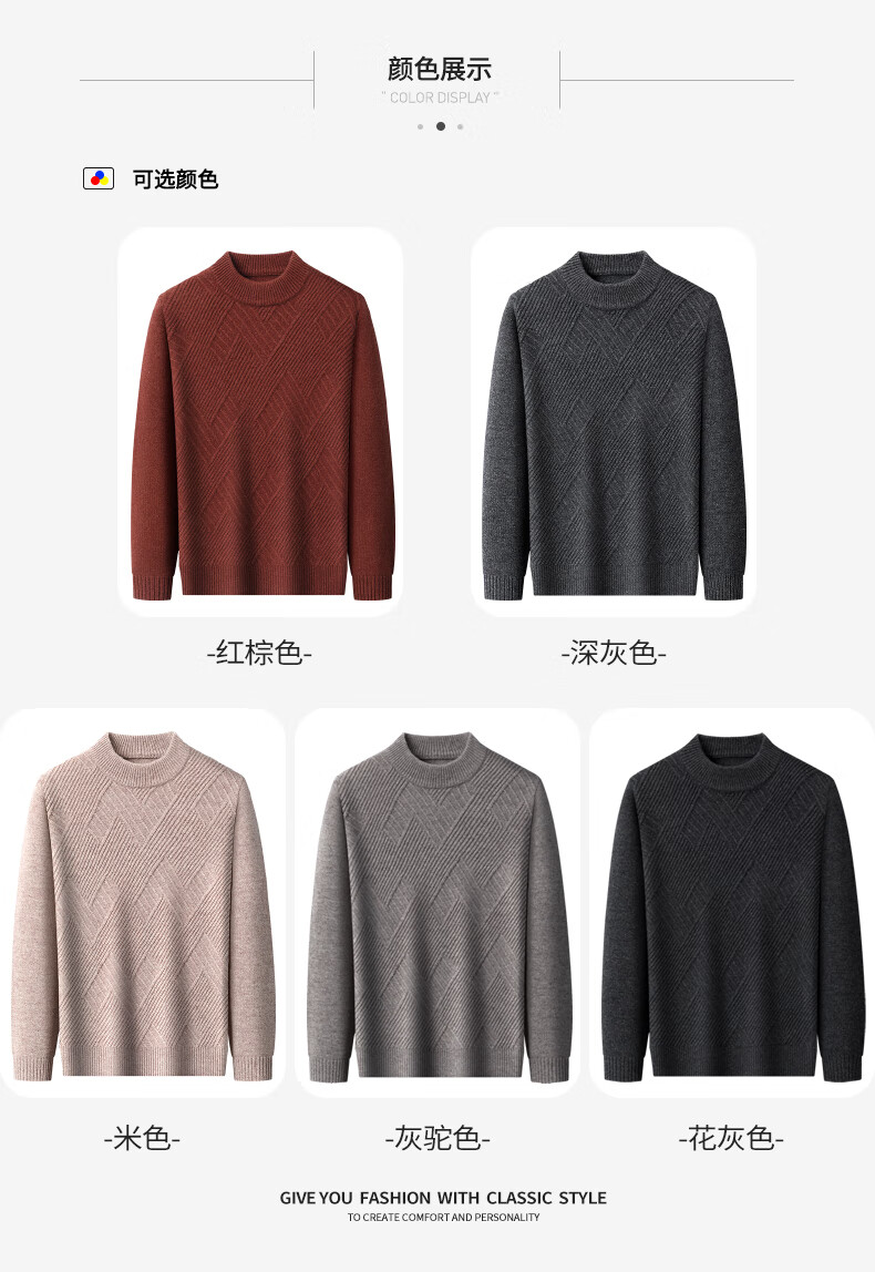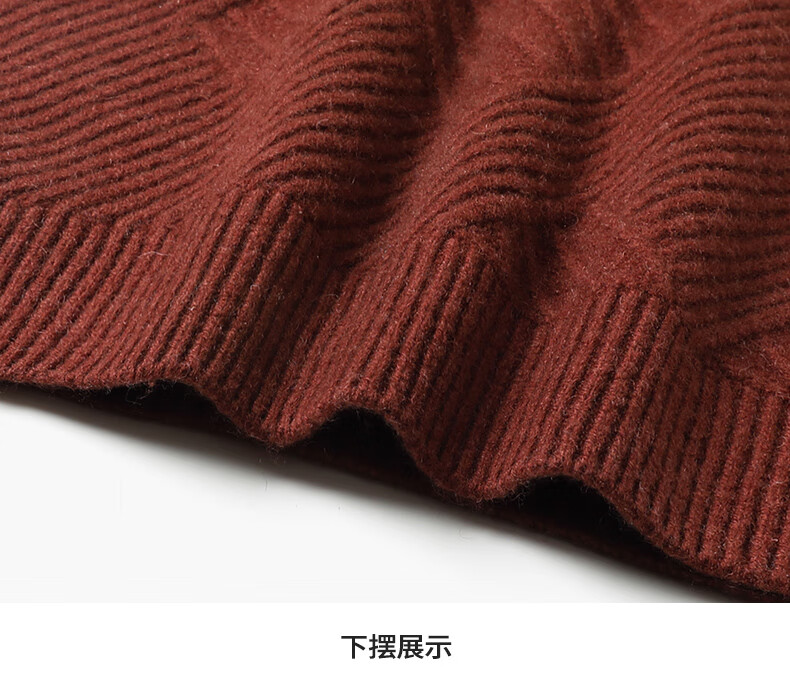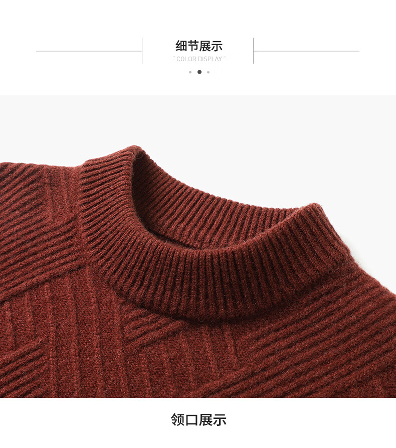 Hengyuanxiang heavy 590g thick half turtleneck pure wool sweater men's autumn and winter new simple versatile warm sweater red brown L /175