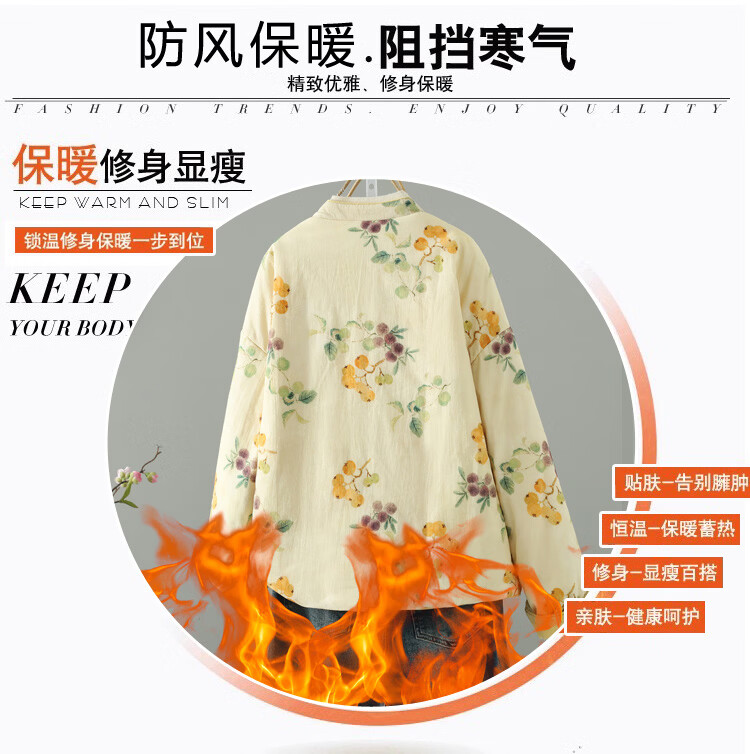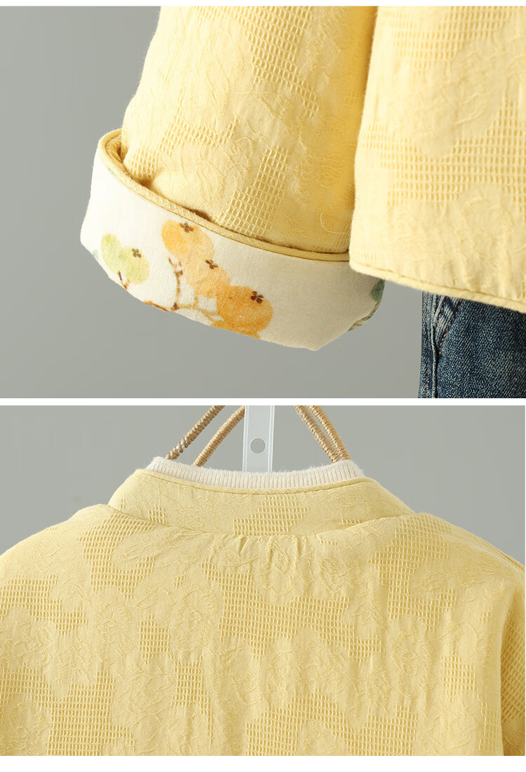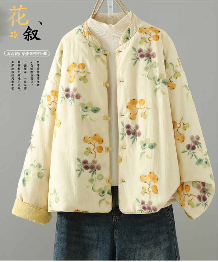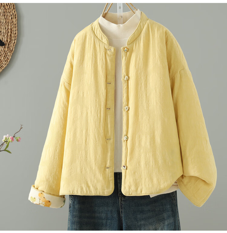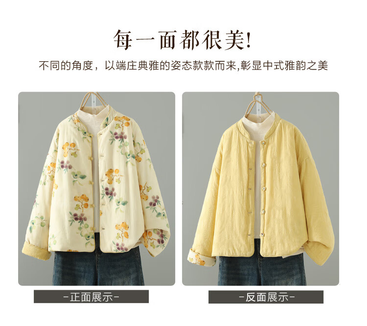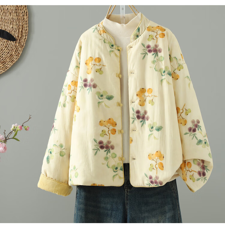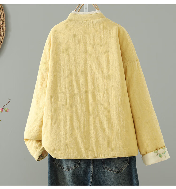 Woodpecker double-sided Chinese-style printed quilted jacket for women in winter, Western-style improved Tang suit, stand-up collar, lining, cotton padded jacket, yellow L 90-120Jin Jin equals 0.5 kg