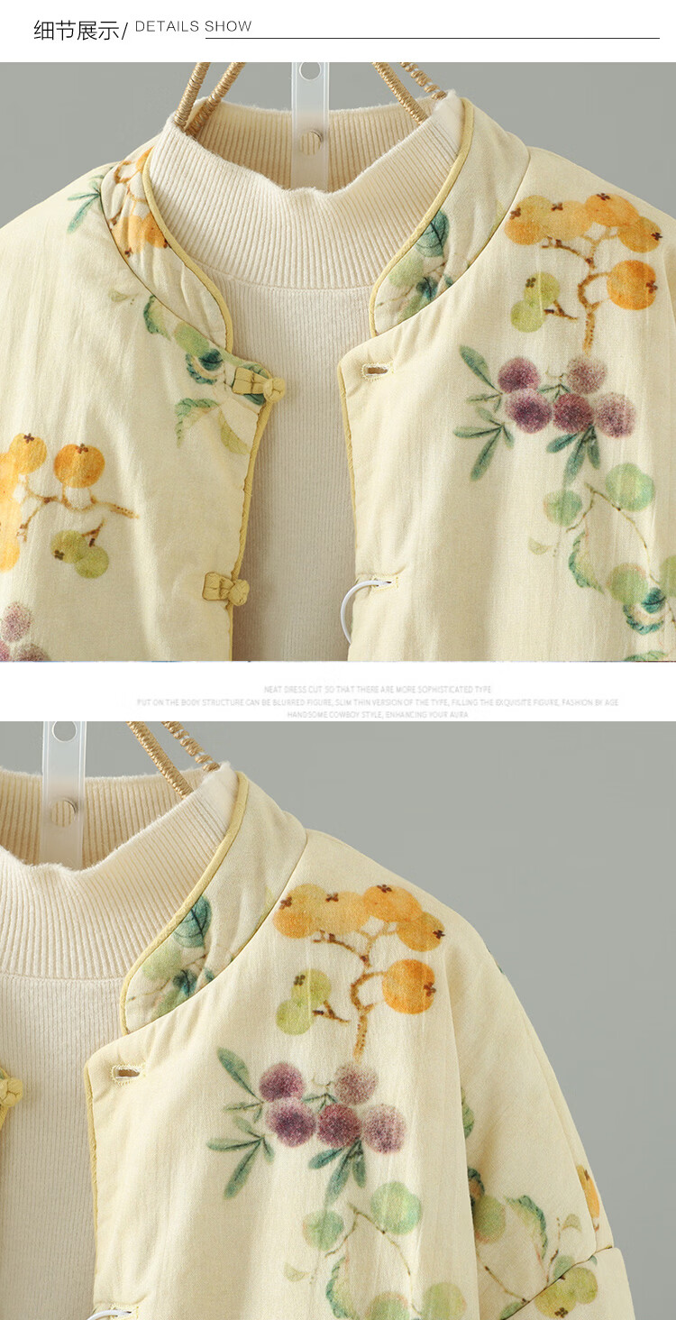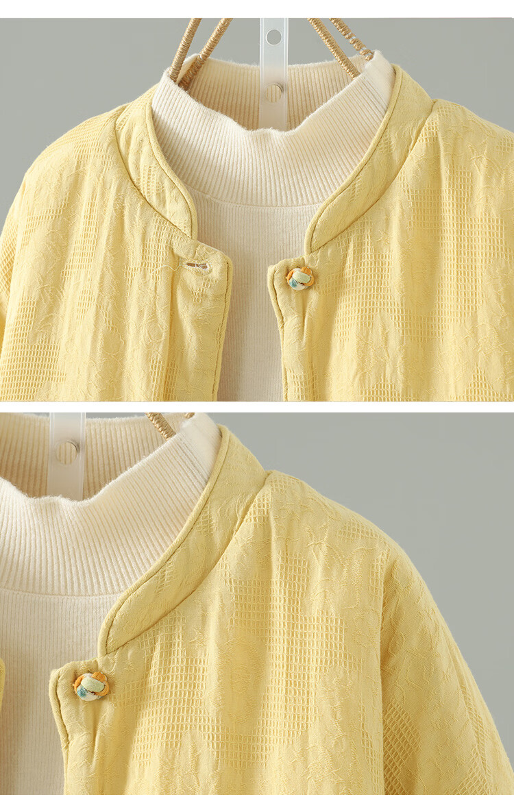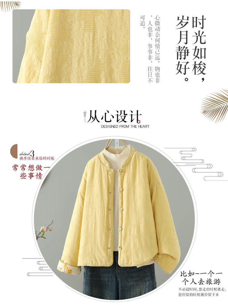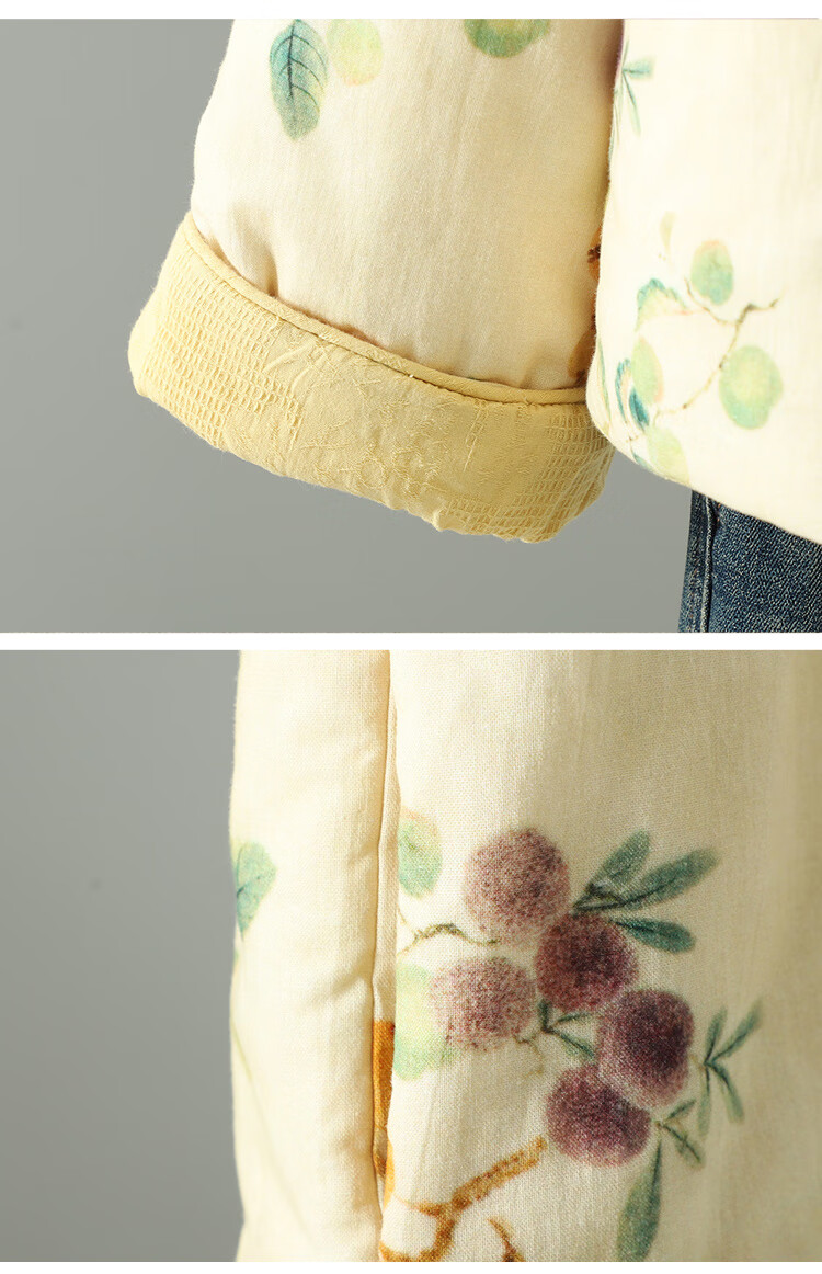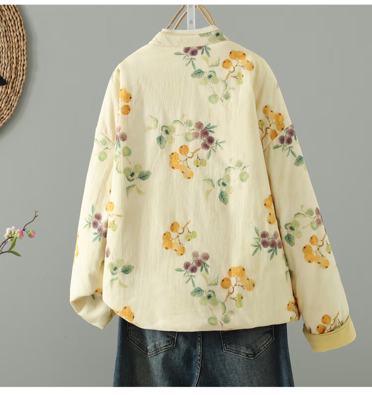 Woodpecker double-sided Chinese-style printed quilted jacket for women in winter, Western-style improved Tang suit, stand-up collar, lining, cotton padded jacket, yellow L 90-120Jin Jin equals 0.5 kg