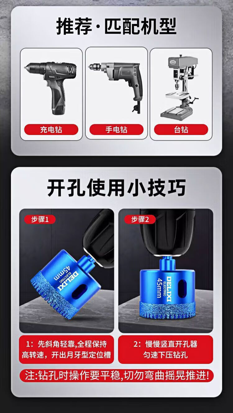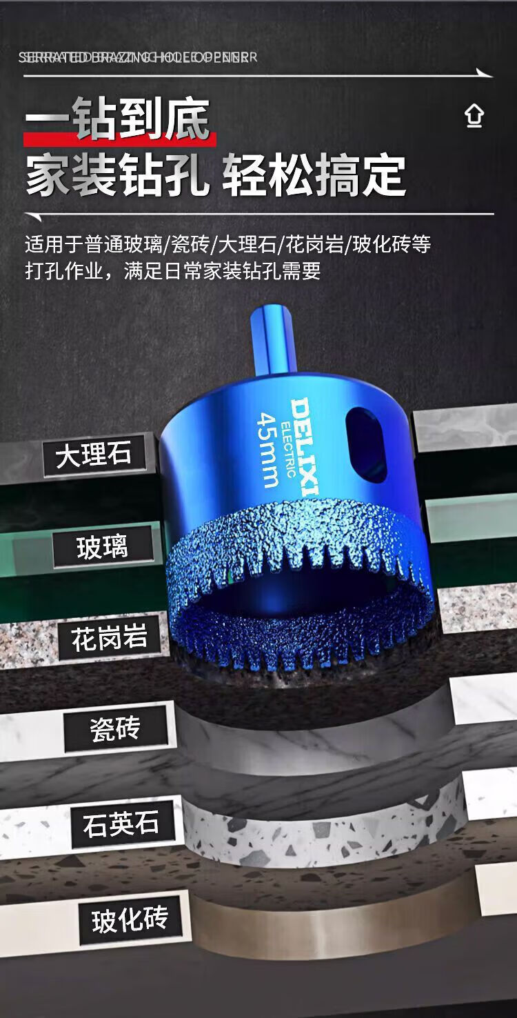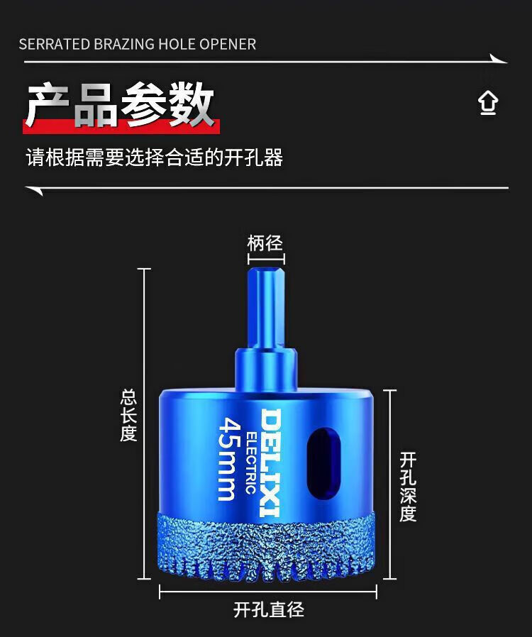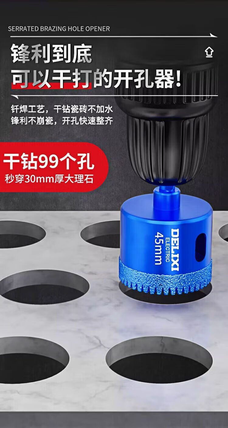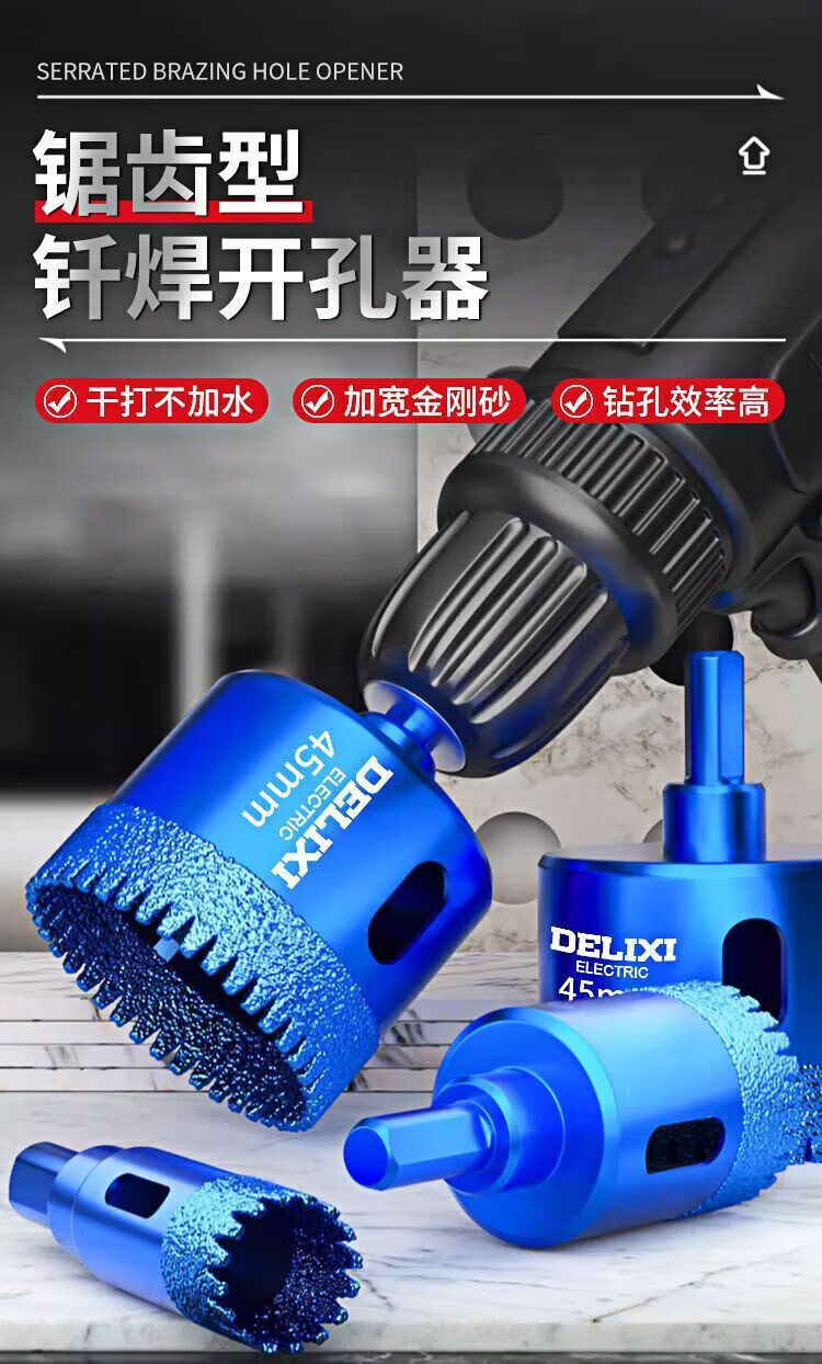 DELIXI ELECTRIC tile brazing hole opener tooth drill dry marble saw punch drill bit woodworking hand electric drill all-ceramic tool sharp thickened emery 60mm 2 pieces