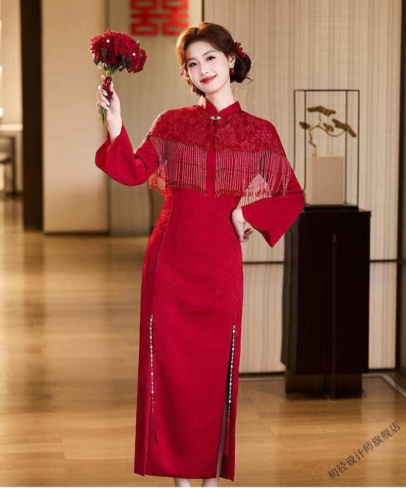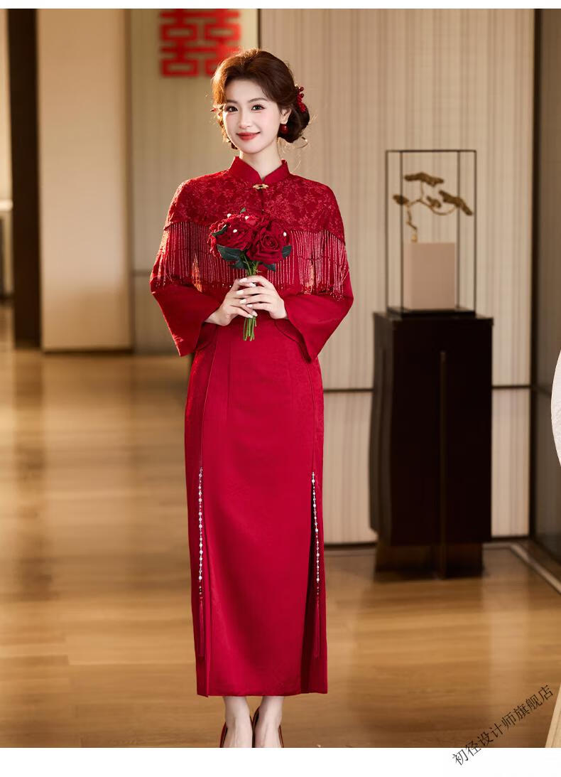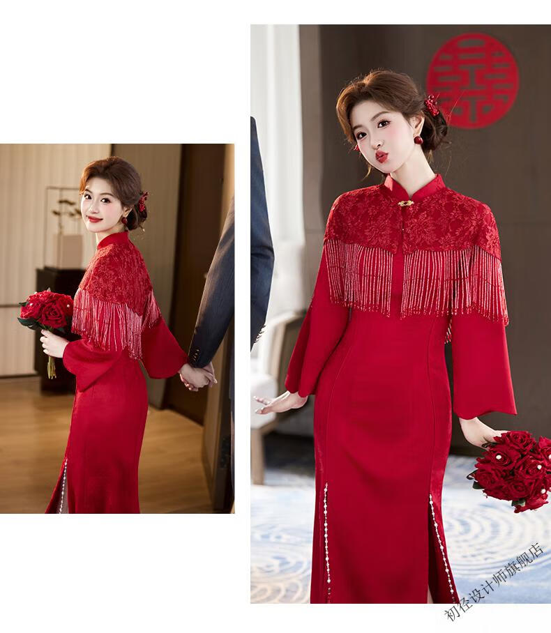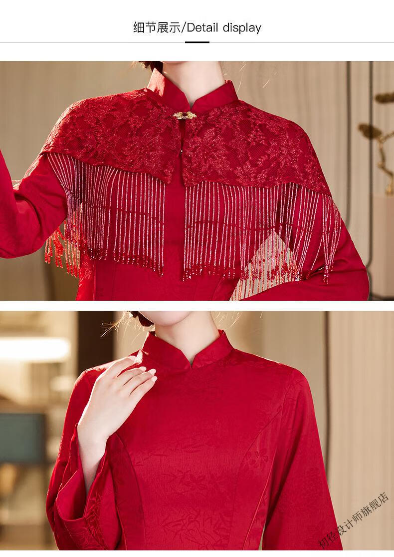 Chujing Toast Wear Bridal New Winter Red New Chinese Style Improved Cheongsam Engagement Dress Women's Morning Robe Long Sleeve Back Door Red 2XL