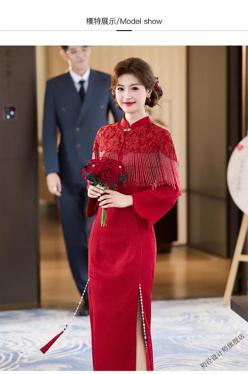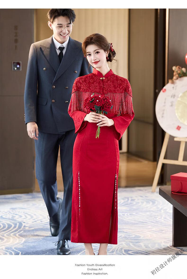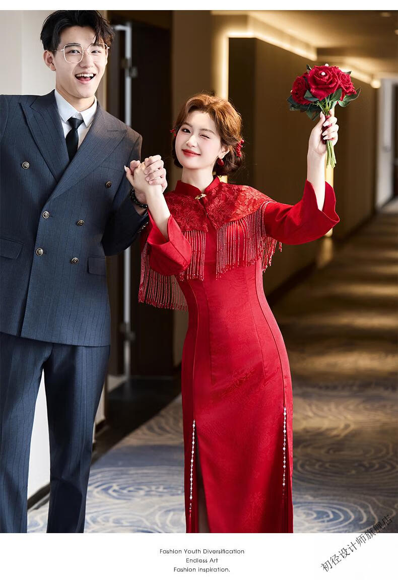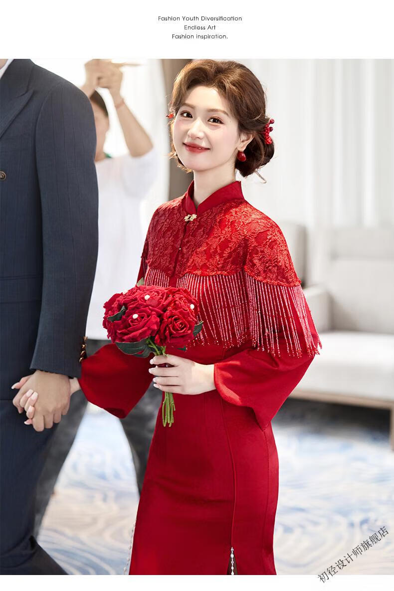 Chujing Toast Wear Bridal New Winter Red New Chinese Style Improved Cheongsam Engagement Dress Women's Morning Robe Long Sleeve Back Door Red 2XL