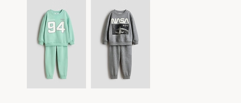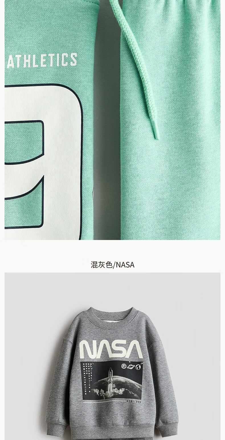 H&M 2026 spring new children's clothing children's boys' sweatshirt and jogging pants 2-piece suit 1296447 mixed gray/NASA 100 100/56 (2-3Y)